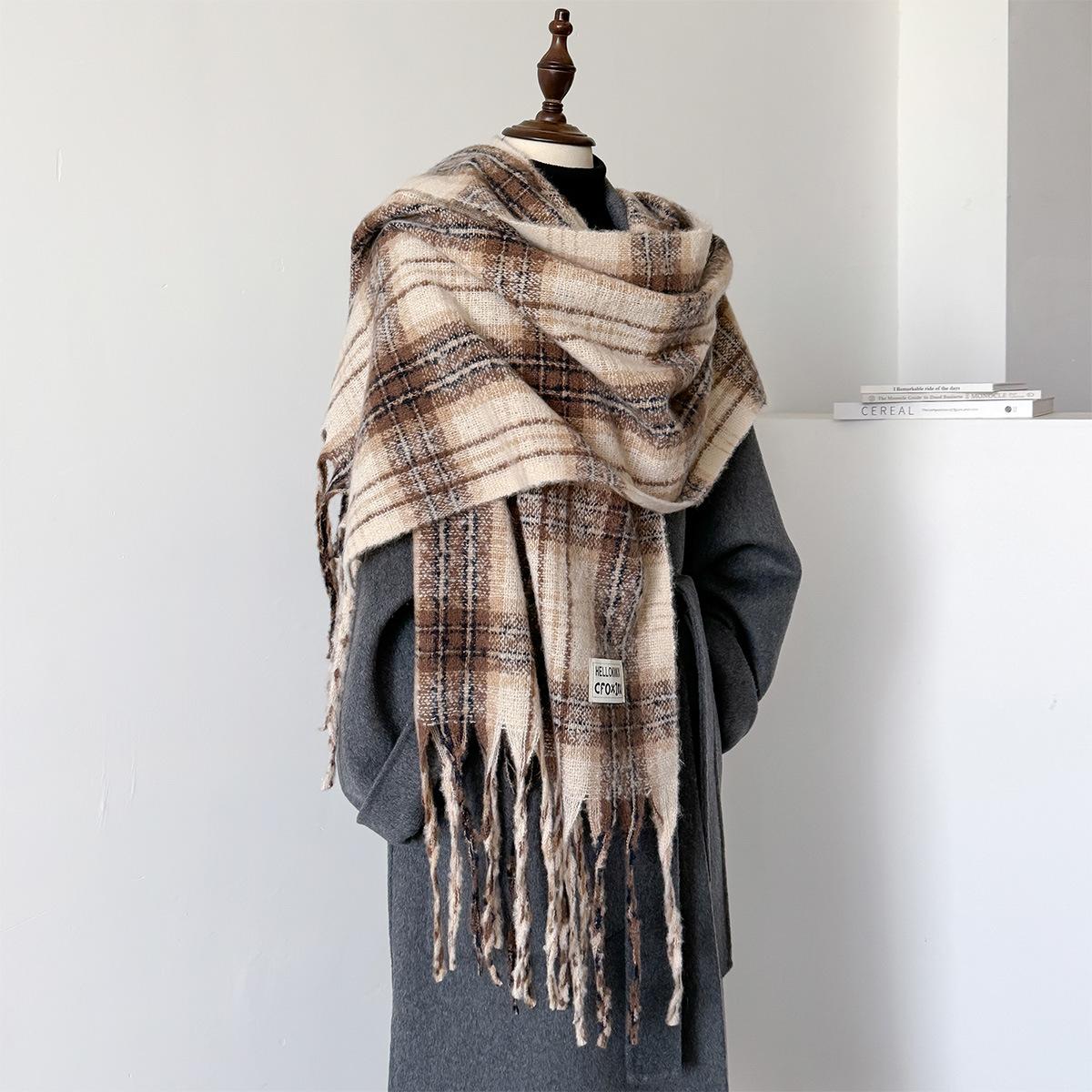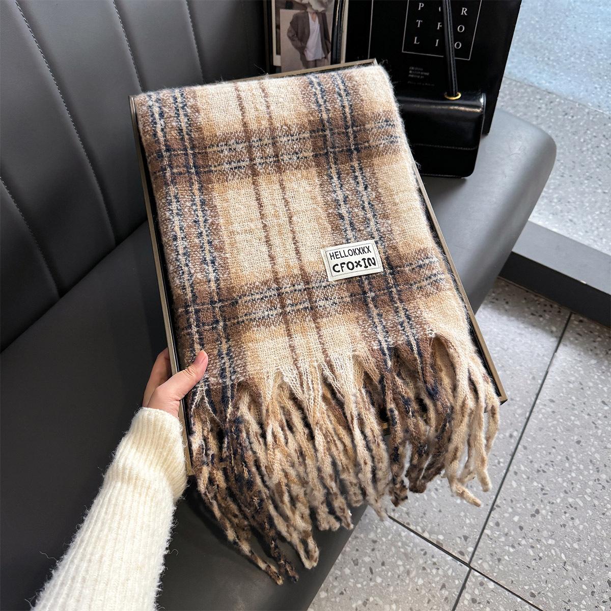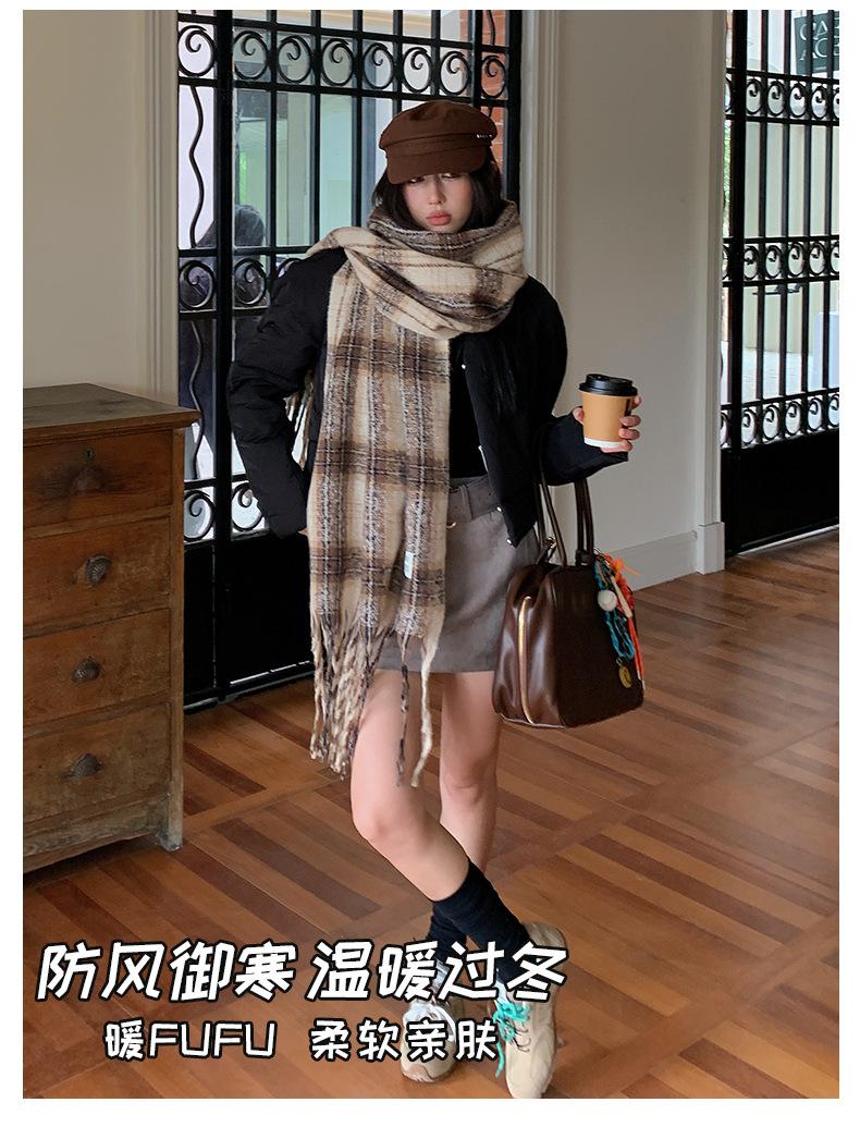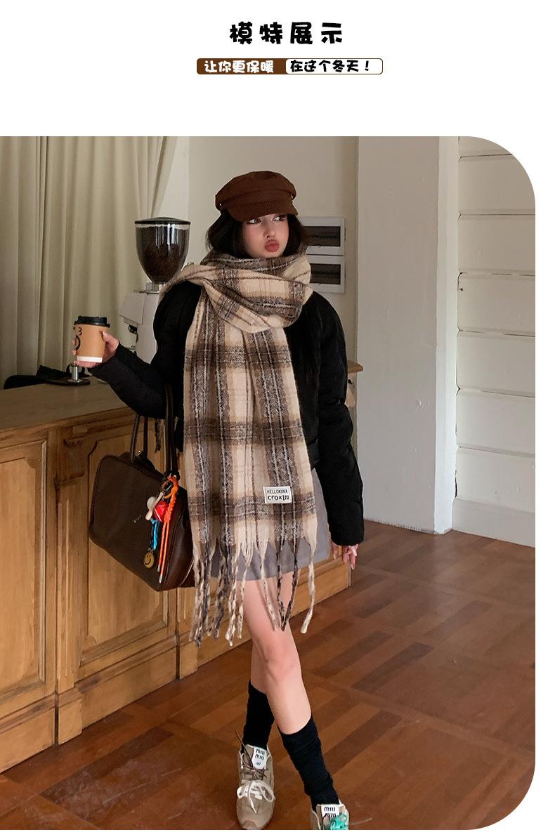 Estilo coreano elegante otoño e invierno nuevo grueso de doble cara de cachemira cuello cálido retro cuadros parejas largo estudiante de moda