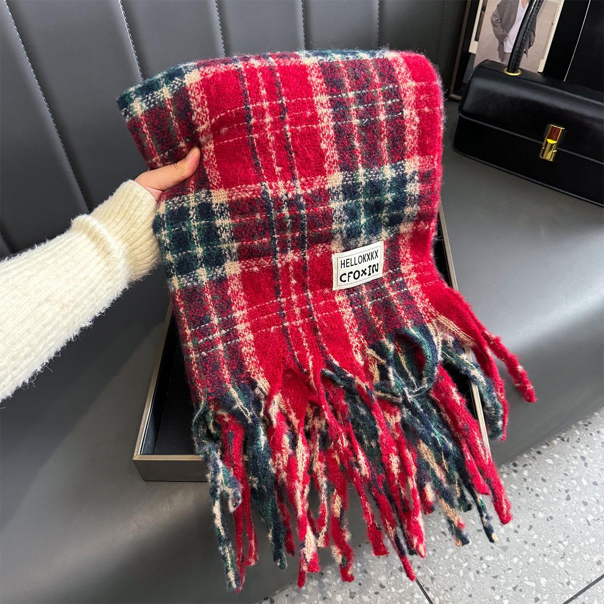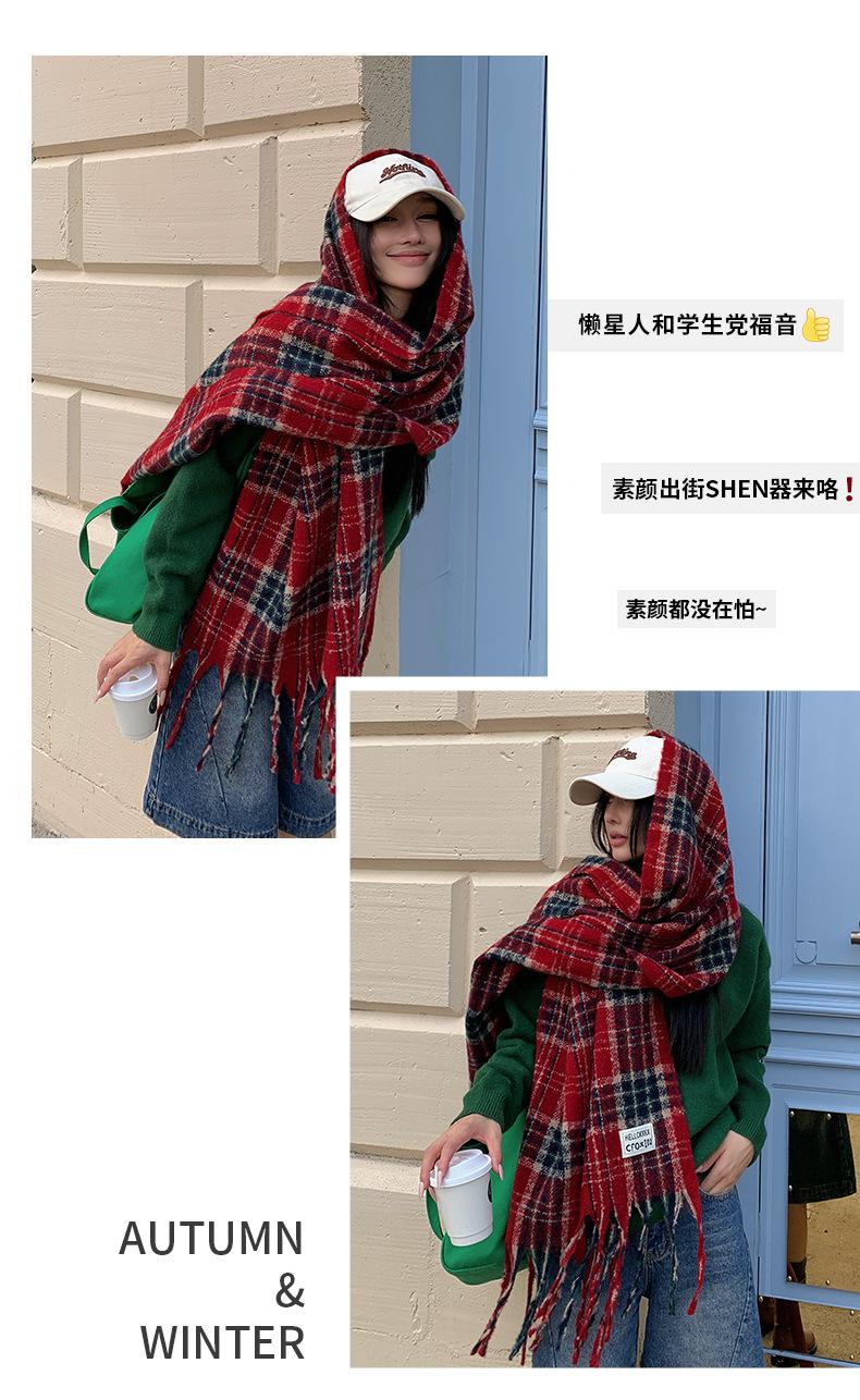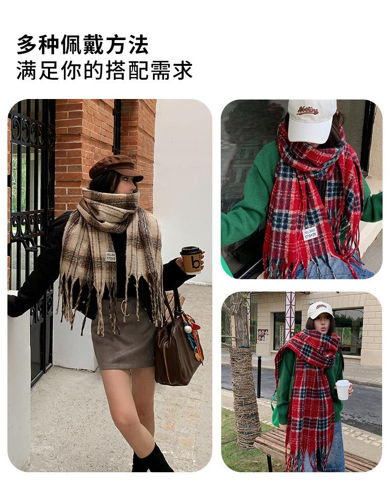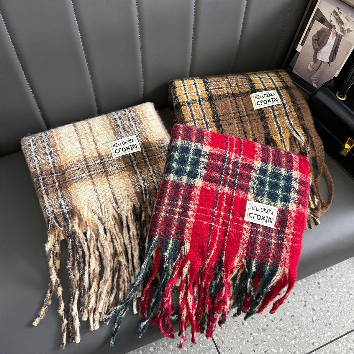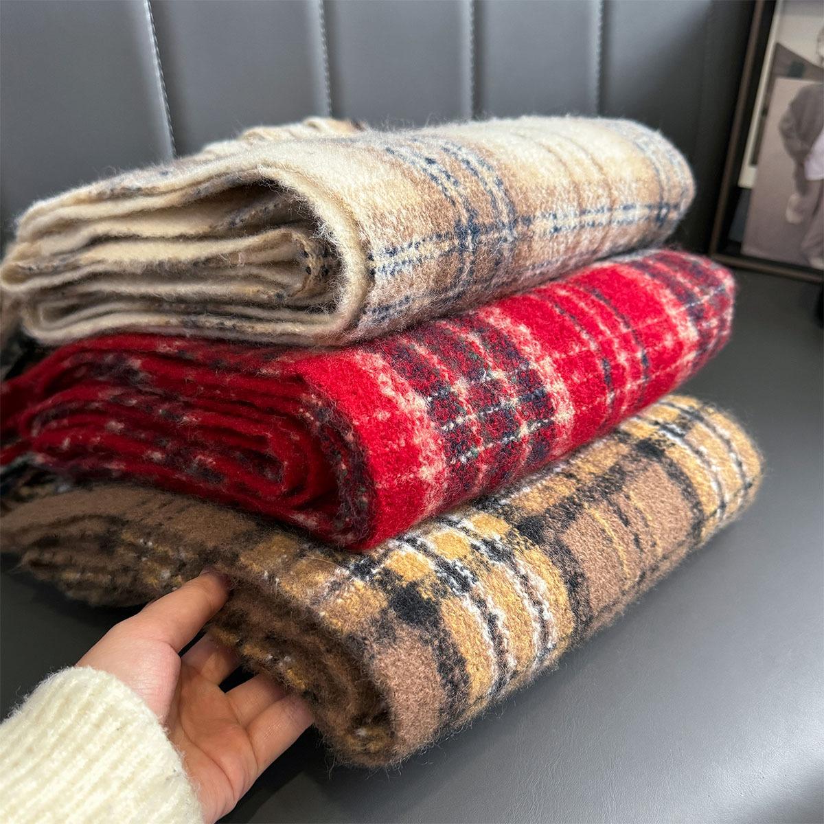 Estilo coreano elegante otoño e invierno nuevo grueso de doble cara de cachemira cuello cálido retro cuadros parejas largo estudiante de moda