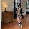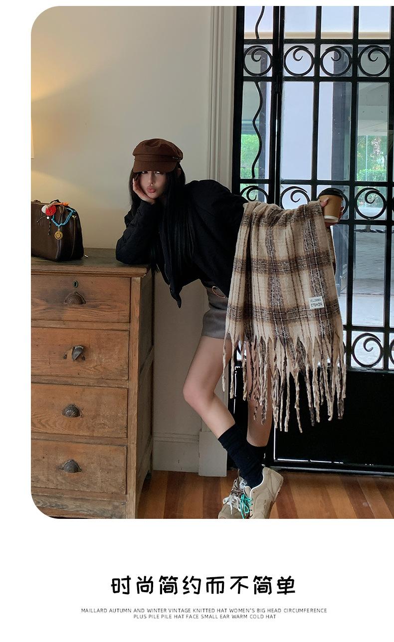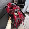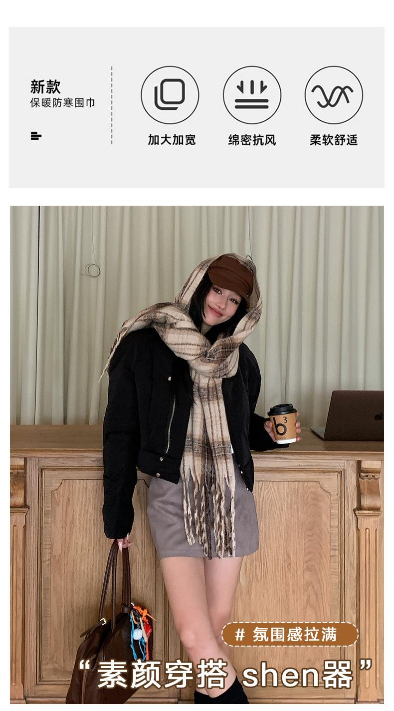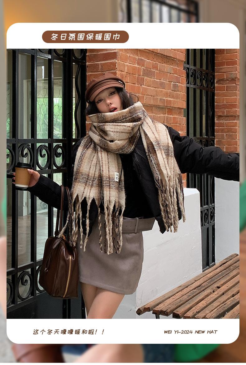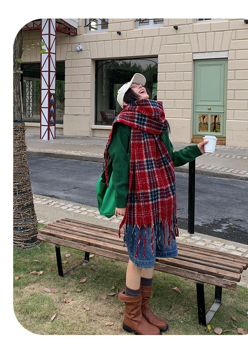 Estilo coreano elegante otoño e invierno nuevo grueso de doble cara de cachemira cuello cálido retro cuadros parejas largo estudiante de moda