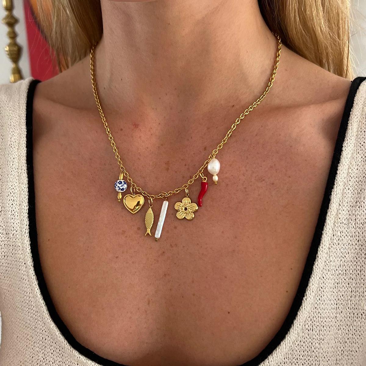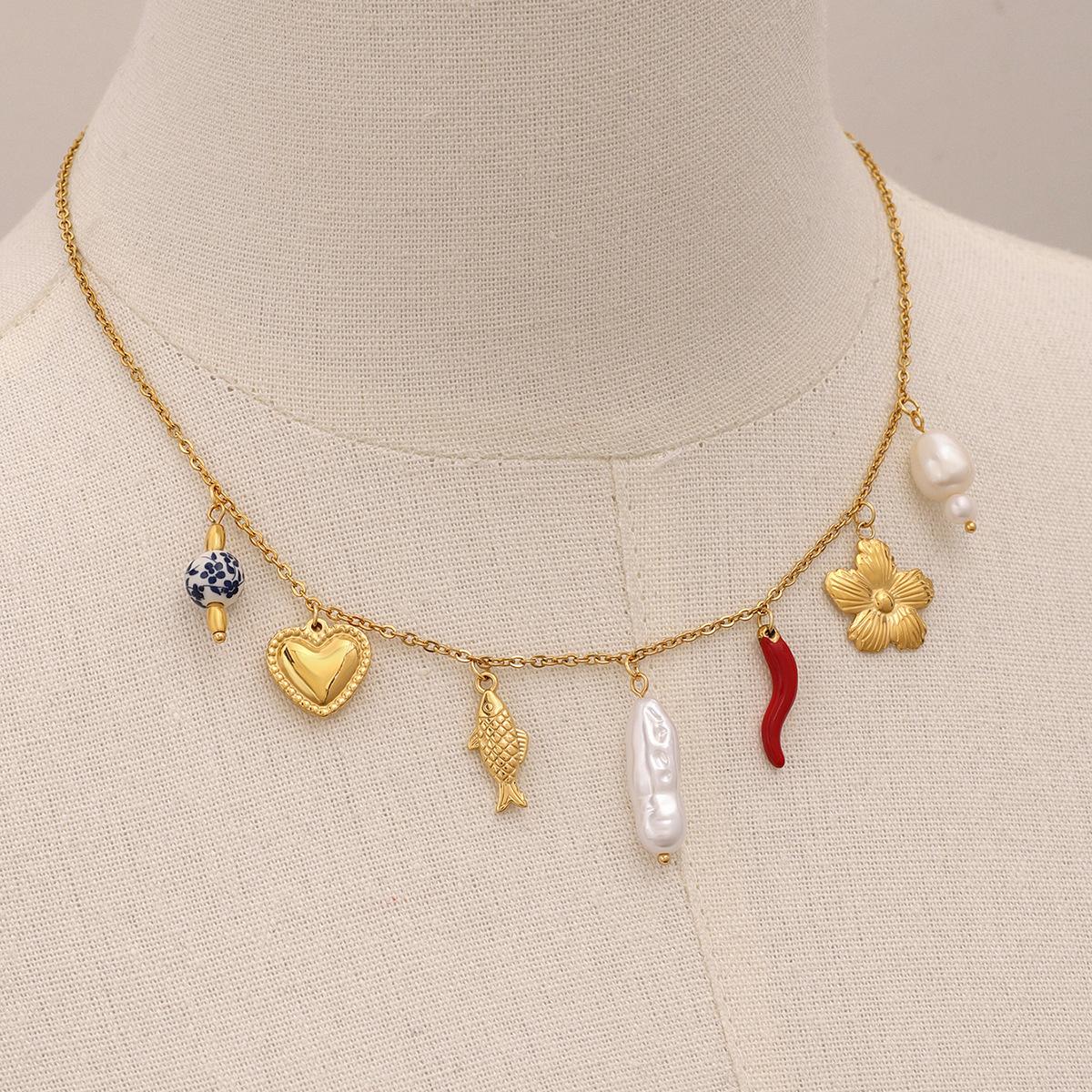 Collar con colgante de flor de amor con perla de acero inoxidable europeo y americano de Jieding, diseño creativo, collar de comercio exterior, Internet, accesorios rojos