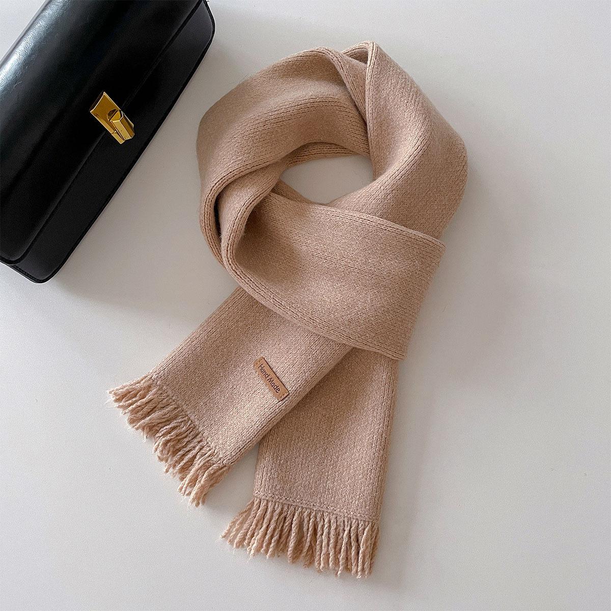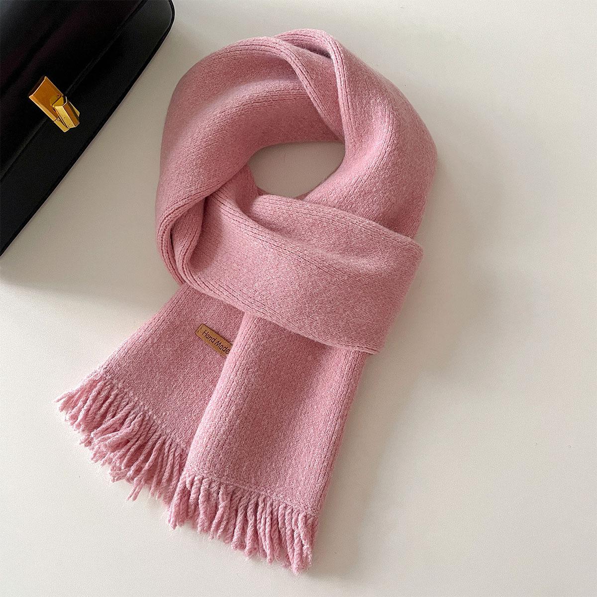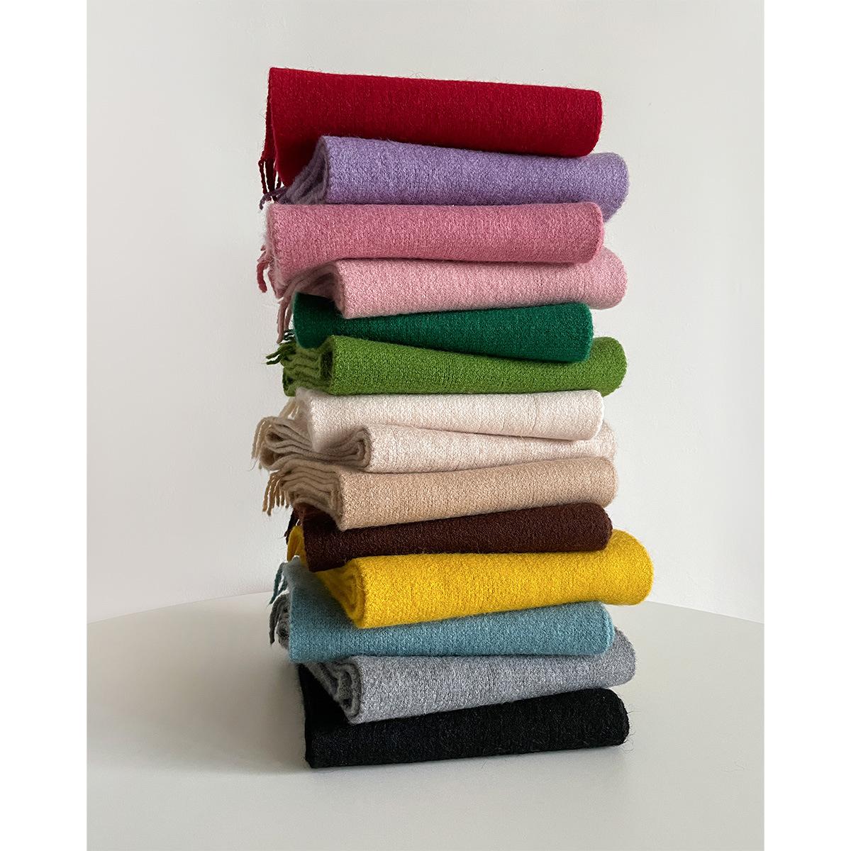 Bufanda de lana sencilla con borlas de color liso que combina con todo, estilo coreano, otoño e invierno, cálida y de doble uso para mujer.