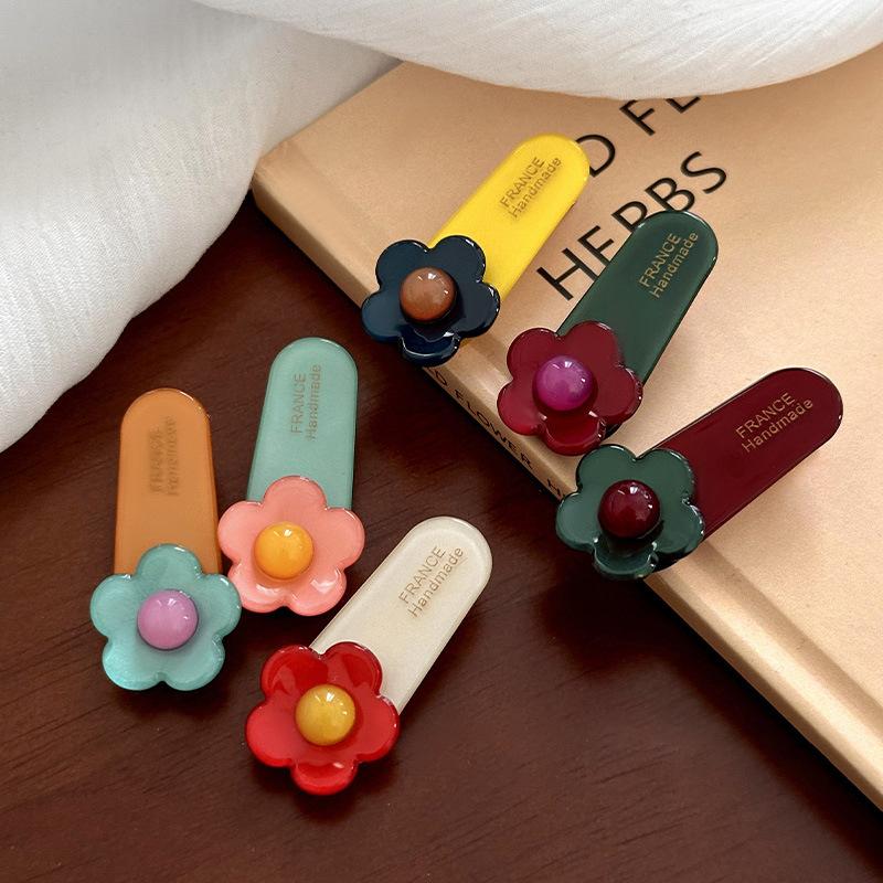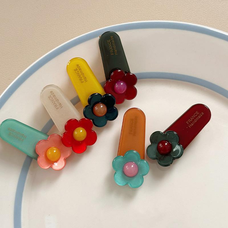 Horquilla con forma de flor de colores, con clip lateral, para el flequillo, con ácido acético, pequeña, para la cabeza, accesorios para el cabello para niños.