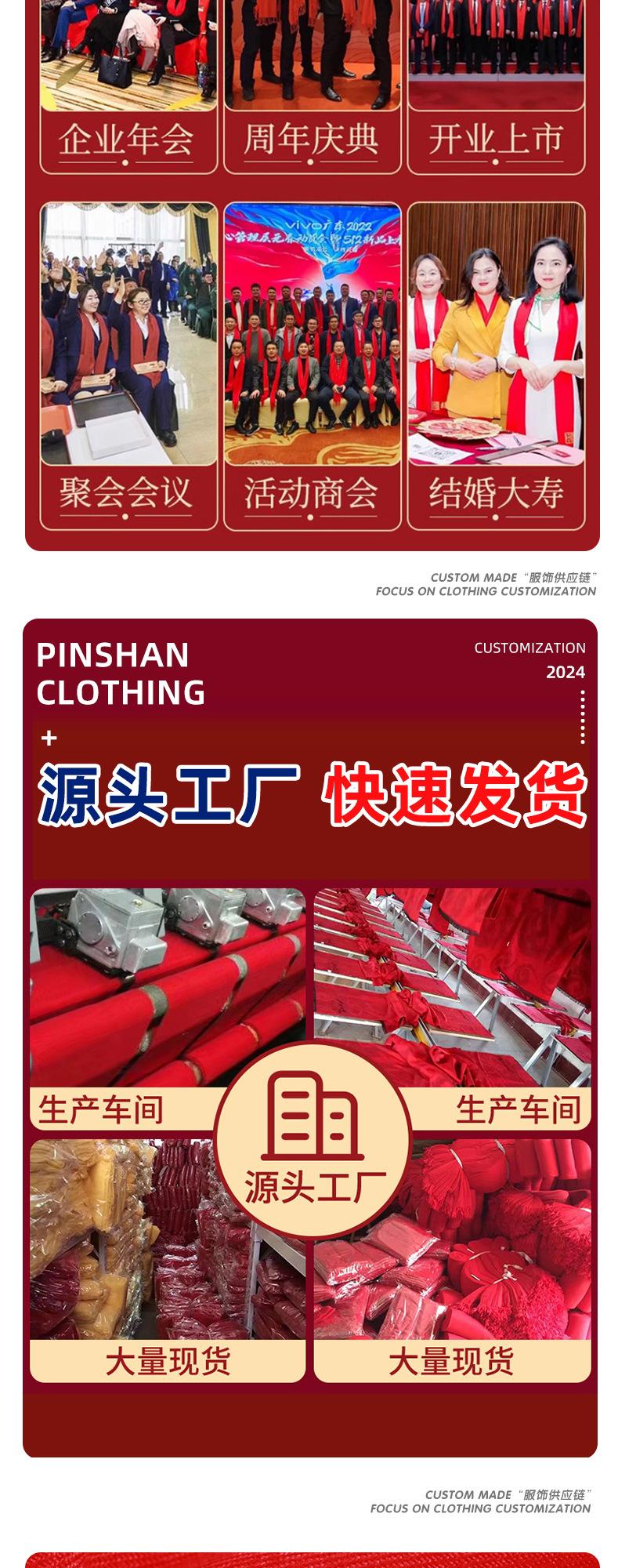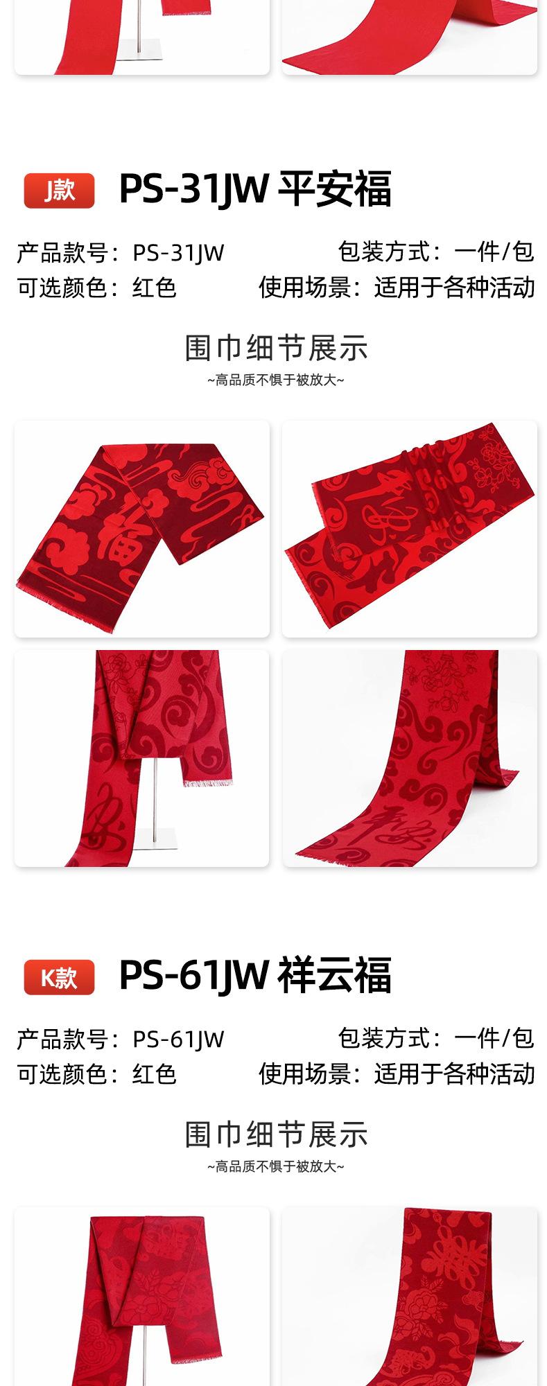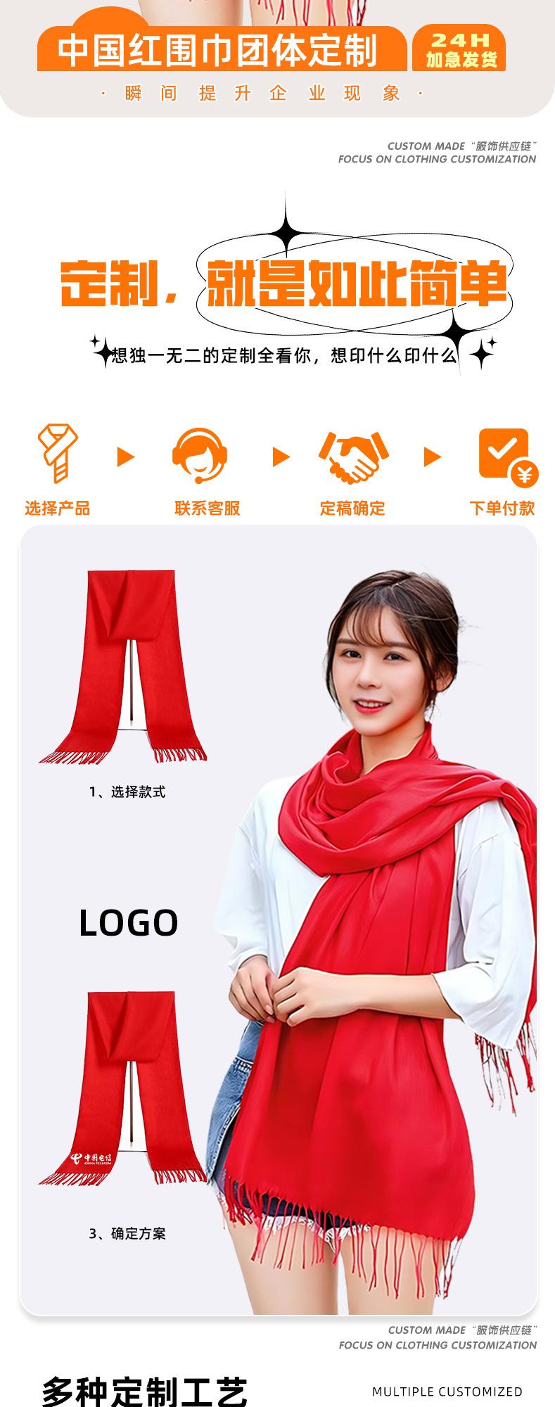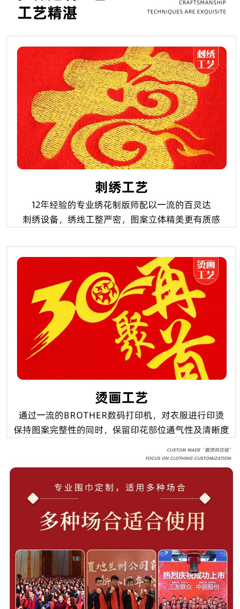 Bufanda roja con impresión de logotipo personalizado y bordado, con patrón rojo chino para fiestas, eventos y reuniones anuales de empresas.