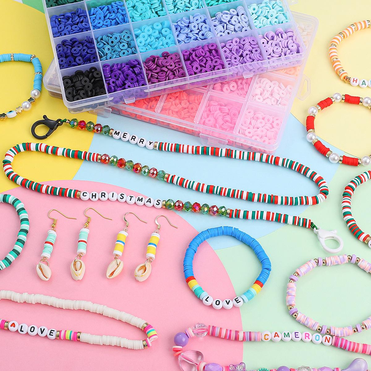 Juego de láminas de cerámica blanda de 24 cuadrículas transfronterizas, caja de cuentas de cerámica blanda de 6 mm, accesorios hechos a mano, bolsa de material casero para bricolaje, cuentas de mano, cuentas sueltas