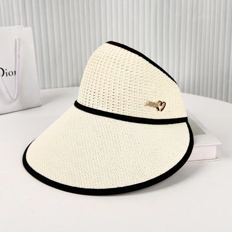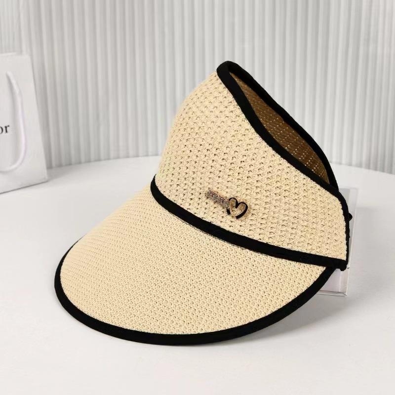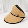 Sombrero de Verano Plegable Ala Grande Sombrero para el Sol Tejido Calado Transpirable Sombrero de Copa Vacía Sombrero para el Sol Sombrero de Visera para Mujer