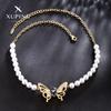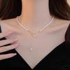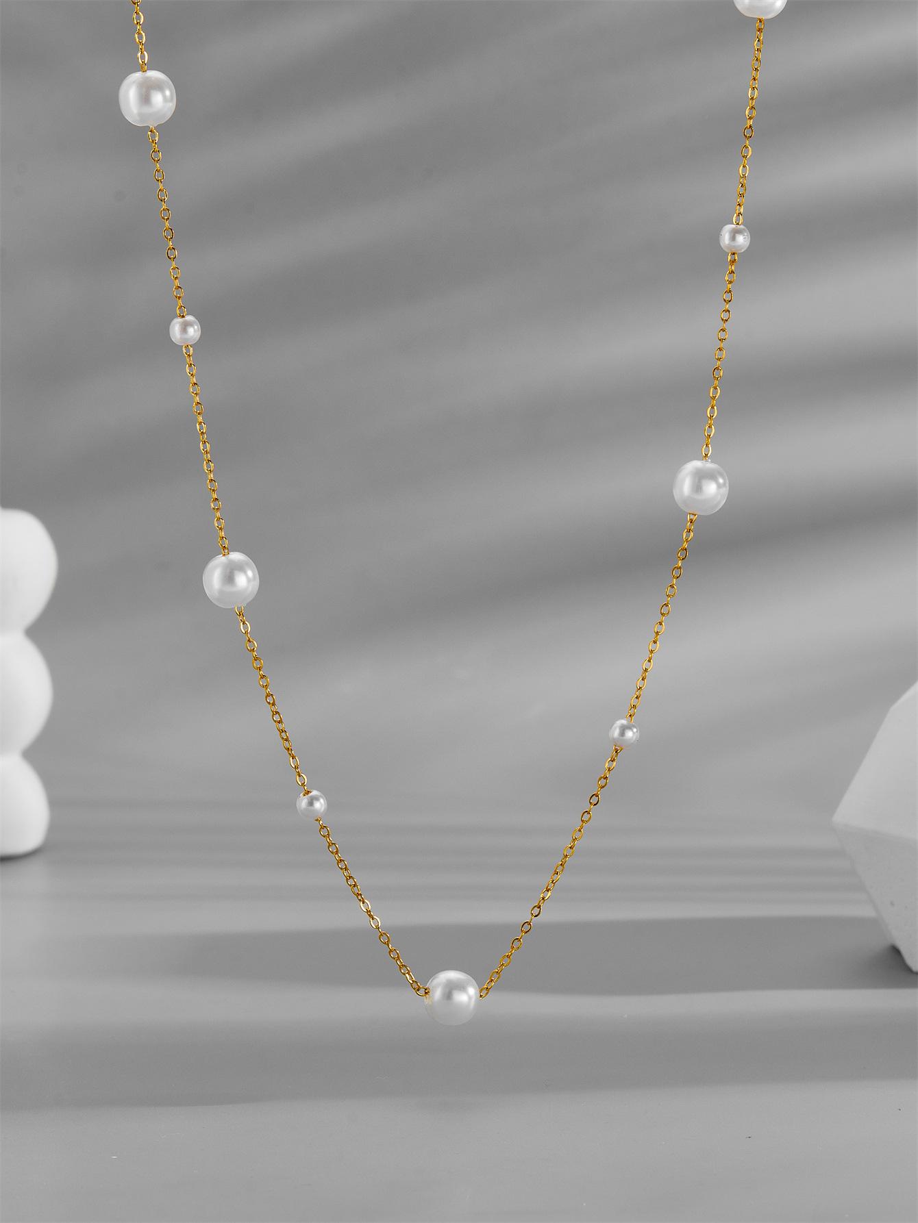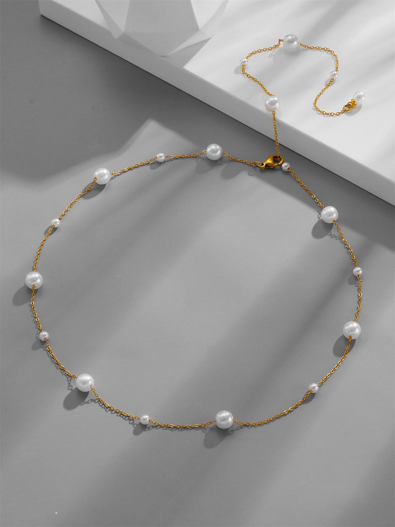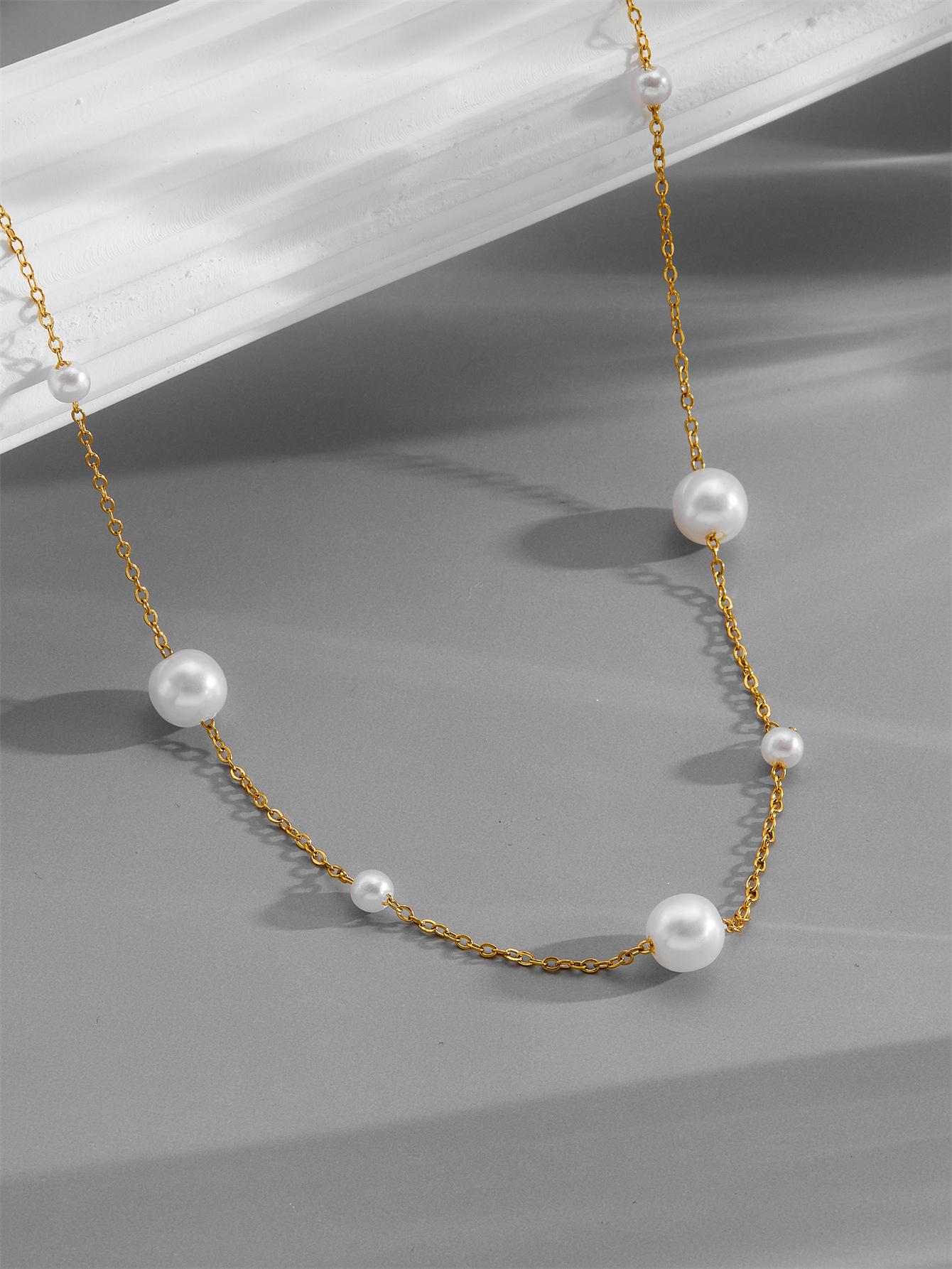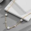 Collar de perlas transfronterizo de nuevo diseño para mujer, estilo europeo y americano, estilo retro, chapado en cobre, oro auténtico de 14 quilates, cadena de clavícula brillante.
