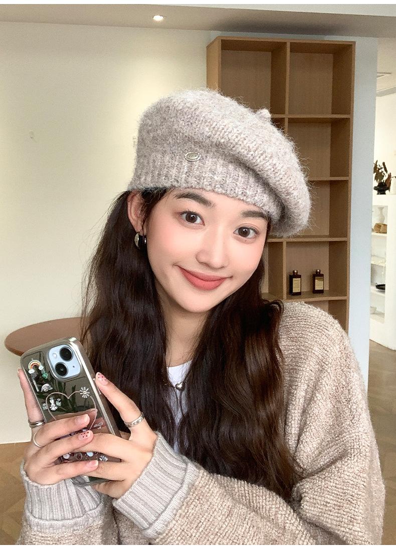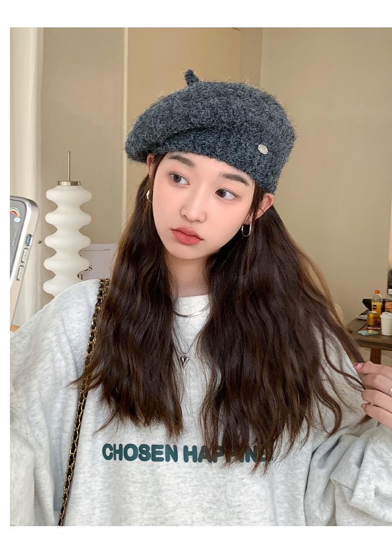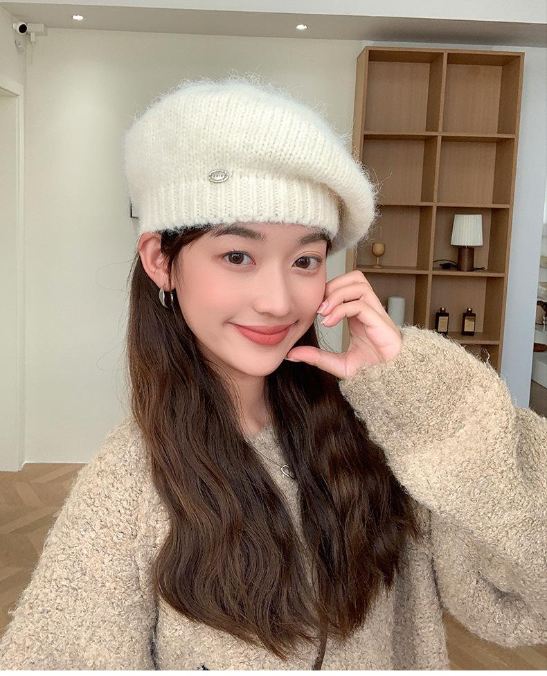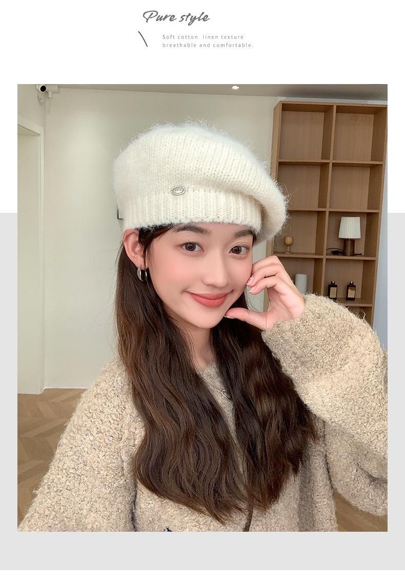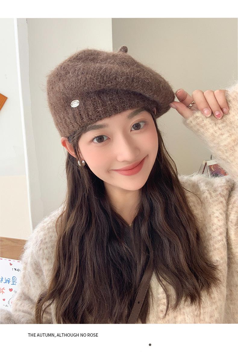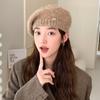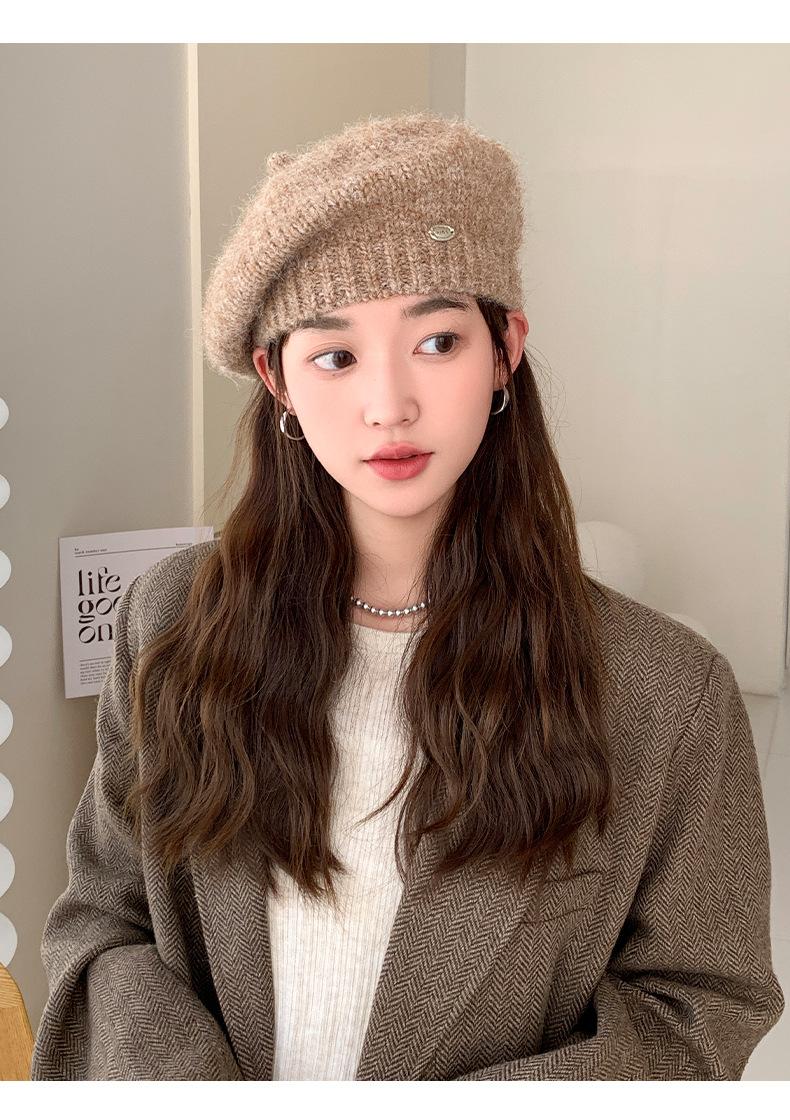 Sombrero Nuevo Coreano de Otoño e Invierno 2025 para Mujer, Sombrero de Lana Tejido Versátil de Color Puro, Boina de Invierno Cálida con Etiqueta Metálica