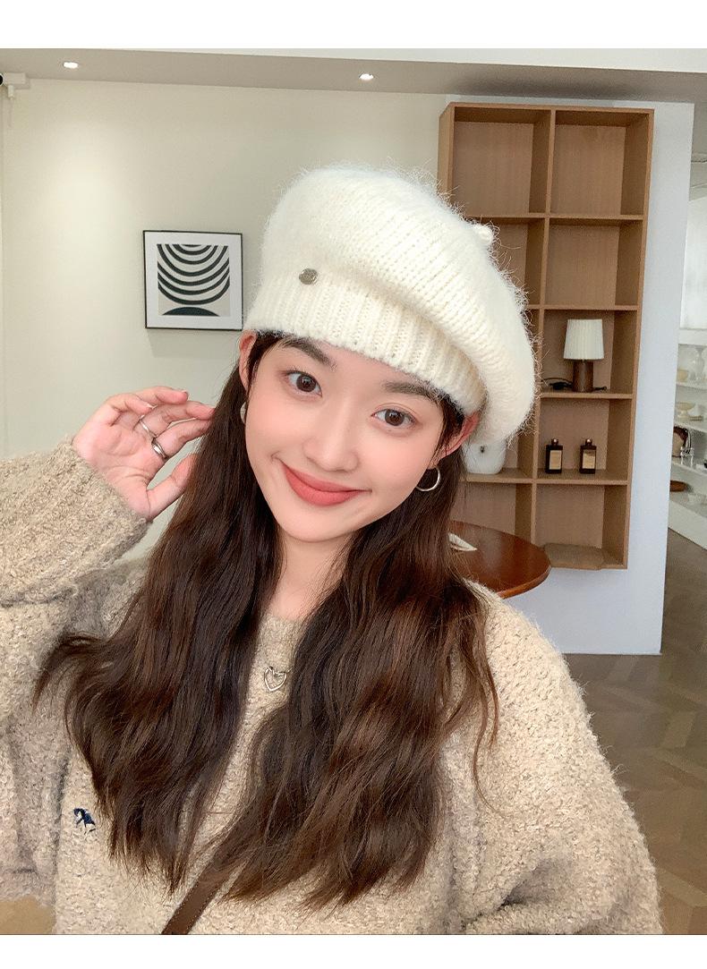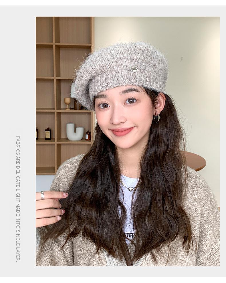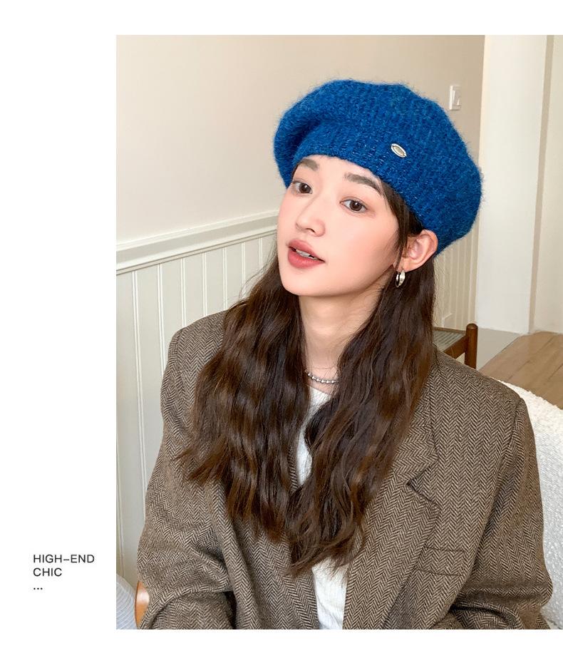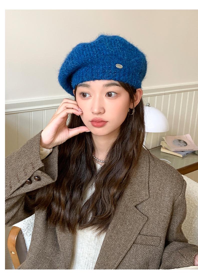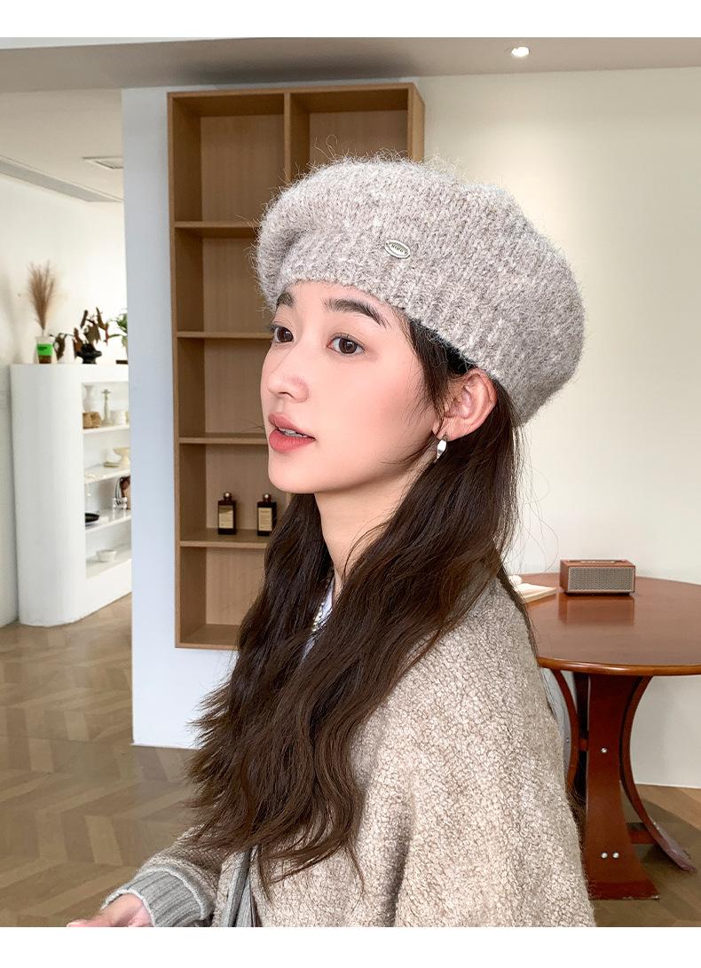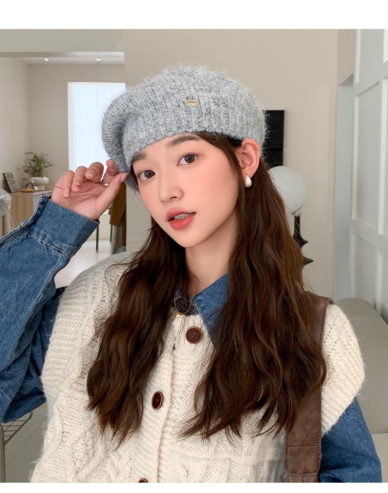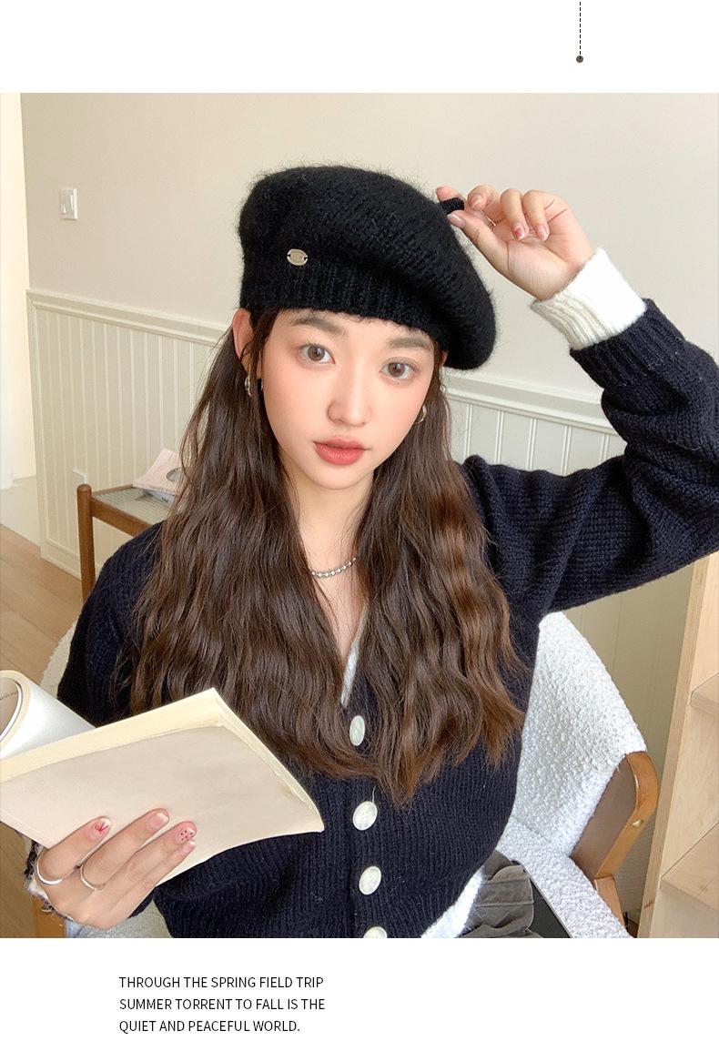 Sombrero Nuevo Coreano de Otoño e Invierno 2025 para Mujer, Sombrero de Lana Tejido Versátil de Color Puro, Boina de Invierno Cálida con Etiqueta Metálica
