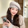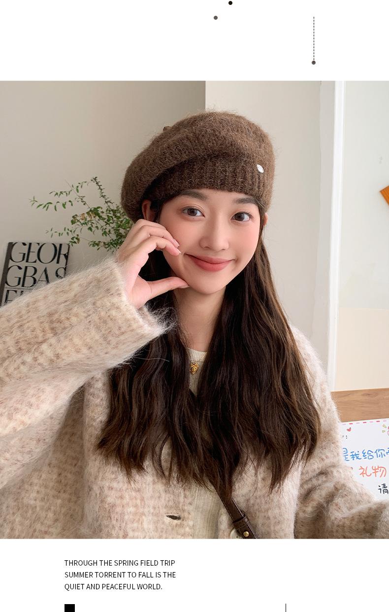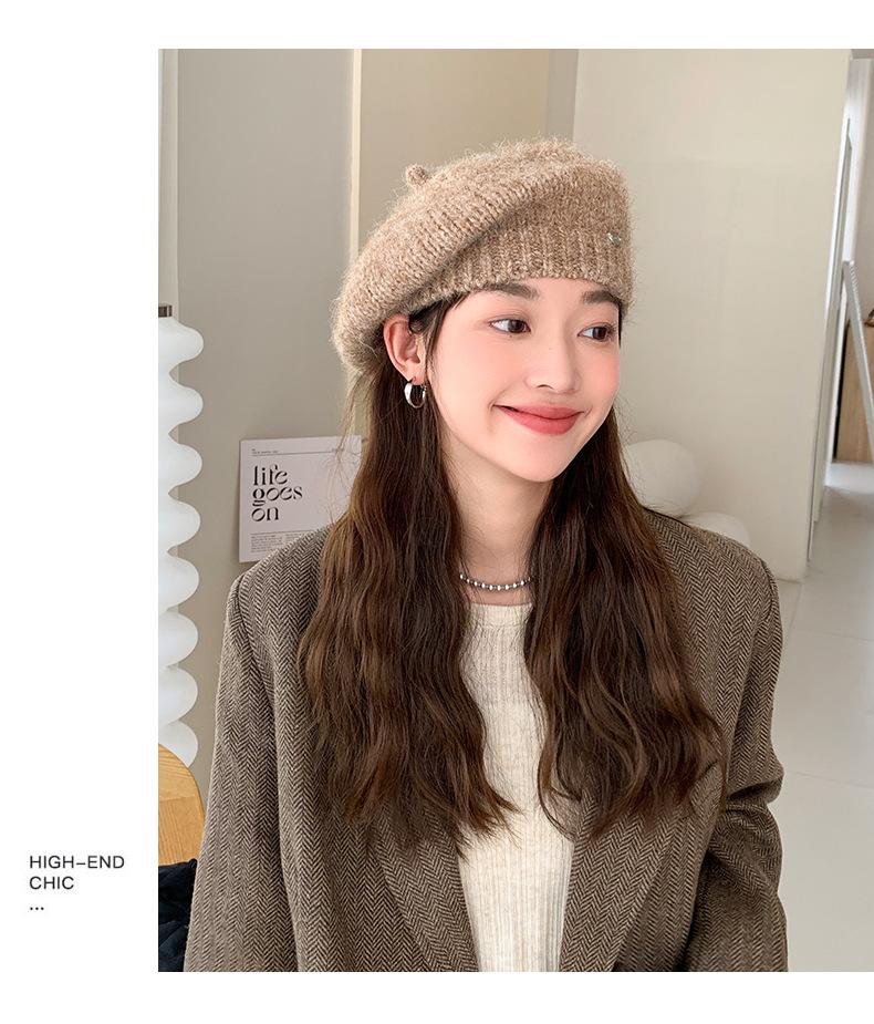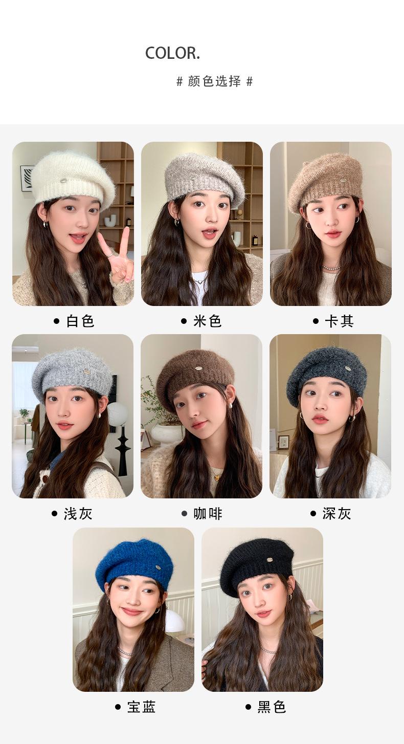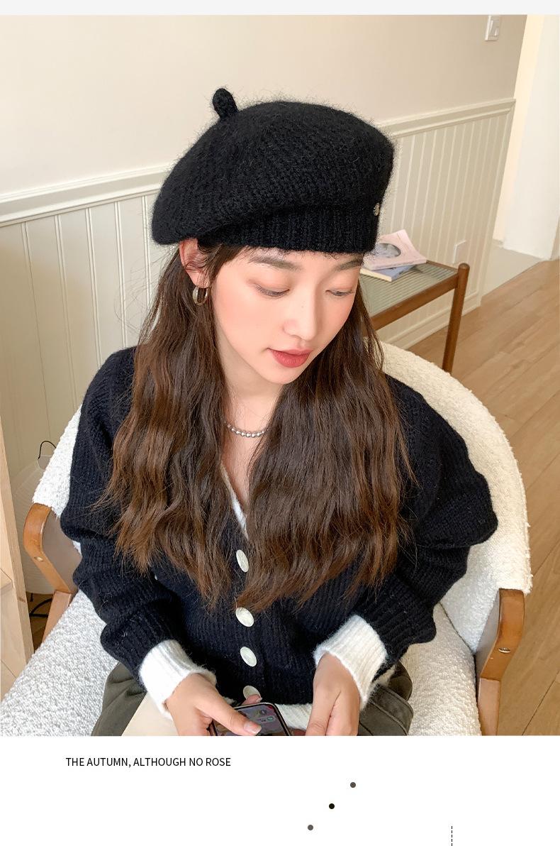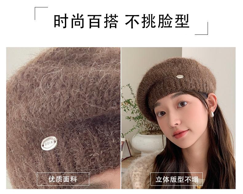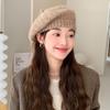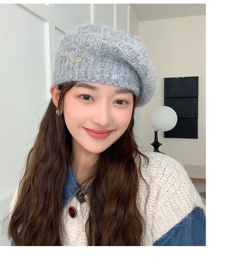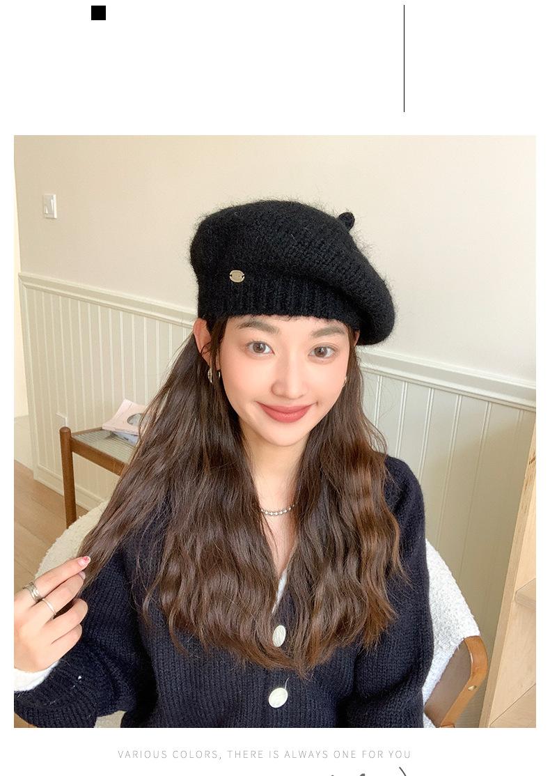 Sombrero Nuevo Coreano de Otoño e Invierno 2025 para Mujer, Sombrero de Lana Tejido Versátil de Color Puro, Boina de Invierno Cálida con Etiqueta Metálica