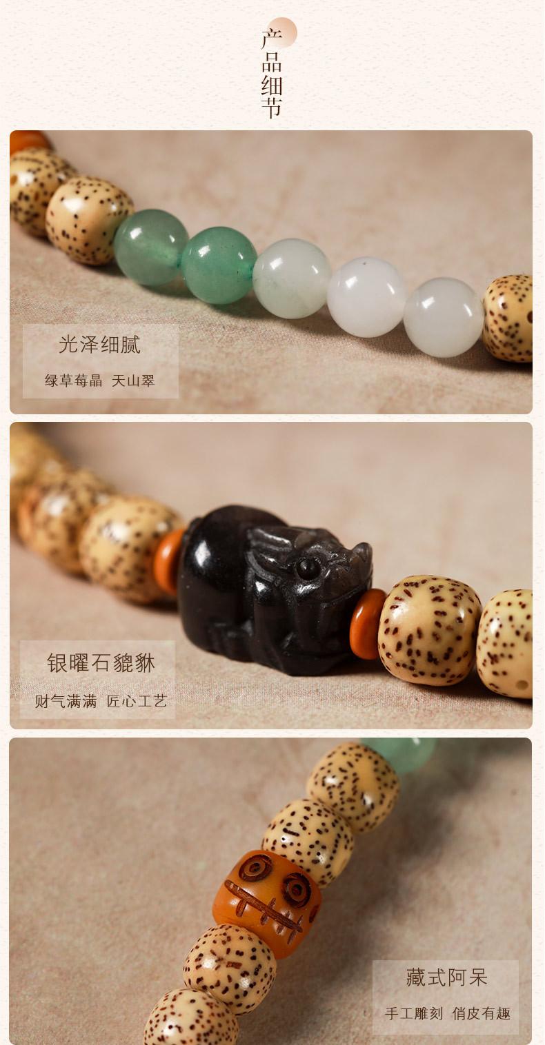 Selección de Xizang Semilla Amarilla Estrella Luna Bodhi Pulsera DIY de Doble Círculo Placa de Juego Pixiu de Obsidiana Plateada para Mano de Hombre y Mujer