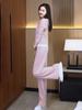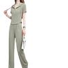 Traje Deportivo Casual para Mujer, Delgado de Verano, Nuevo Estilo 2024, Moderno y Ajustado, Conjunto de Dos Piezas de Pantalones de Pierna Ancha de Seda Helada