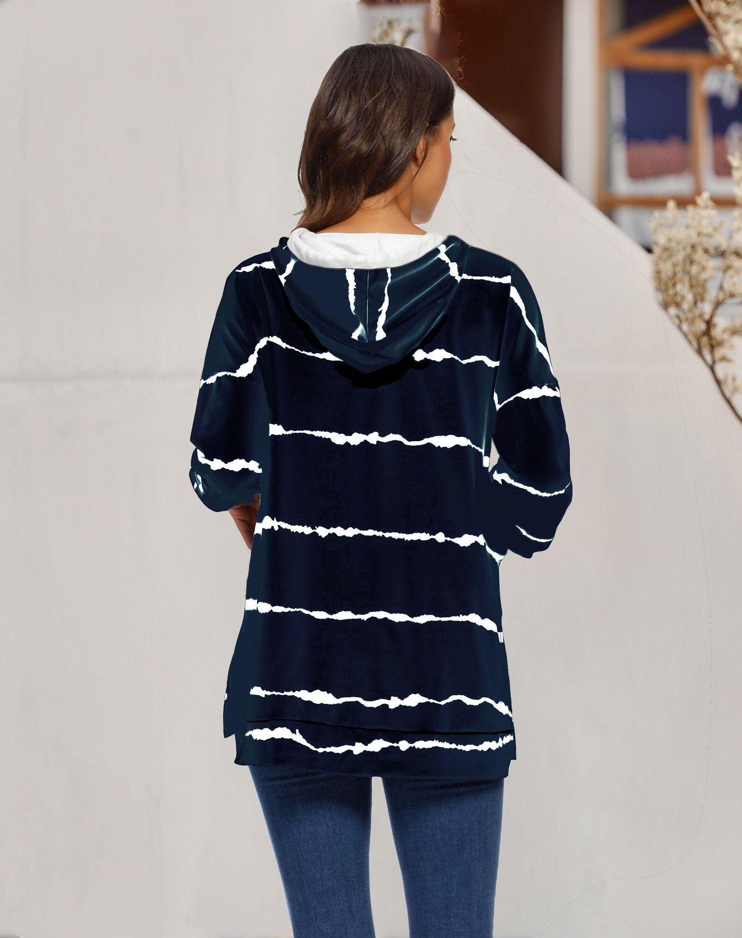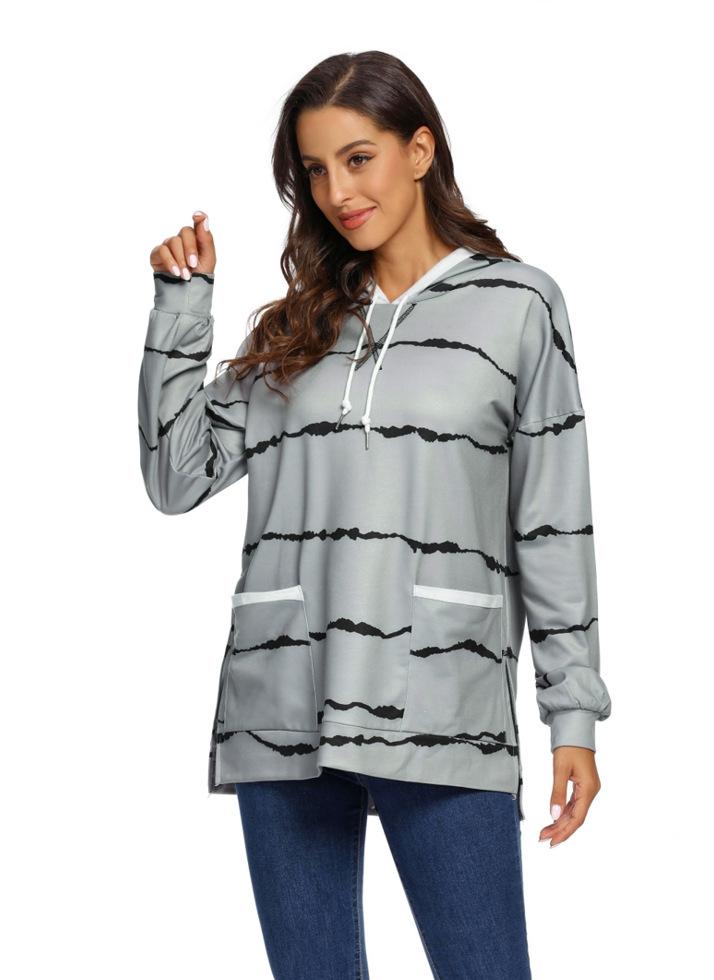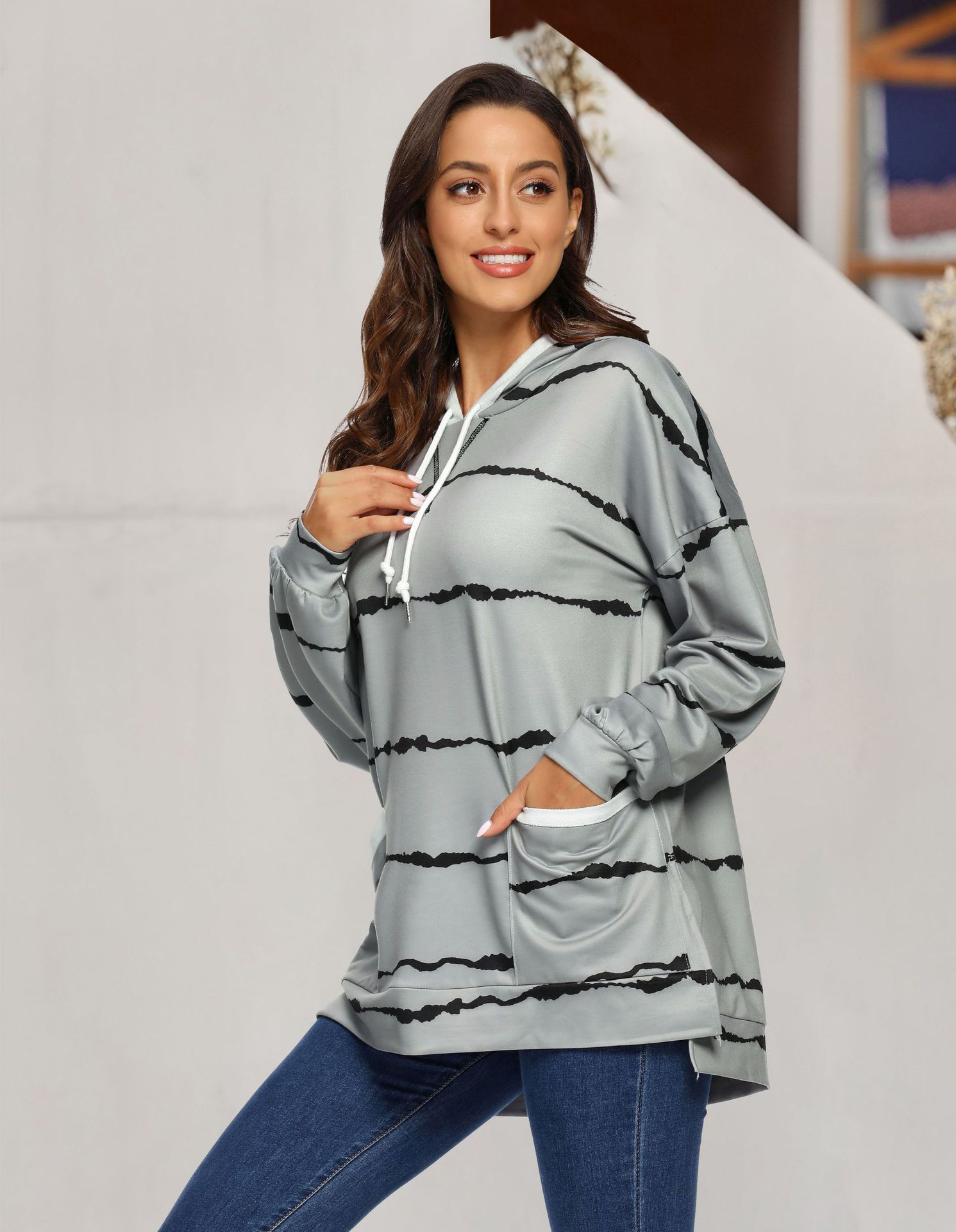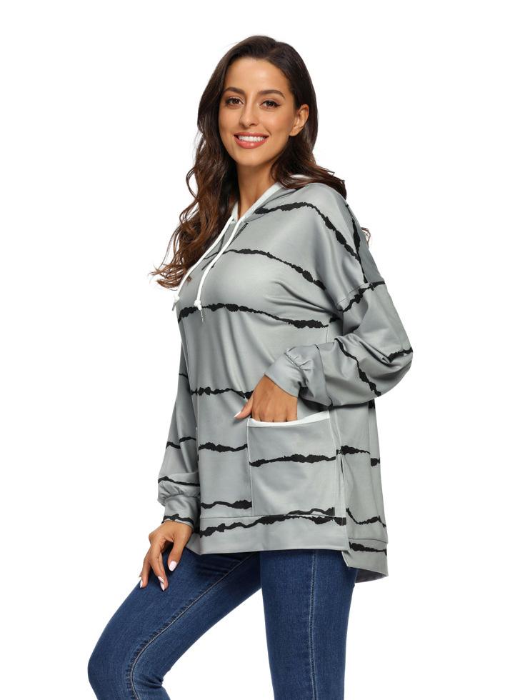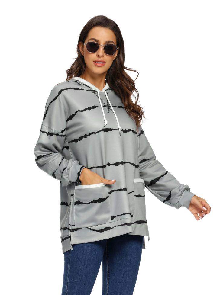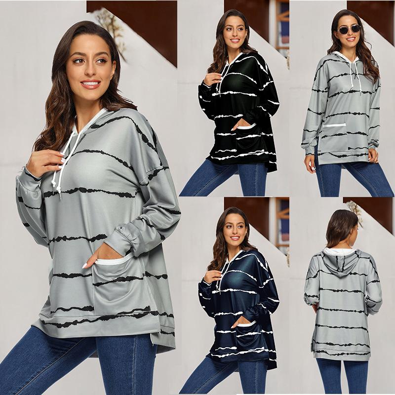 2021 Europa y Estados Unidos comercio exterior transfronterizo ropa de mujer Amazon teñido anudado estampado a rayas sudadera holgada de manga larga con capucha