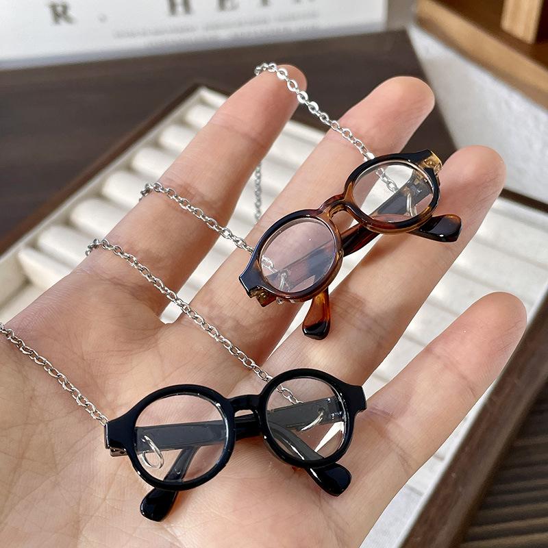 Collar con diseño artístico de nicho con forma de gafas, divertido, cadena de clavícula de alta gama, cadena larga para suéter, accesorios para suéter