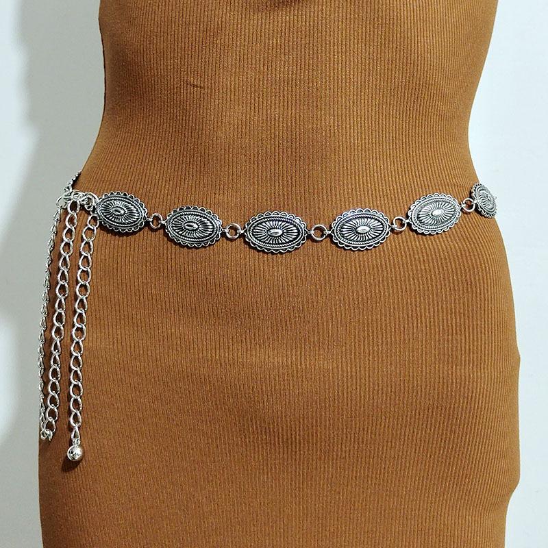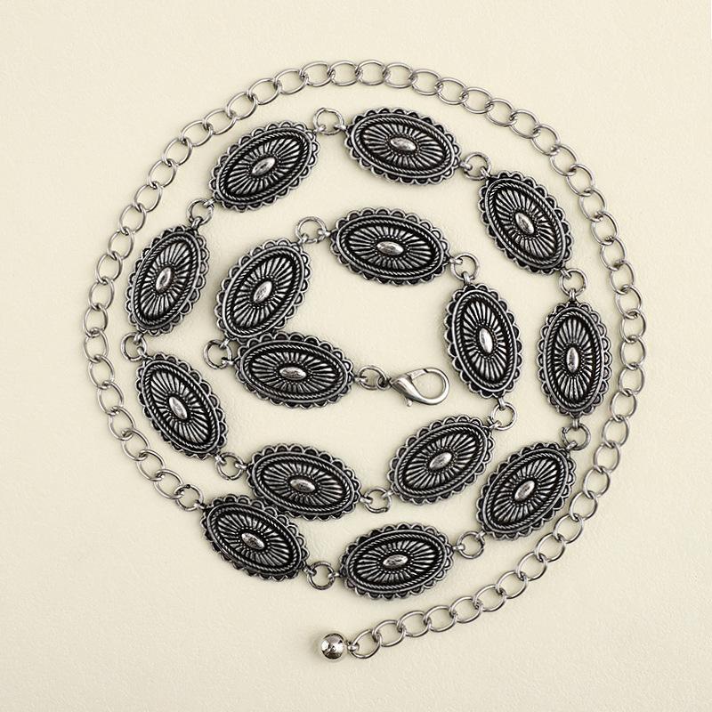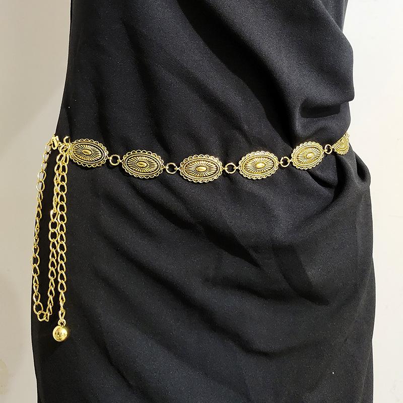 Cadena de cintura de metal de moda para mujer, cinturón decorativo para traje, con temperamento, combina con todo, estilo artístico retro, con sello de cintura.