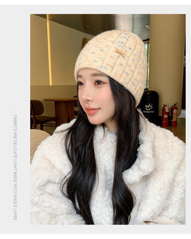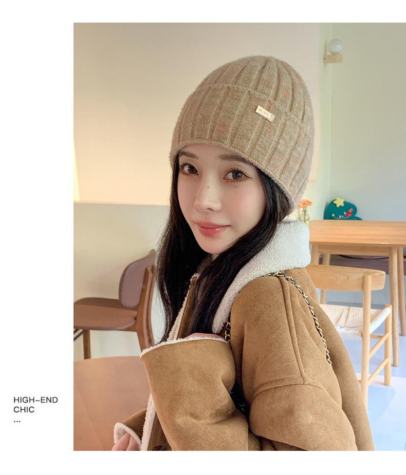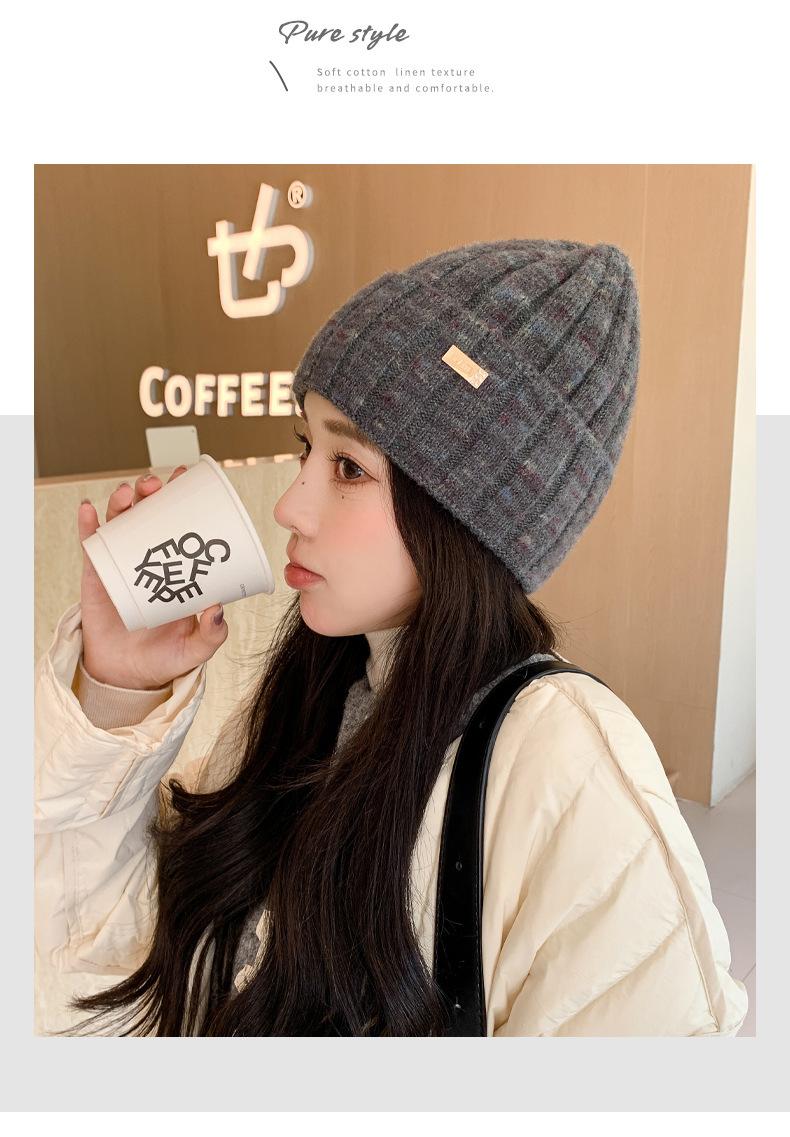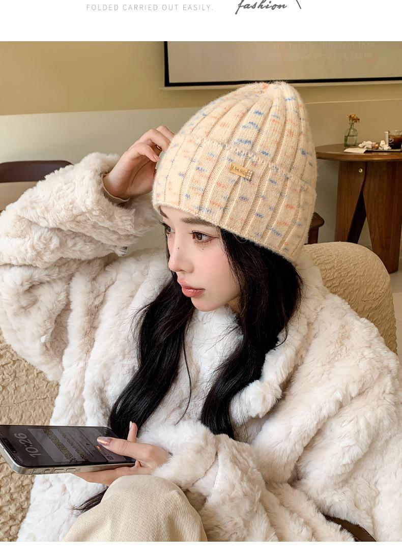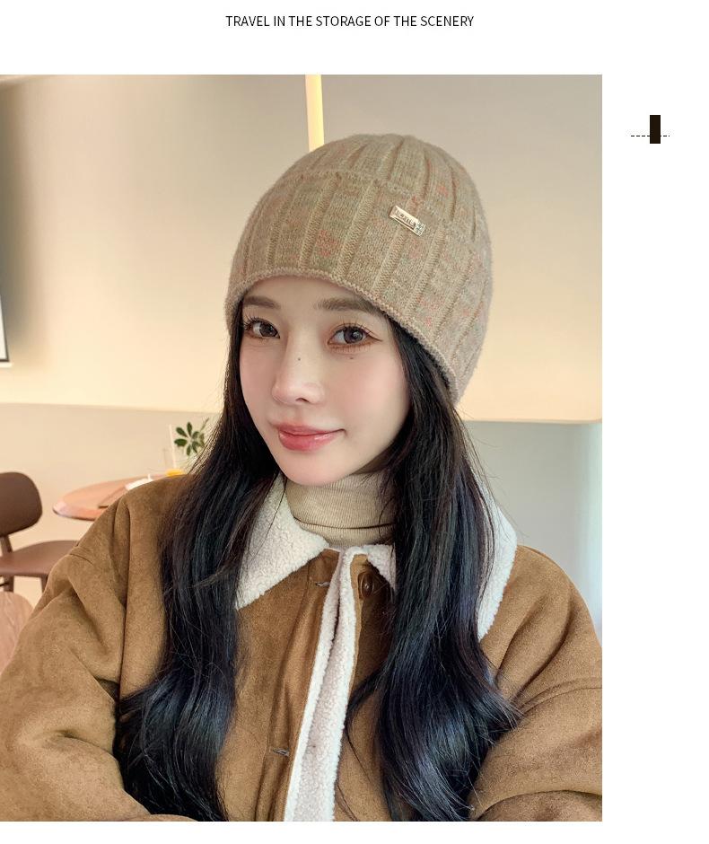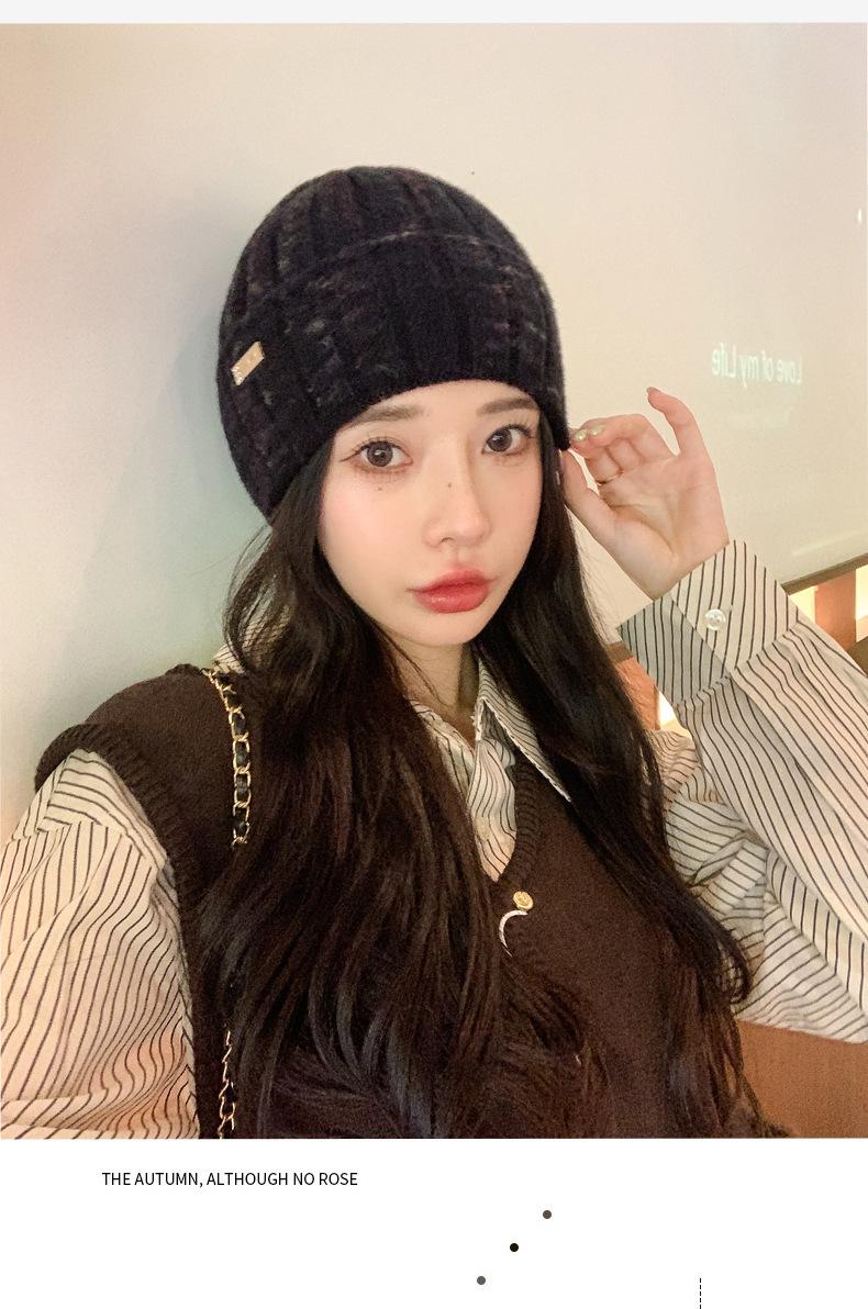 2024 versión coreana de otoño e invierno nuevo sombrero moda para mujer color sombrero de lana de punto invierno cálido estudiante gorro pulóver marea
