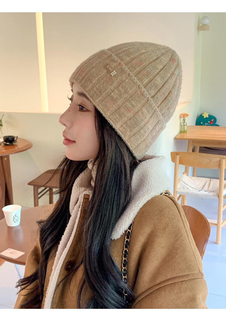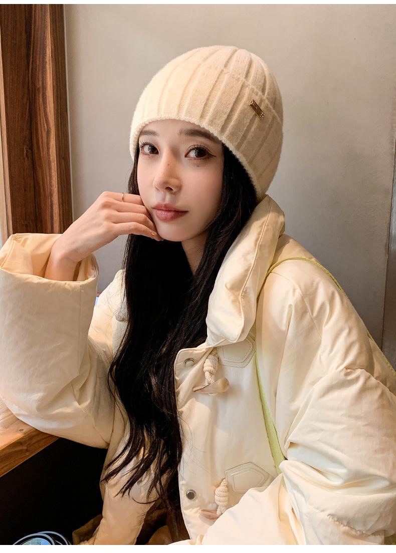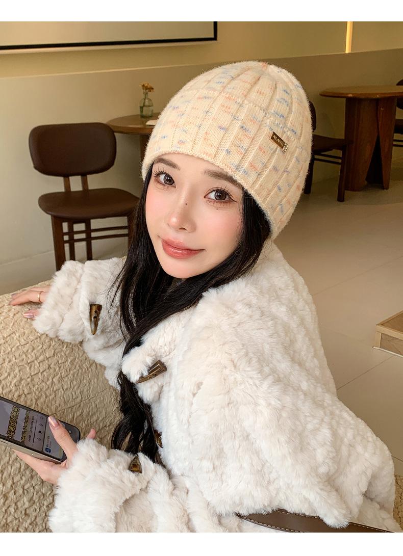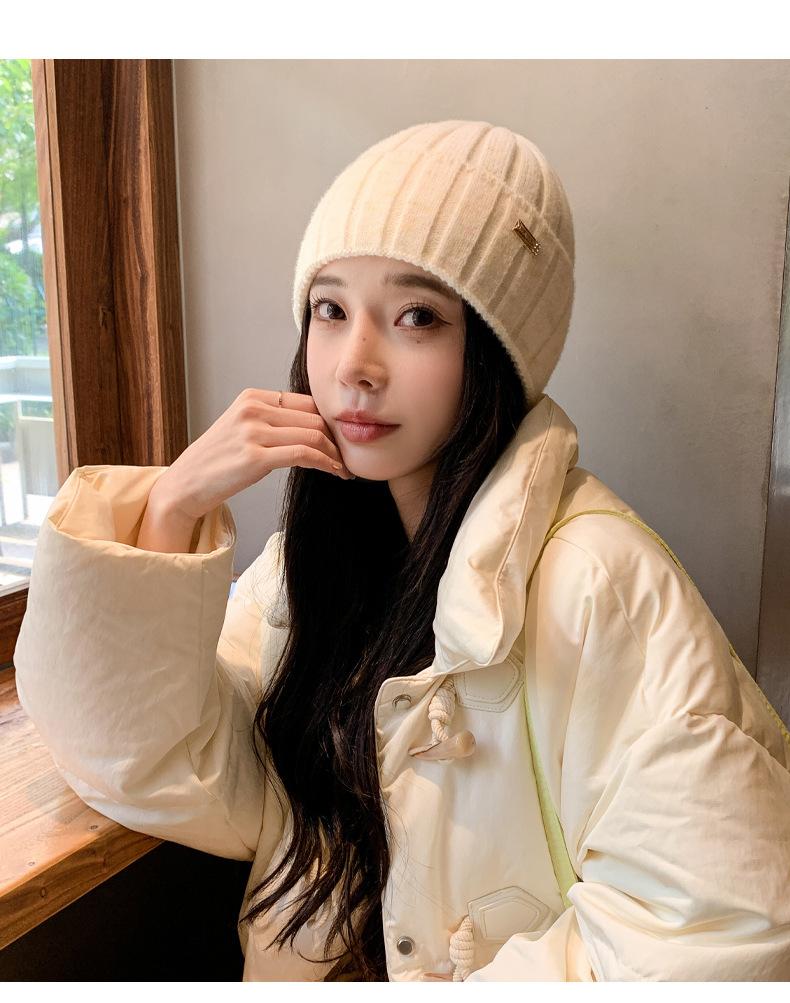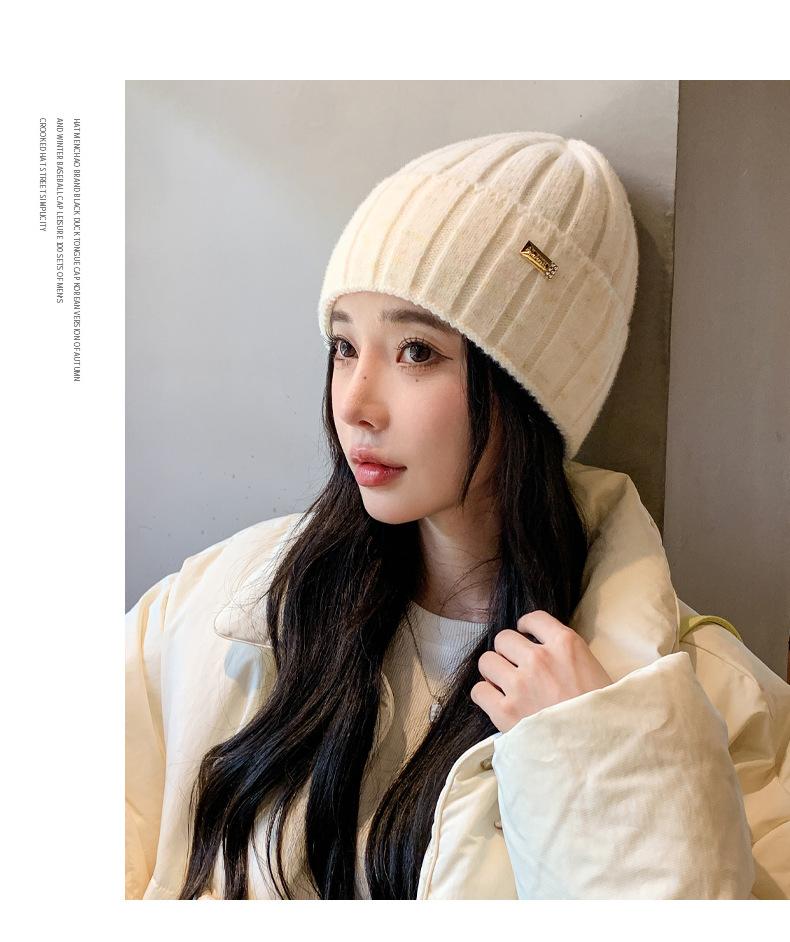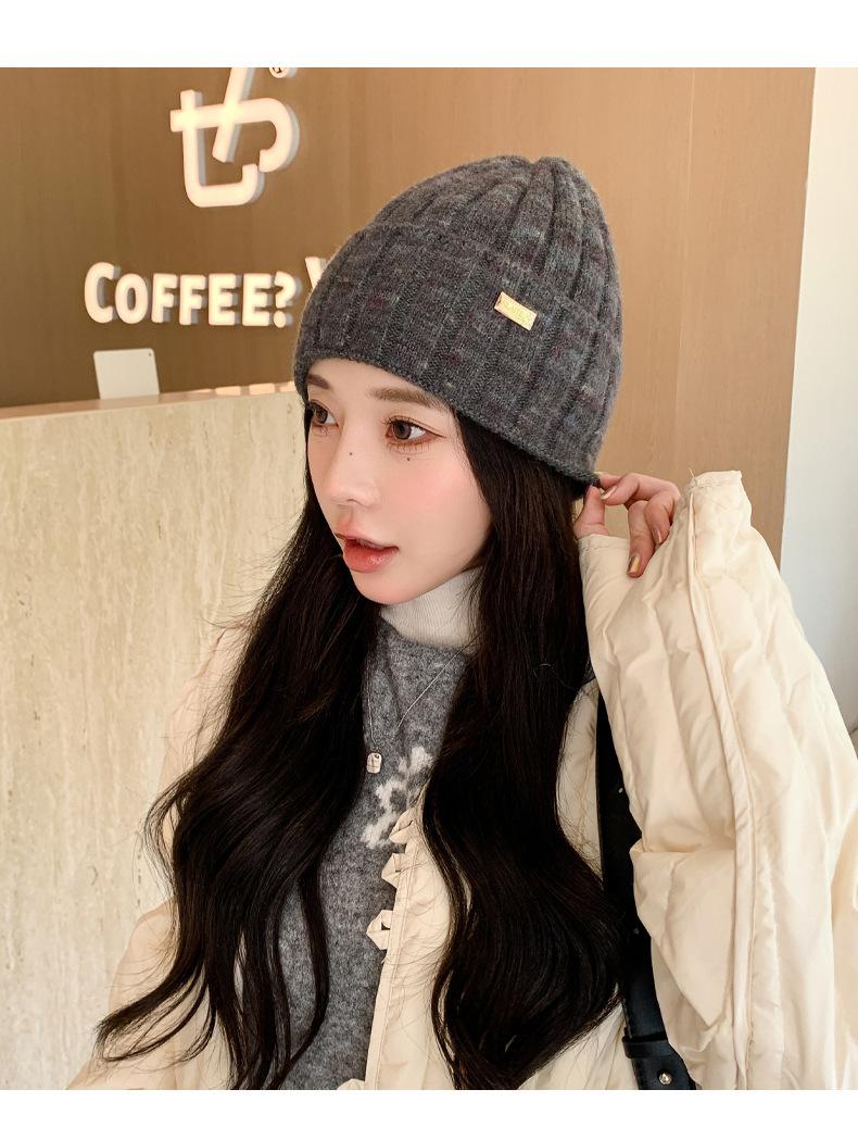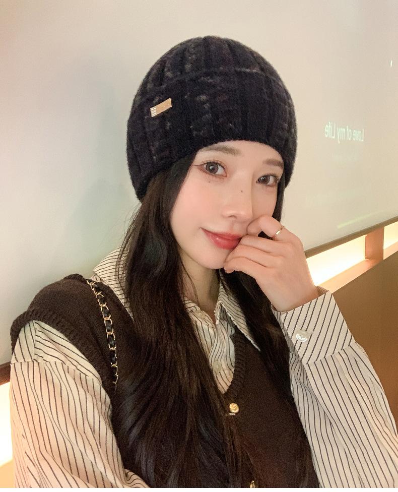 2024 versión coreana de otoño e invierno nuevo sombrero moda para mujer color sombrero de lana de punto invierno cálido estudiante gorro pulóver marea