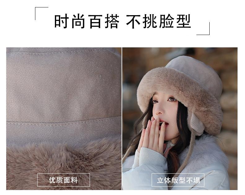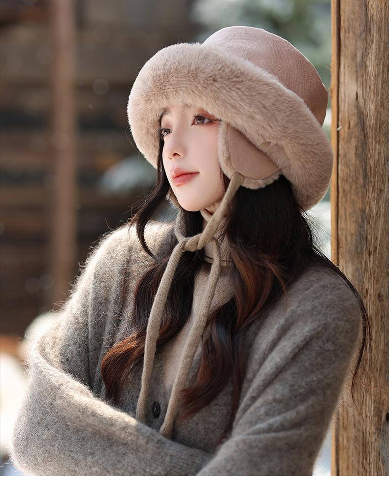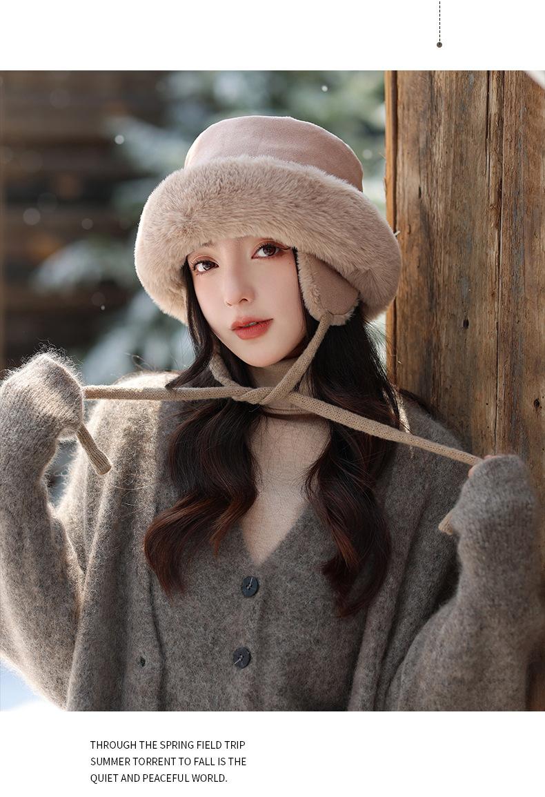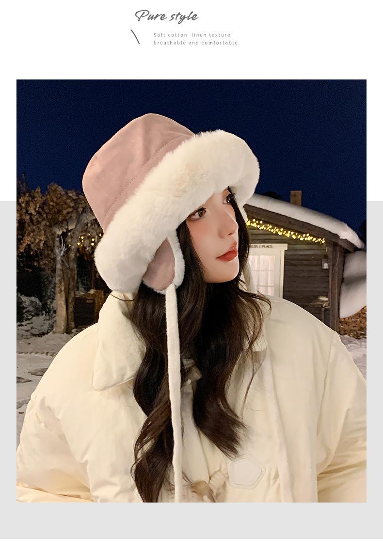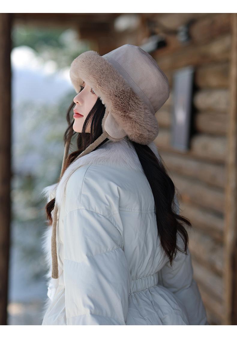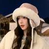 Gorro de estilo coreano para otoño e invierno, cálido y resistente al viento, de felpa, con protección para las orejas de terciopelo y piel de ciervo, para rostro llamativo, pequeño y grueso, para mujer.