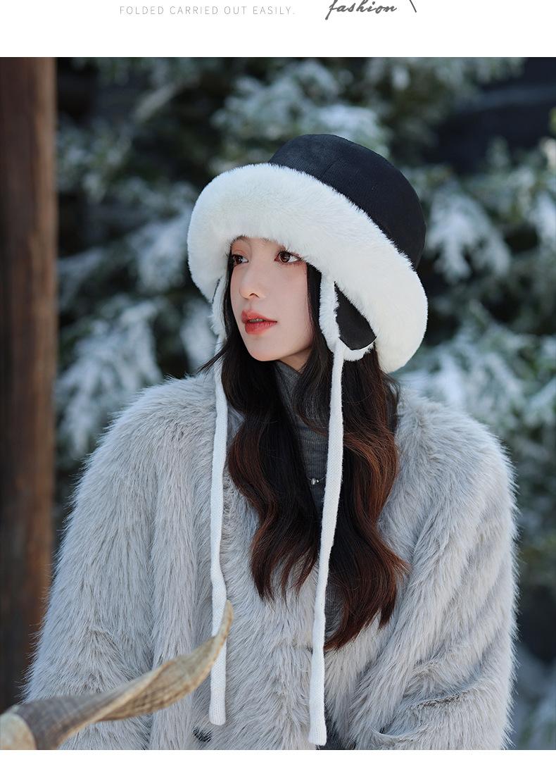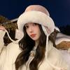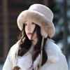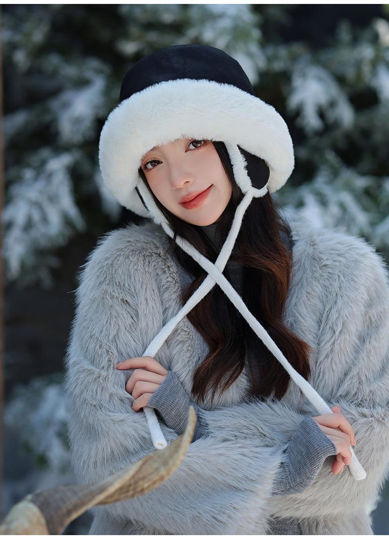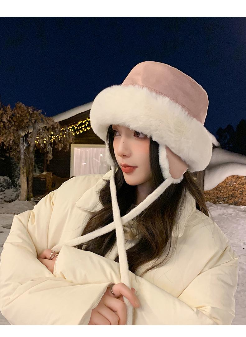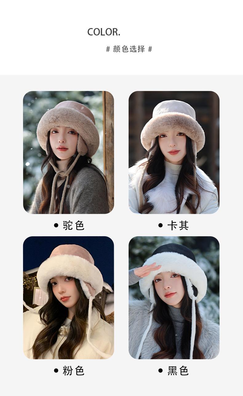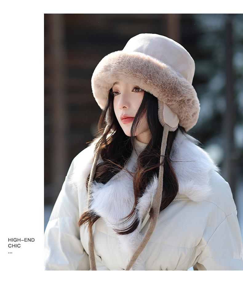 Gorro de estilo coreano para otoño e invierno, cálido y resistente al viento, de felpa, con protección para las orejas de terciopelo y piel de ciervo, para rostro llamativo, pequeño y grueso, para mujer.