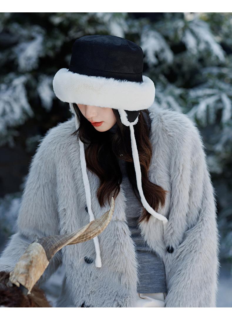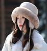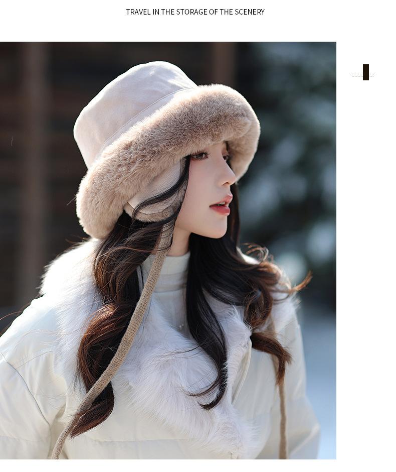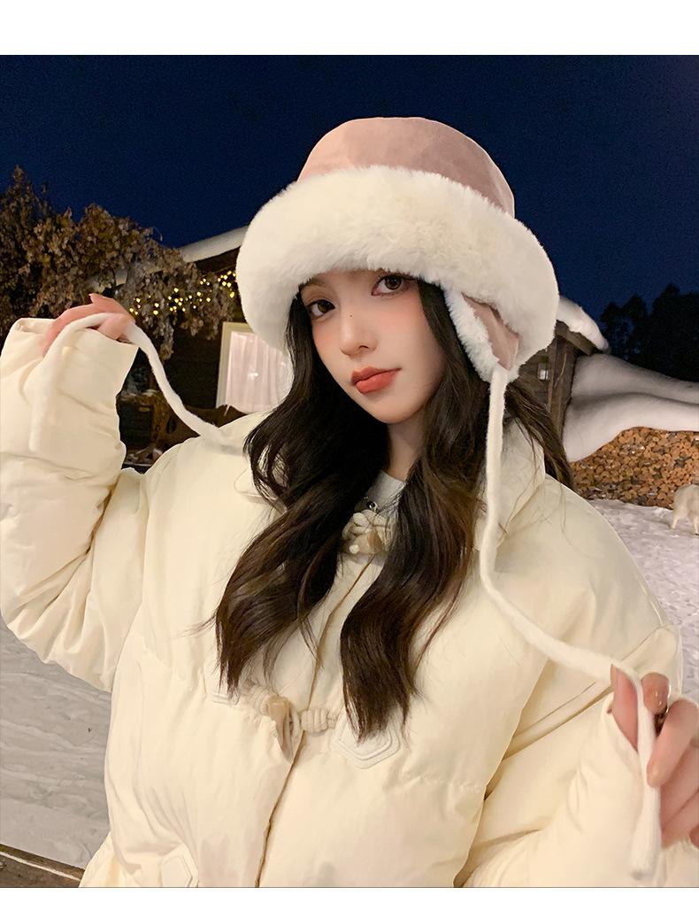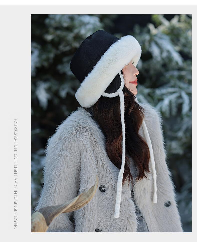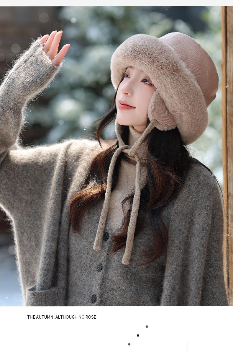 Gorro de estilo coreano para otoño e invierno, cálido y resistente al viento, de felpa, con protección para las orejas de terciopelo y piel de ciervo, para rostro llamativo, pequeño y grueso, para mujer.