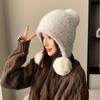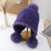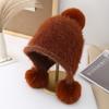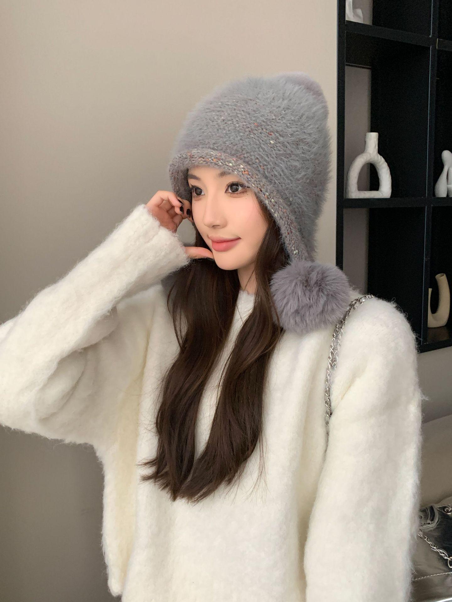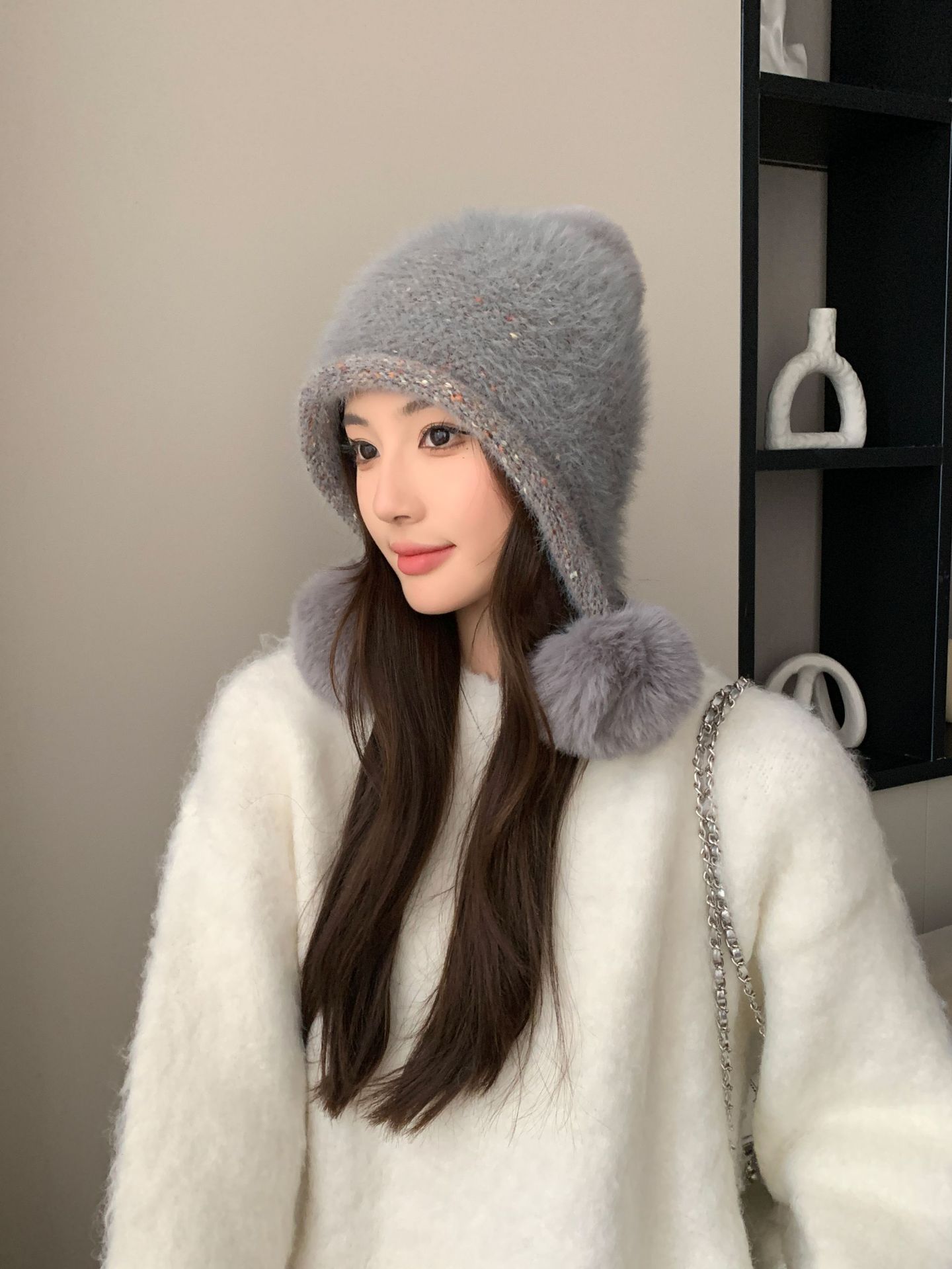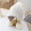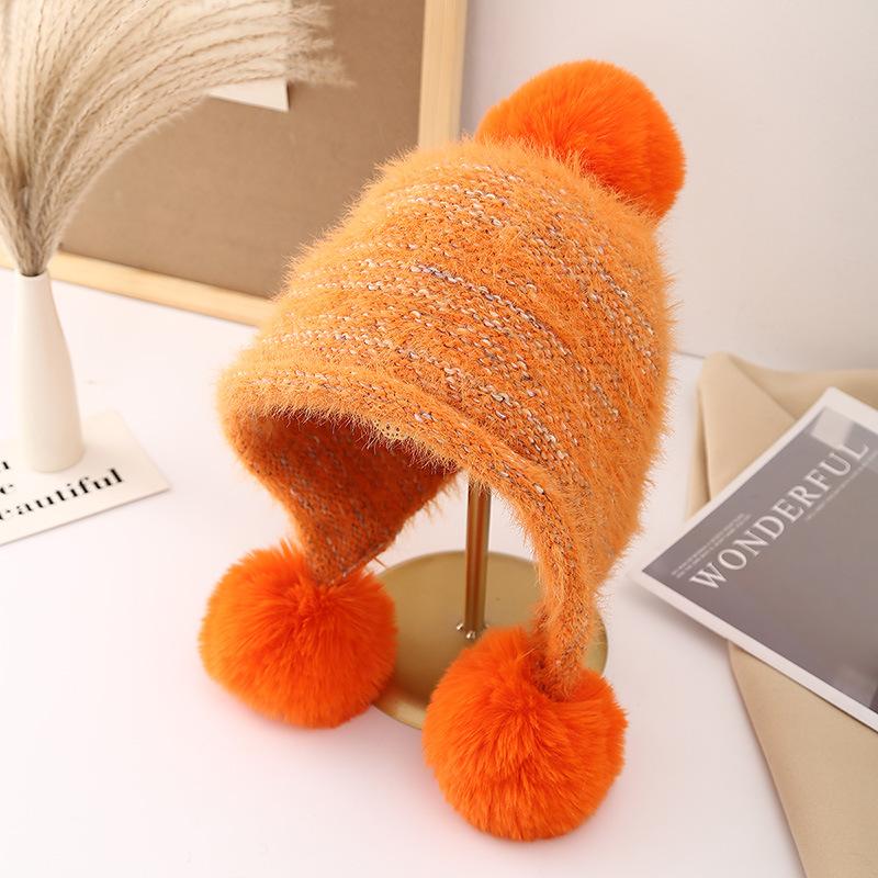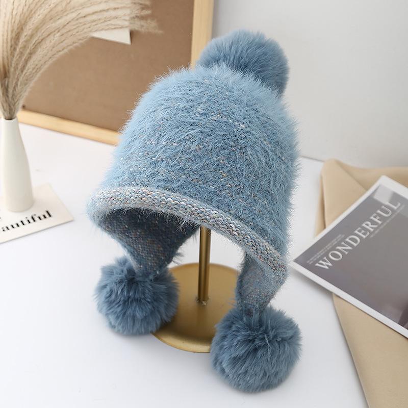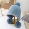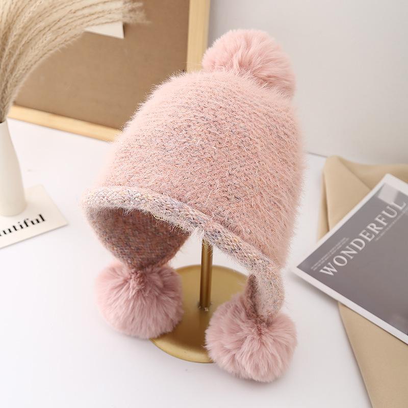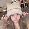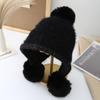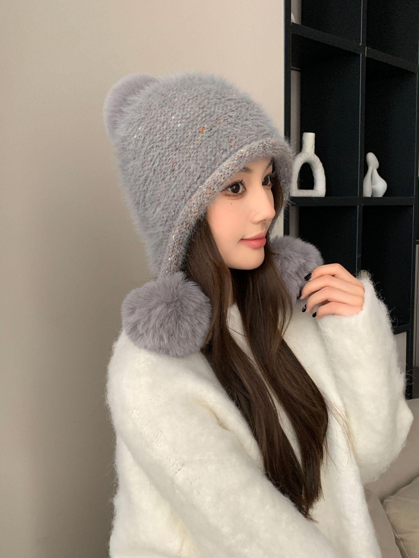 Gorro de invierno 2024 para mujer, cálido gorro de punto con tres bolas de pelo, estilo coreano, protección para los oídos a prueba de frío, gorro de lana que combina con todo, moderno
