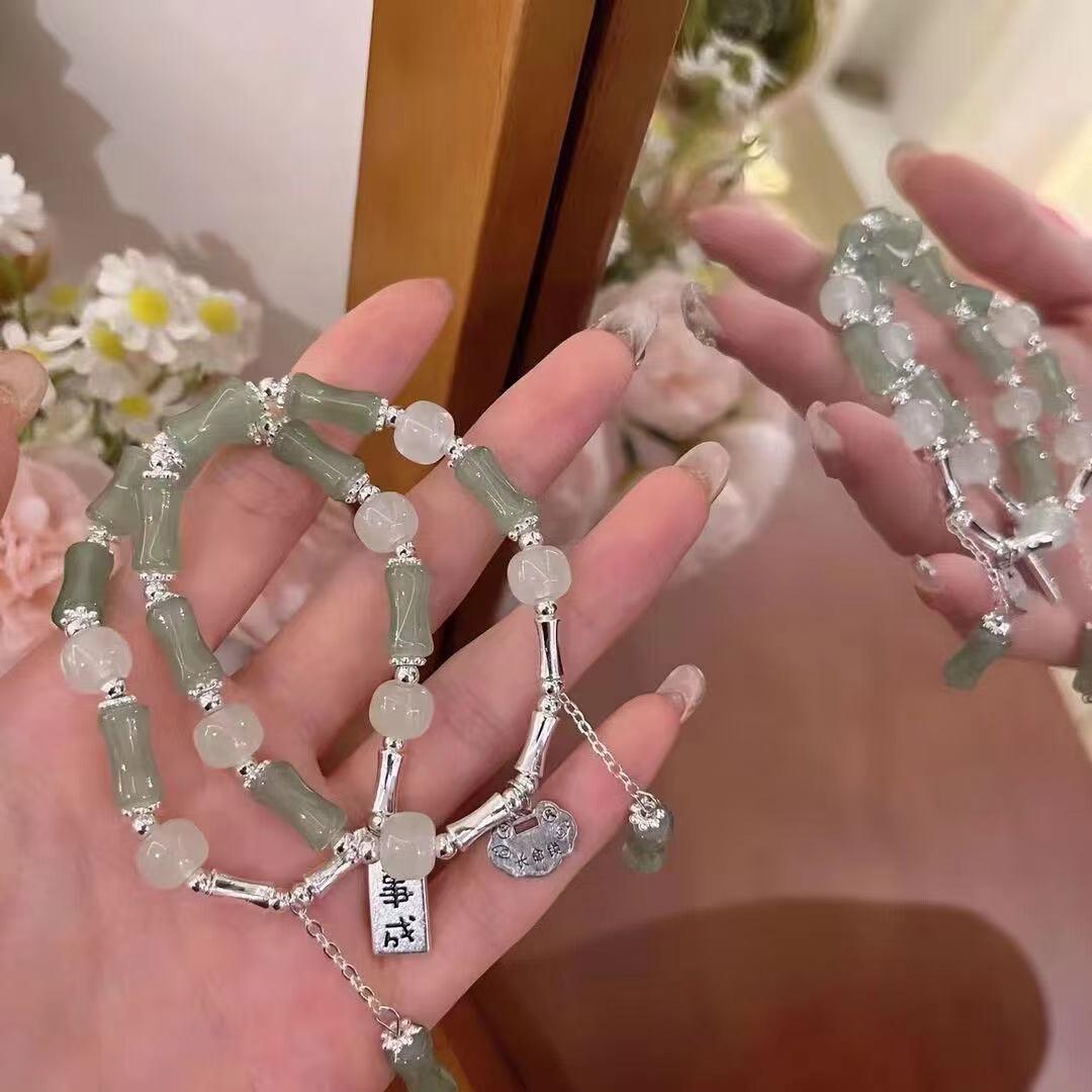 Pulsera de Bloqueo de la Paz de Bambú Estilo Étnico Estilo Chino Nuevo para Mujer 2024 Nueva Pulsera con Sensación de Diseño de Alta Gama