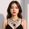 Collar de sol pequeño retro europeo y americano para mujer, elegante colgante de circonita estilo palacio, cadena de clavícula de acero inoxidable de lujo con luz de celebridades de Internet