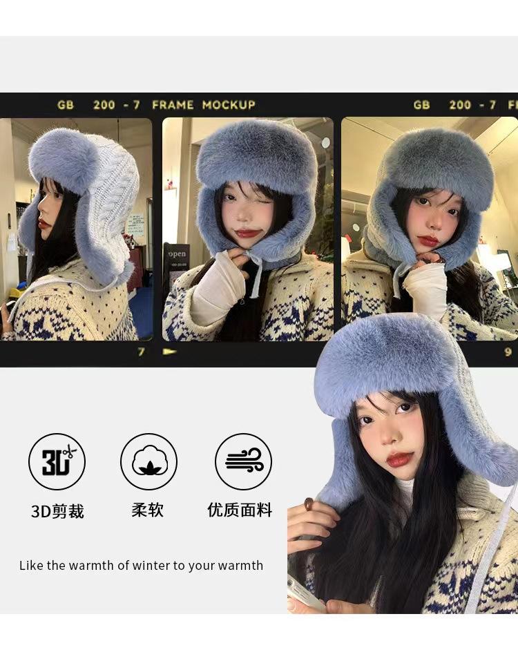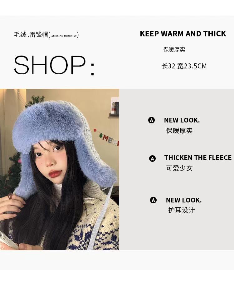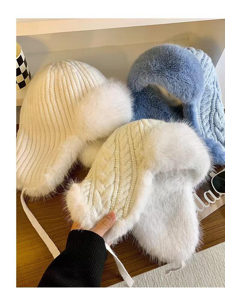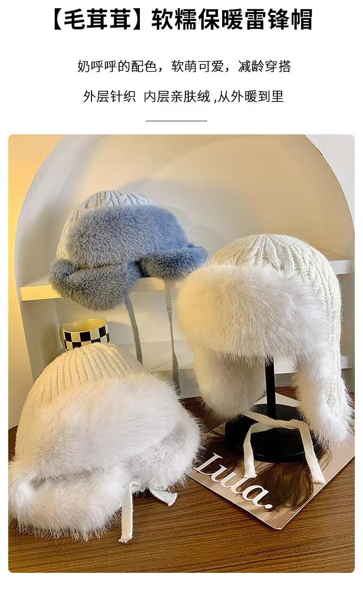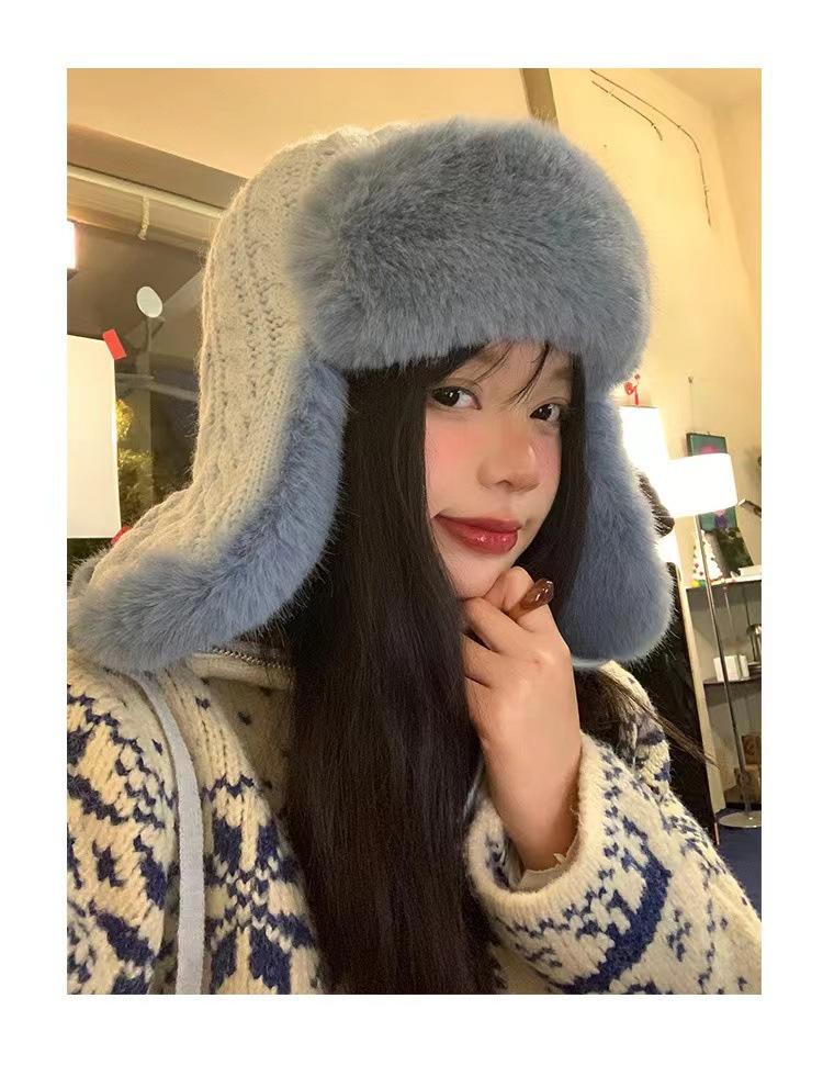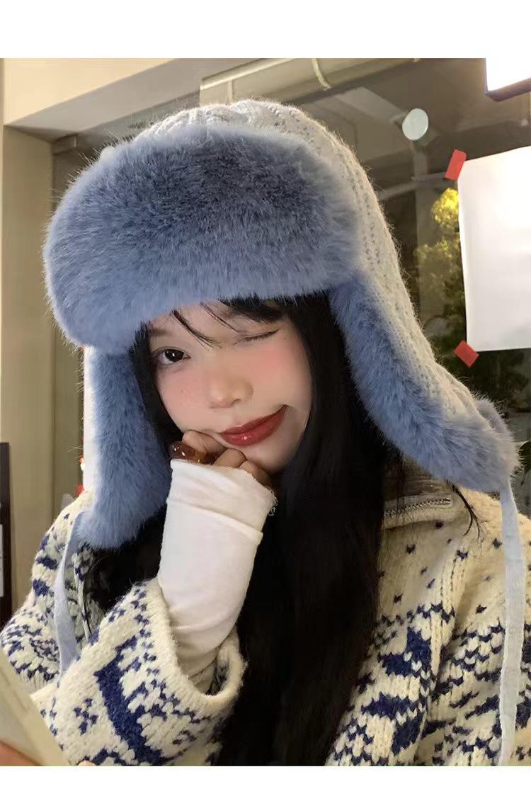 Gorro Lei Feng de Felpa para Mujer Invierno Estilo Coreano con Forro Polar Grueso Cálido Protección para las Orejas Gorro Ciclismo a Prueba de Frío Tejido de Lana Gorro de Moda