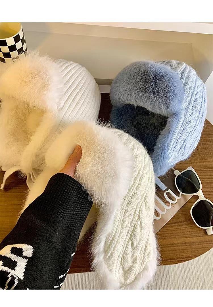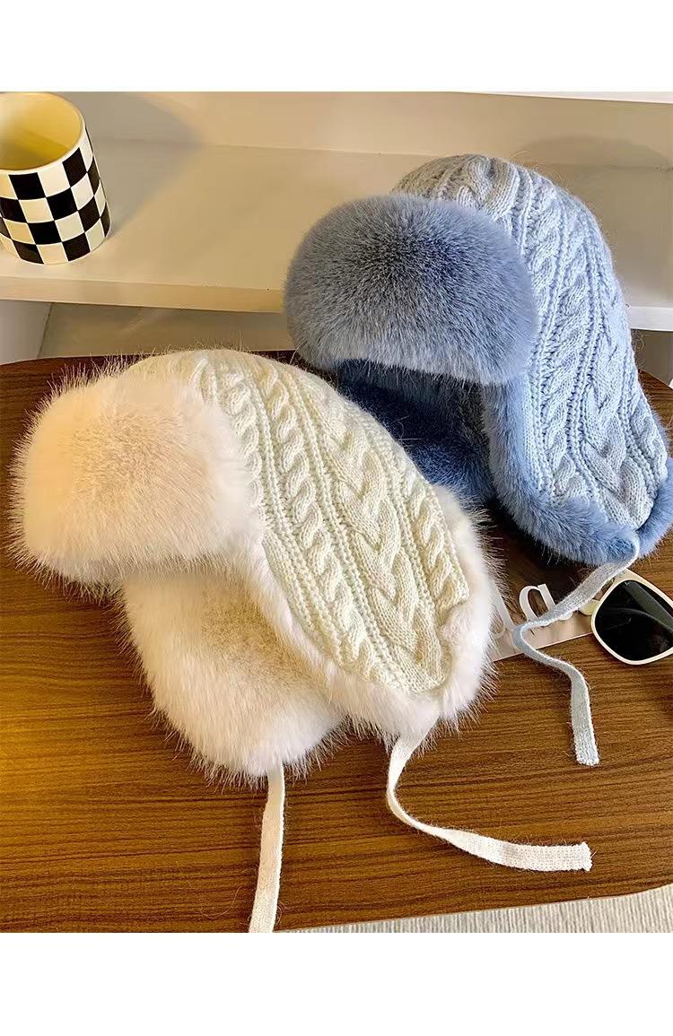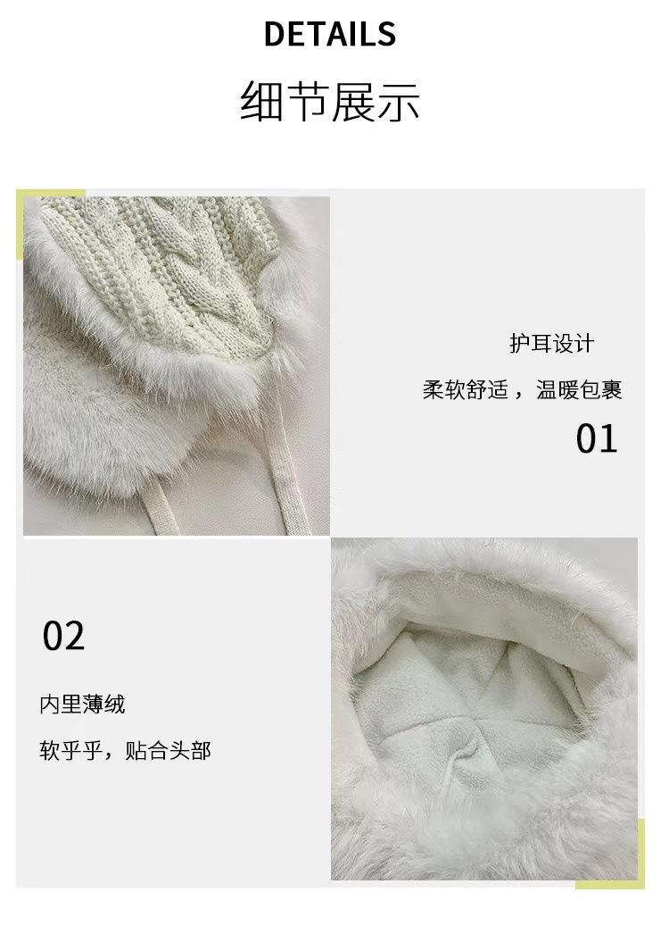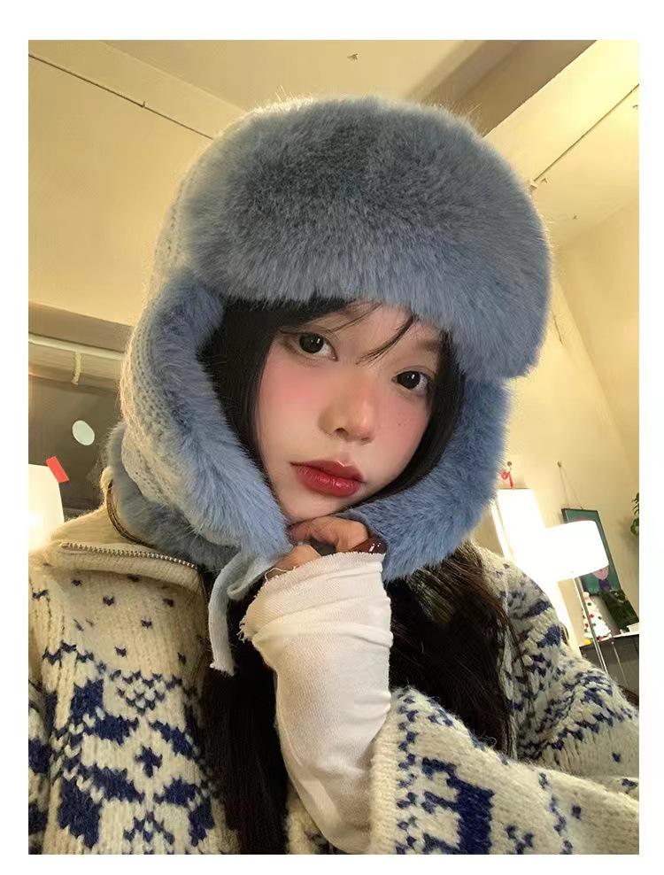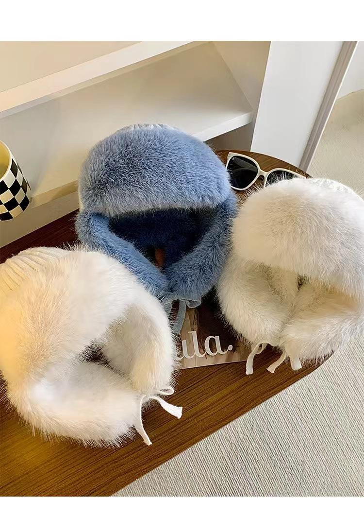 Gorro Lei Feng de Felpa para Mujer Invierno Estilo Coreano con Forro Polar Grueso Cálido Protección para las Orejas Gorro Ciclismo a Prueba de Frío Tejido de Lana Gorro de Moda