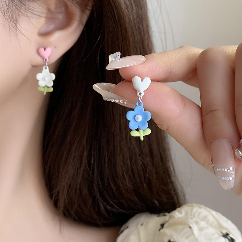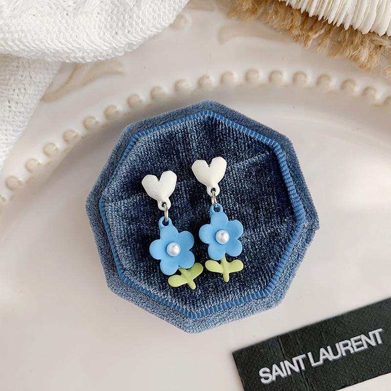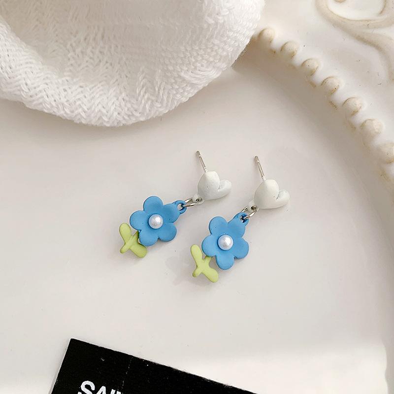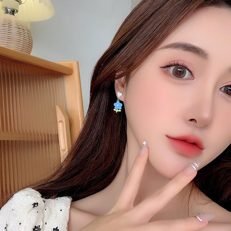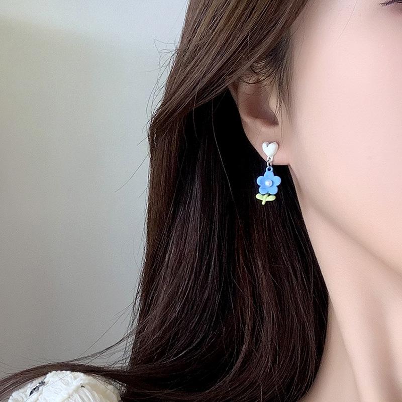 Compra Pendientes de plata S925 con diseño de flor de caramelo y aguja, con contraste de colores, para mujer, con un elegante diseño de nicho y clip para las orejas. al por mayor en Joom.pro