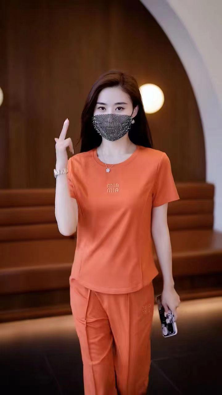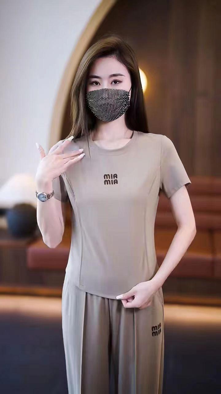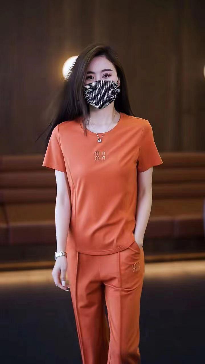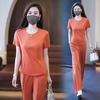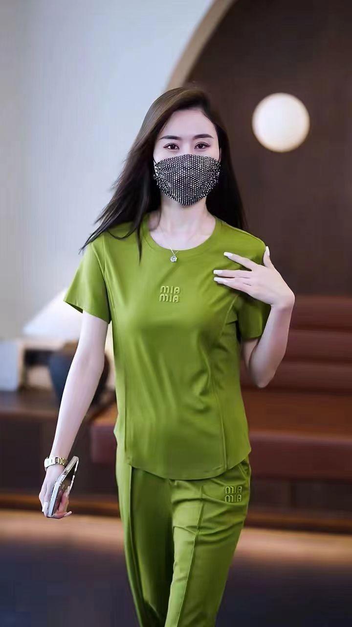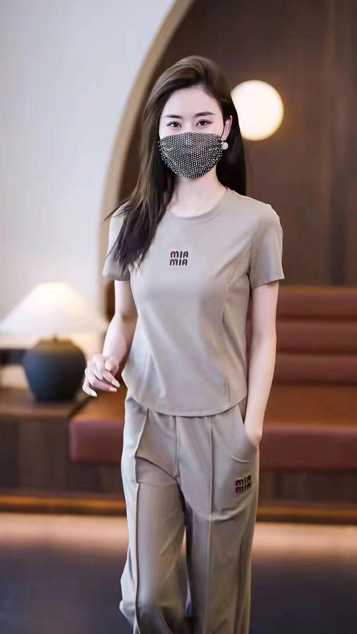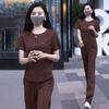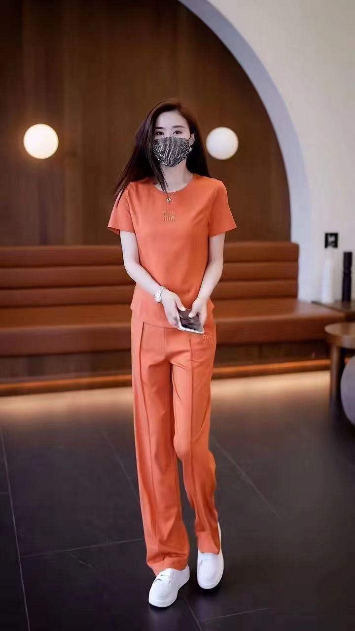 Conjunto deportivo de dos piezas con cuello redondo explosivo para mujer, nuevo conjunto de moda, pantalones rectos holgados y adelgazantes.