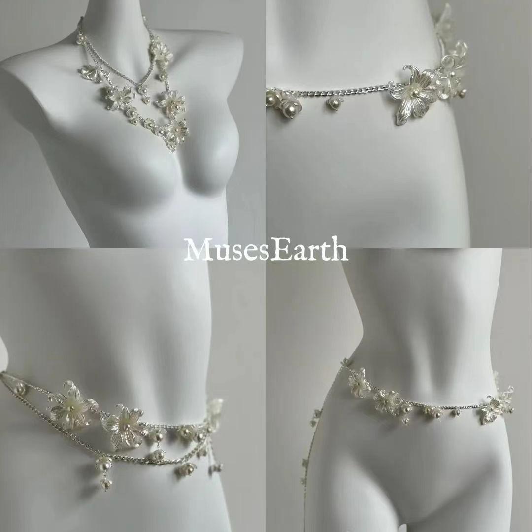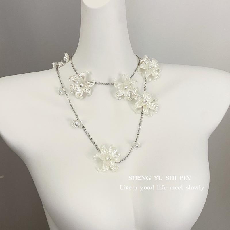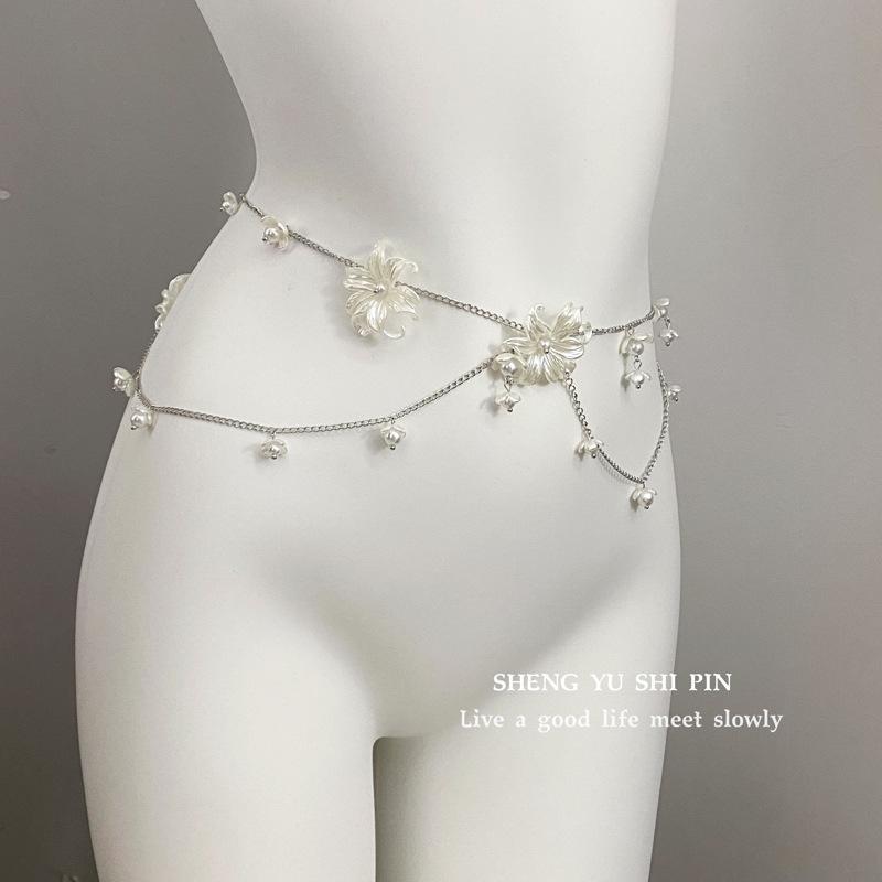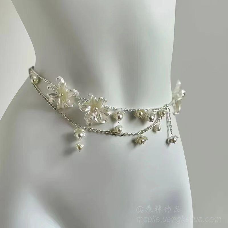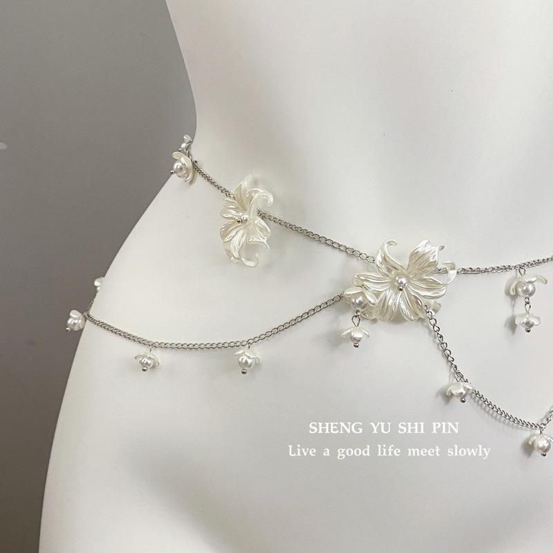 Collar con borlas de perlas y flores de hada estilo francés, cadena para la cintura, diseño con gran sentido de belleza, combina con todo, elegante y único, collar de cadena para mujer.