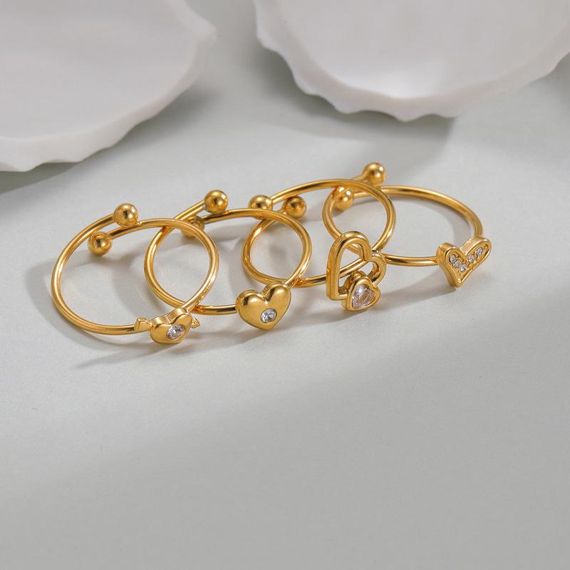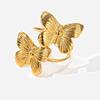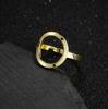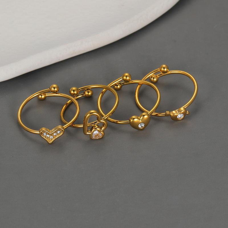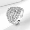Anillo abierto de acero inoxidable con incrustaciones de diamantes, estilo europeo y americano, elegante y sencillo, joyería exquisita que combina con todo.