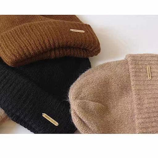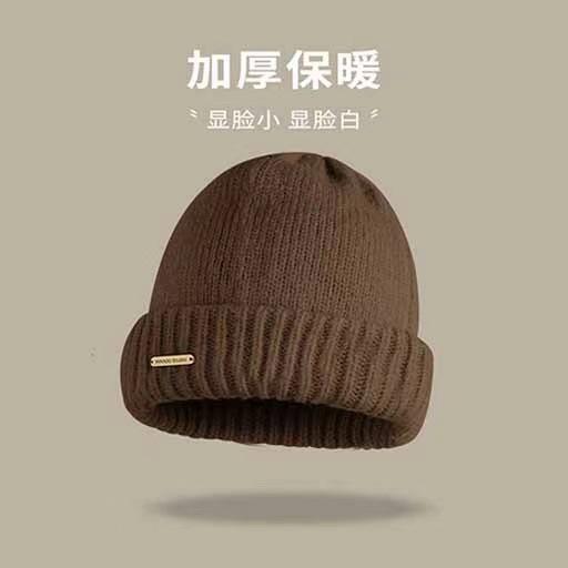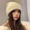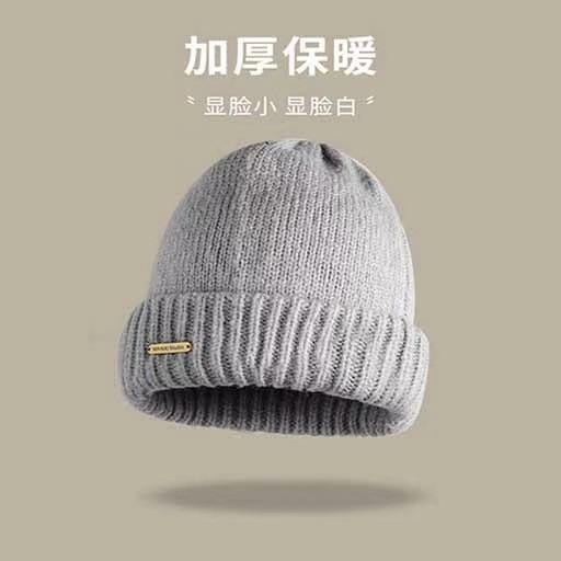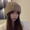 Gorro de lana de hierro para mujer, otoño e invierno, cálido, grueso, de cabeza grande, estilo coreano, gorro de punto combinable, estilo japonés, gorro frío simple y moderno.
