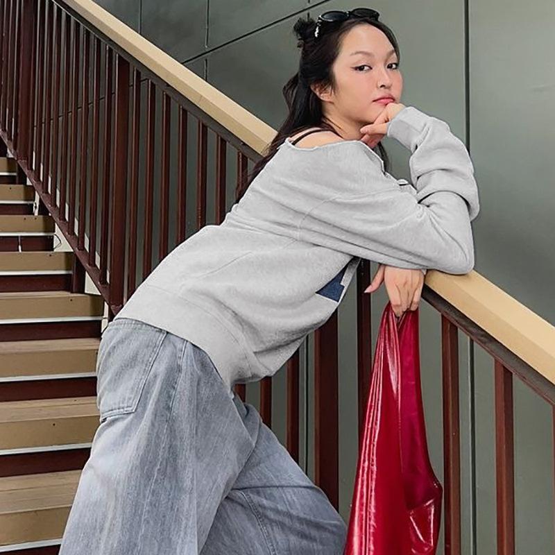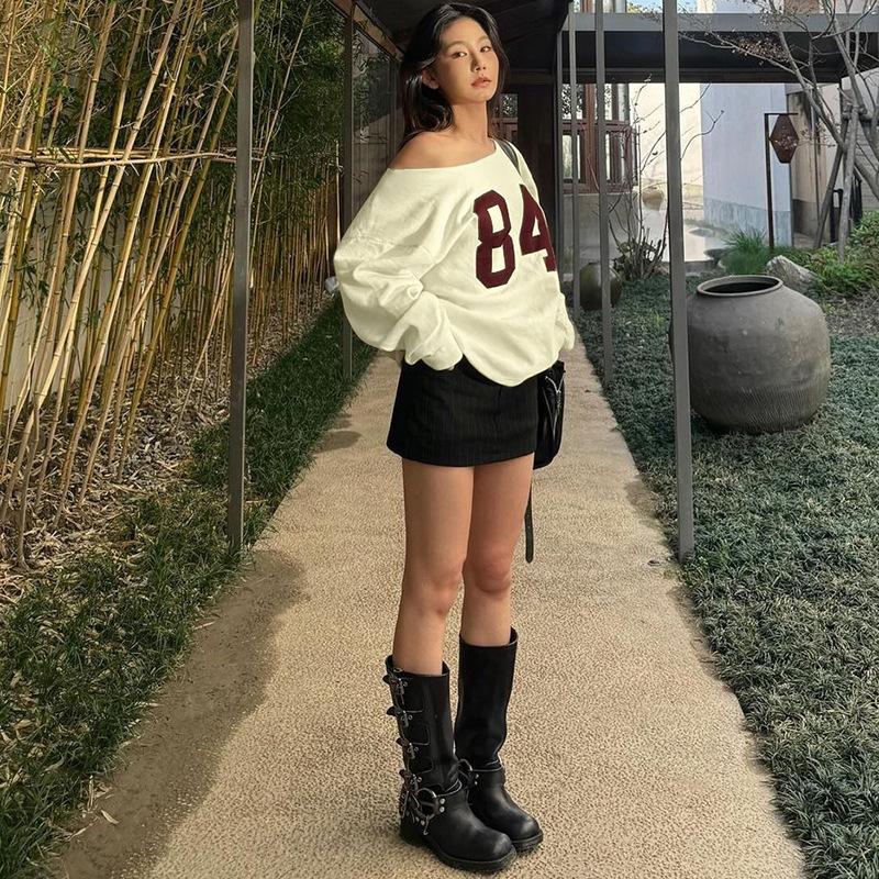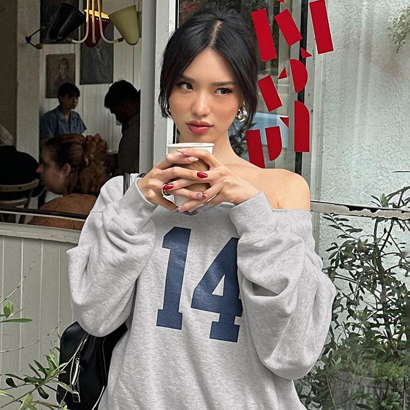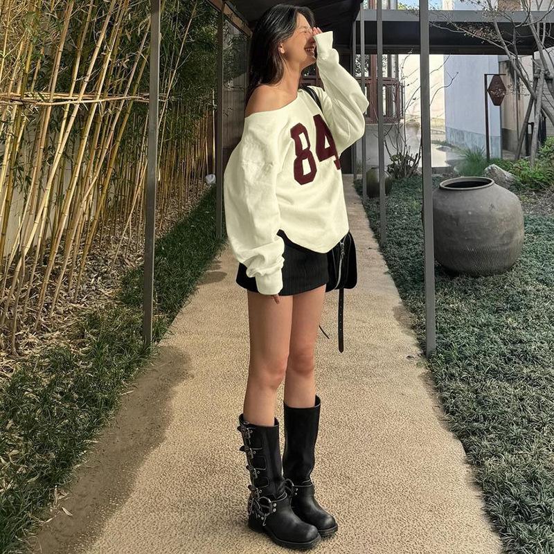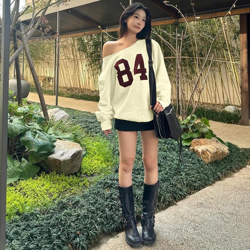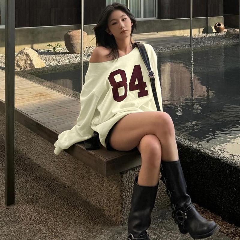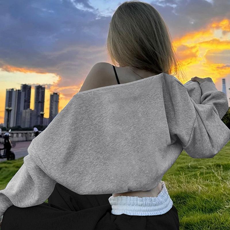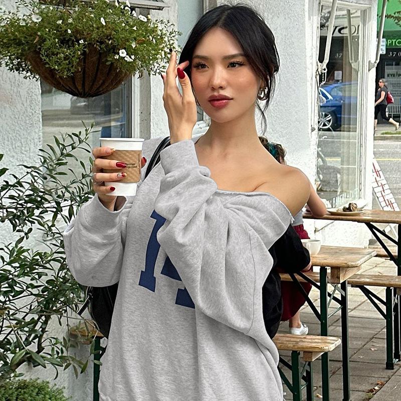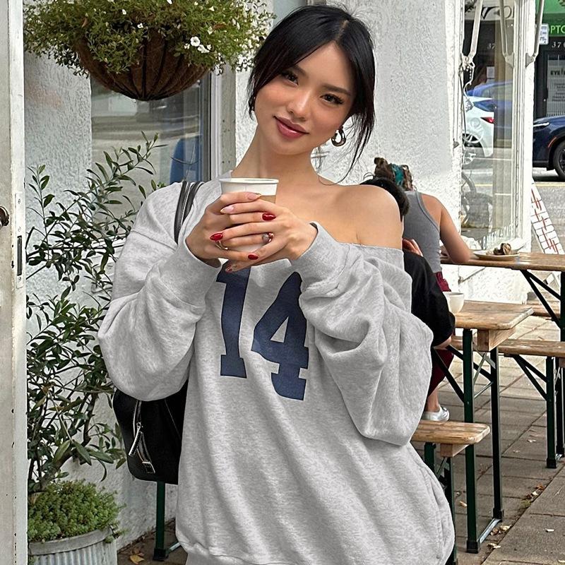 Suéter casual holgado con hombros descubiertos y estampado nuevo de otoño e invierno 2024 para mujer, superventas en Europa y Estados Unidos, venta al por mayor
