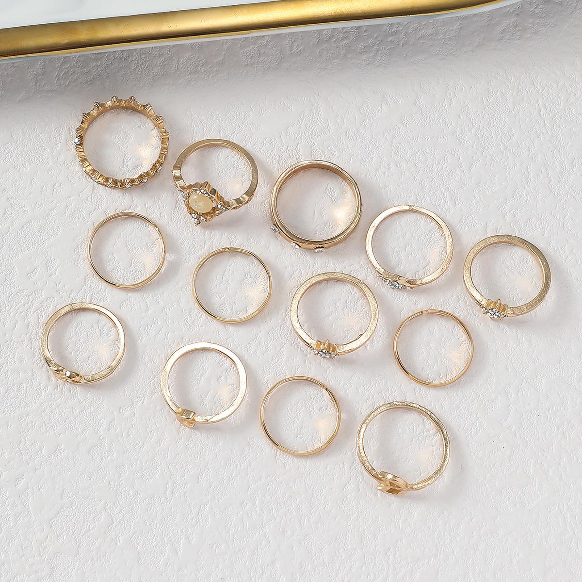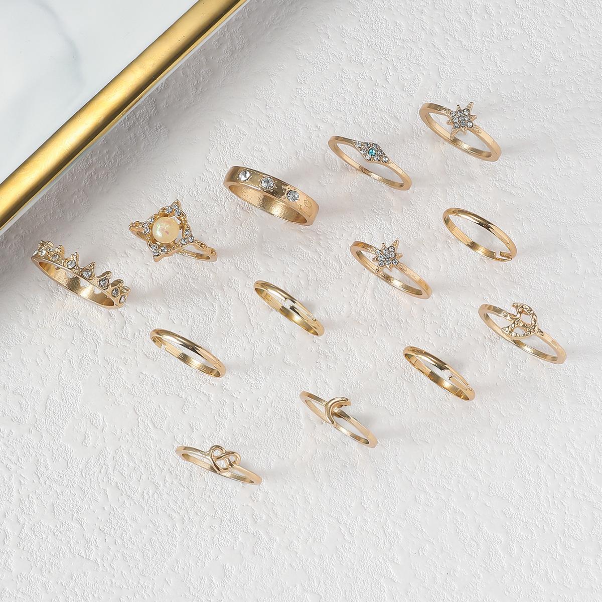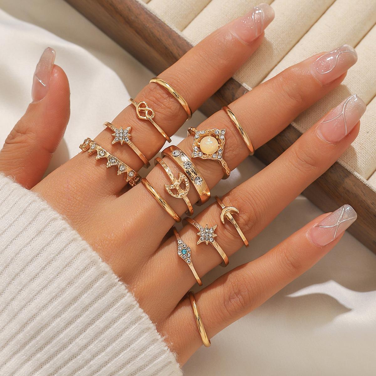 Anillo Transfronterizo de Estrella y Luna Diamante Amor Perla Hojas Anillo de 13 piezas Creativo Nicho Anillo de Articulación