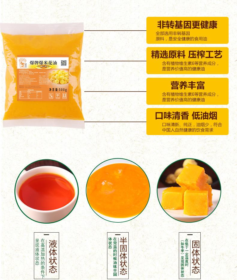 Aceite especial para palomitas de maíz Hot Brand, 500 g, en bolsa para el hogar, sabor a leche, aceite crudo para palomitas de maíz, entrega de fábrica en una sola pieza