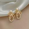 Pendientes de perlas para mujer, elegantes y atmosféricos, de alta gama, estilo retro de Hong Kong, estilo Hepburn, con placa de incienso de mosquitos y clip para la oreja.
