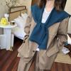 Otoño e Invierno Nuevo Suéter de Punto de Lana Pura para Mujer Capa Capucha Bufanda Elegante Casual Color Sólido Sencillo Chal Suelto