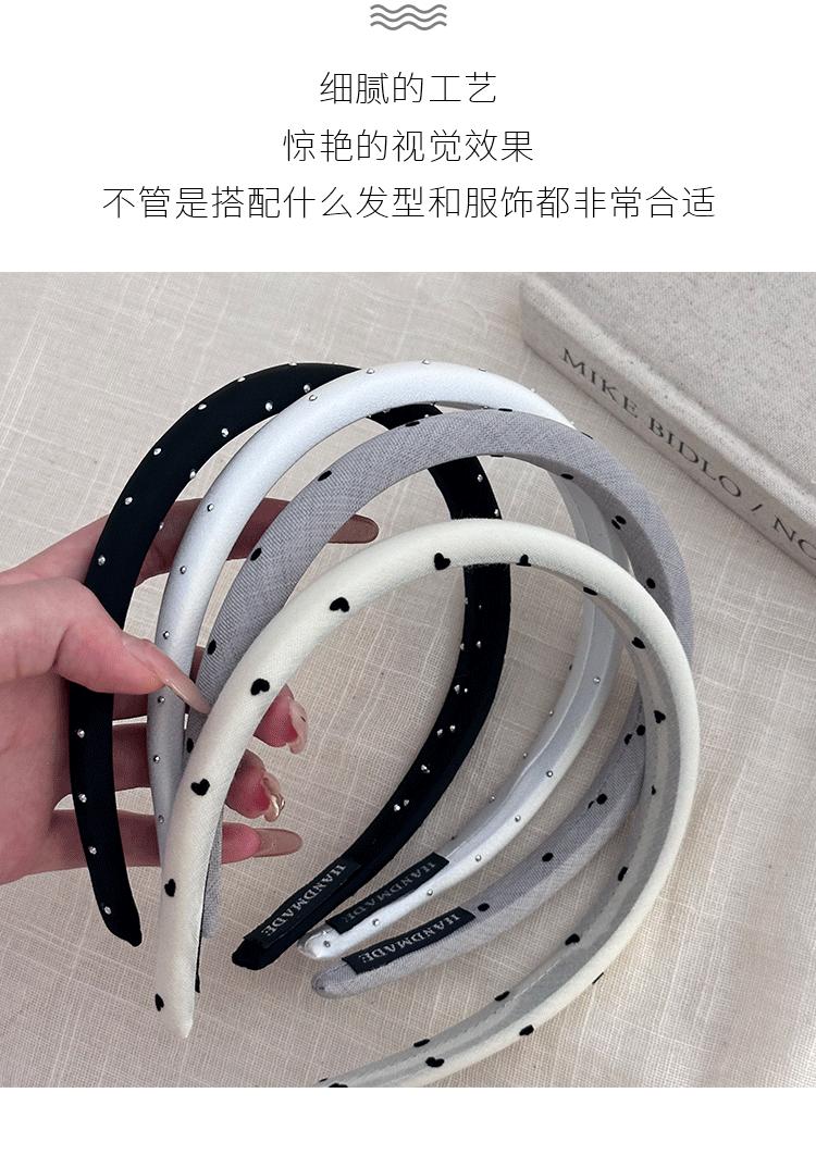 White rhinestone headband, Black rhinestone headband, Gray polka dot headband, Beige love headband