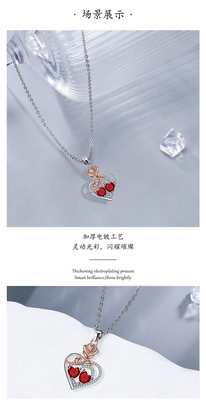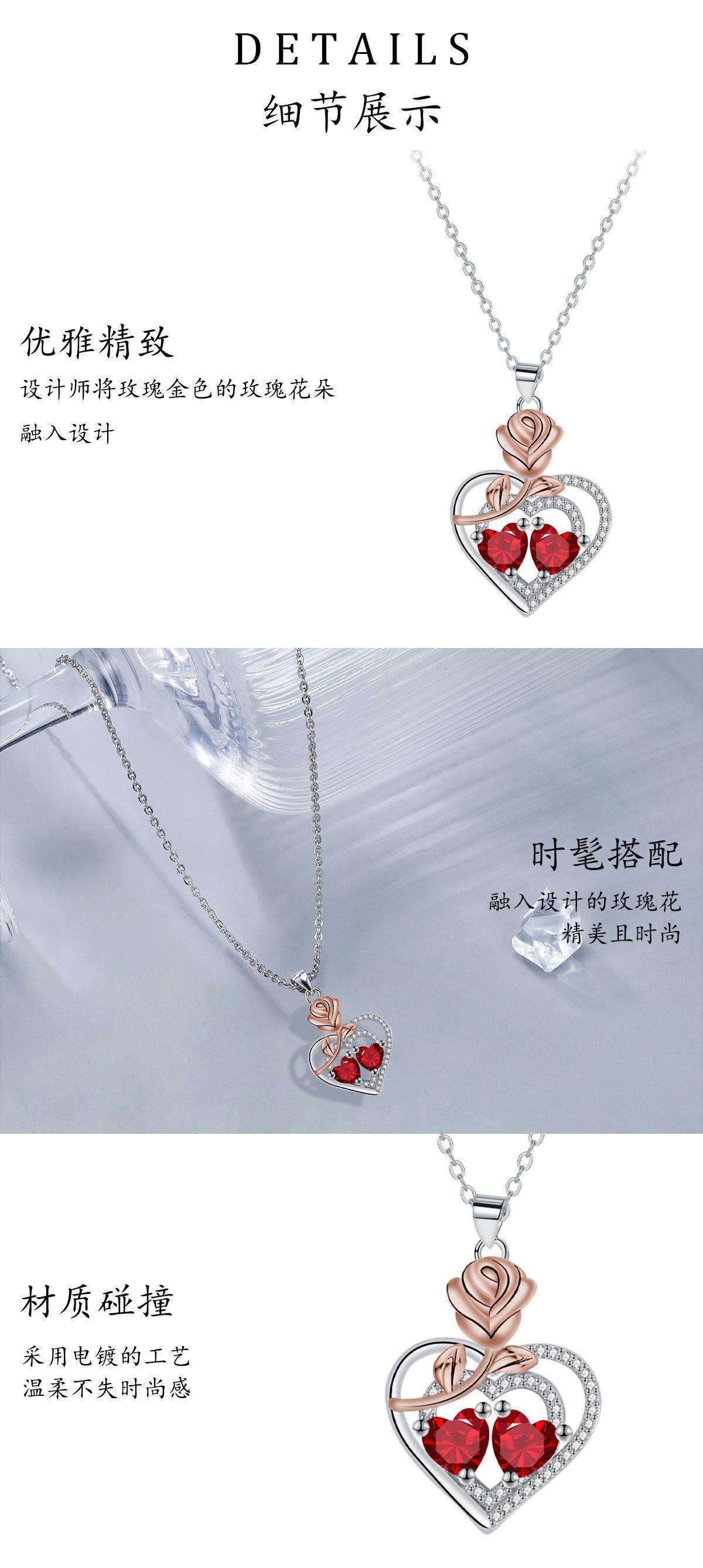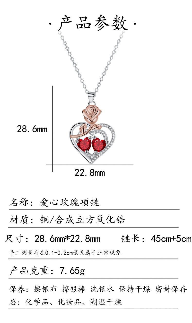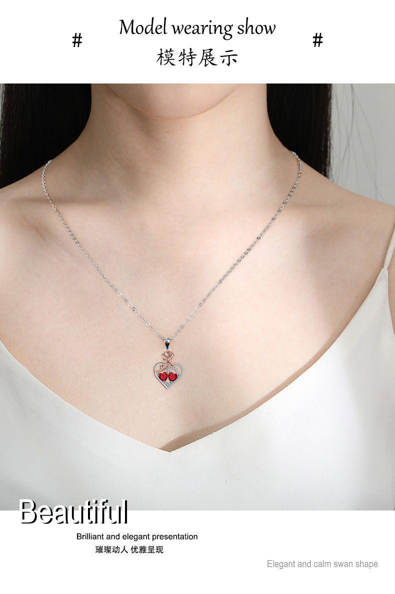 Joyería Carman de Estilo Europeo y Americano Transfronterizo Corazón Rojo Rosa Moda Collar Elegante Cadena para Clavícula para Mujer Joyería de Alta Gama