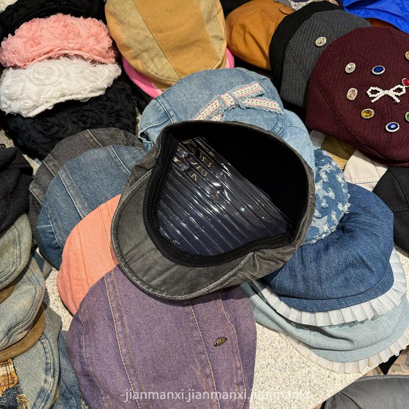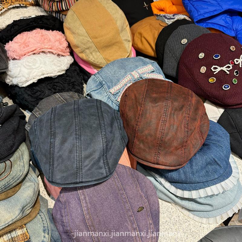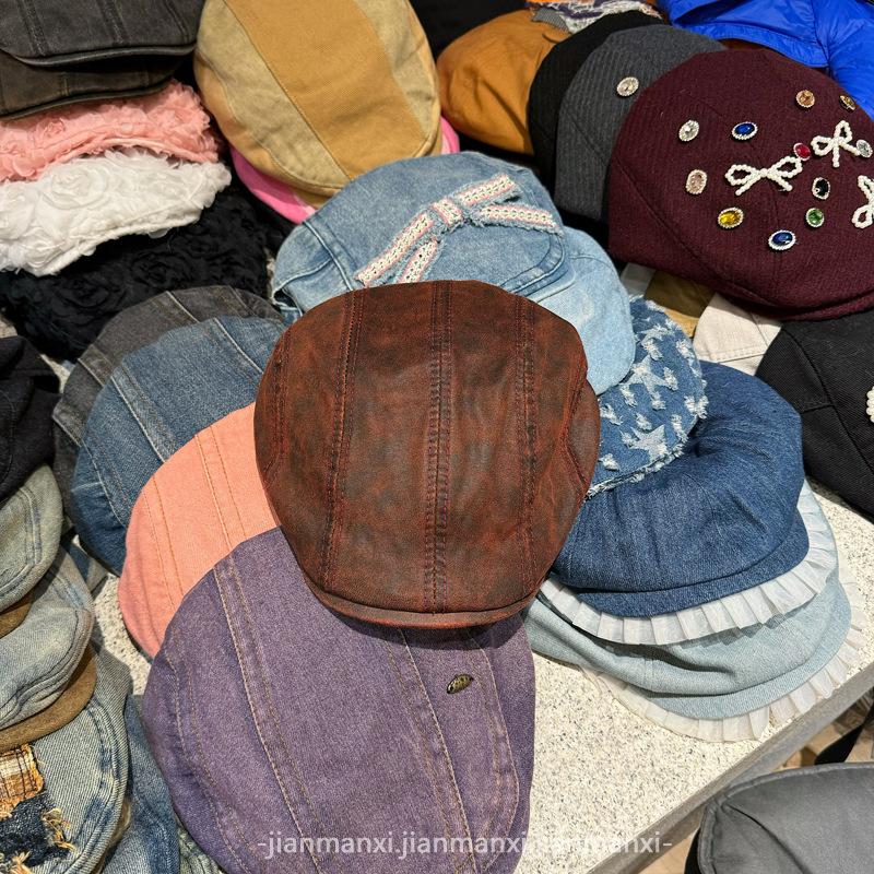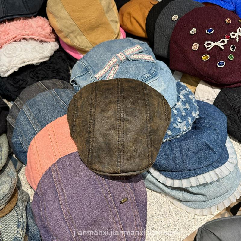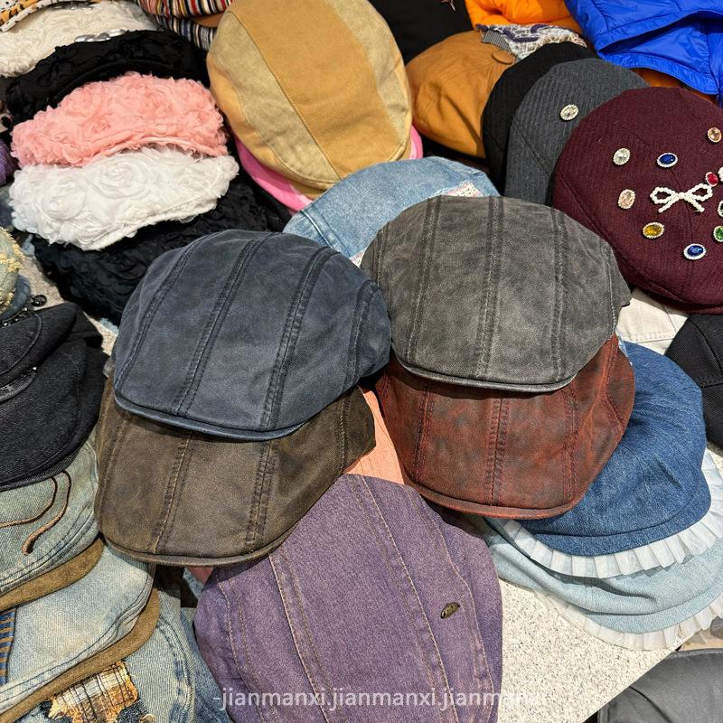 Boina de mujer estilo coreano 2024 con lavado de color antiguo, estilo pintor, estilo retro, simple, para vendedor de periódicos