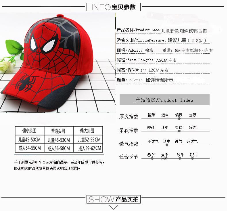 Gorra de béisbol infantil de primavera y verano, gorra de béisbol infantil transfronteriza de comercio exterior, gorra de niña, gorra de Spider-Man para niño, protector solar