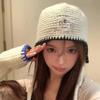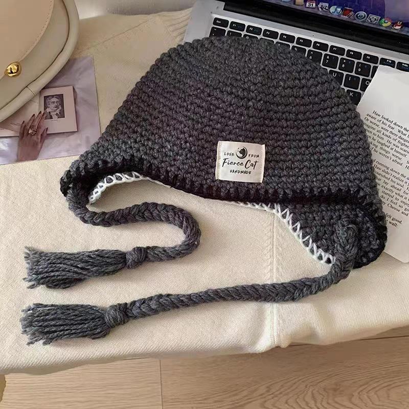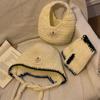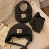 Gorro de punto estilo coreano cálido con correa de borlas para mujer, otoño e invierno, para combinar con todo, de lana, guantes, bolso, set de tres piezas