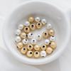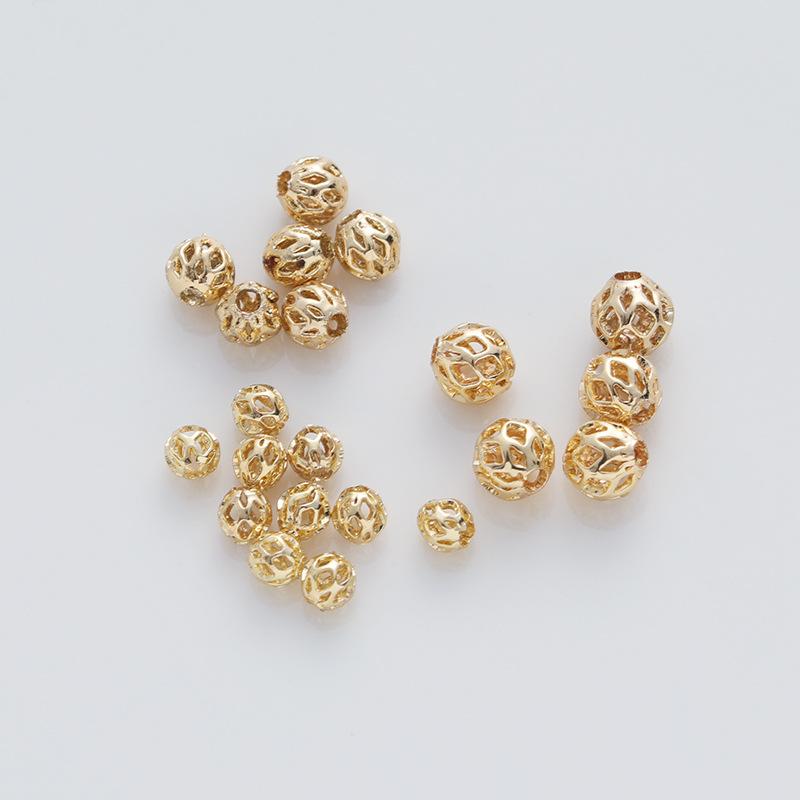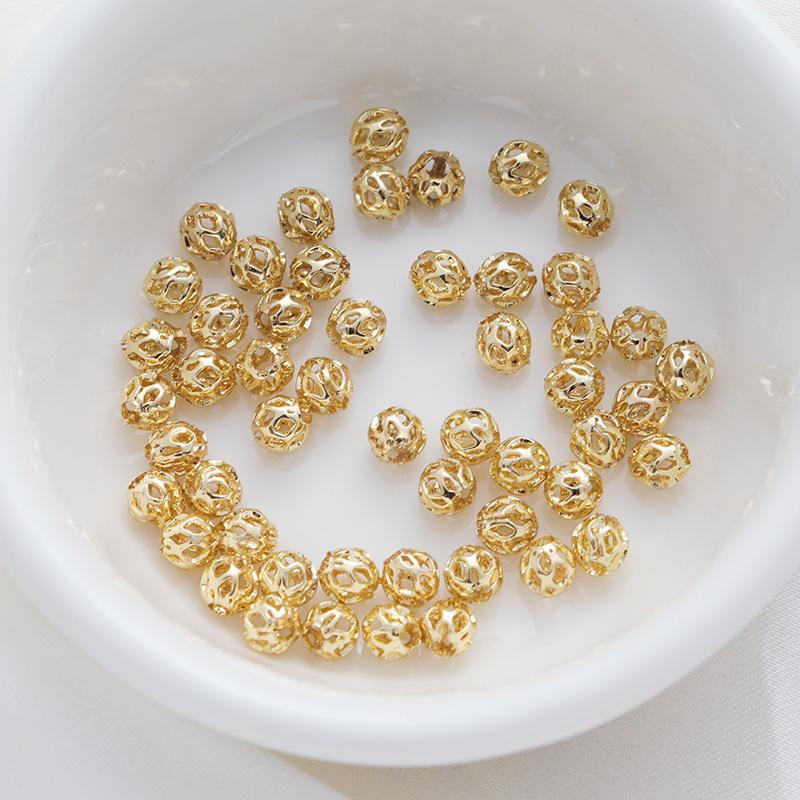Cuentas redondas huecas de color chapadas en oro de 14 quilates, rejilla de cuentas pequeñas, pulsera, collar, accesorios de joyería hechos a mano.