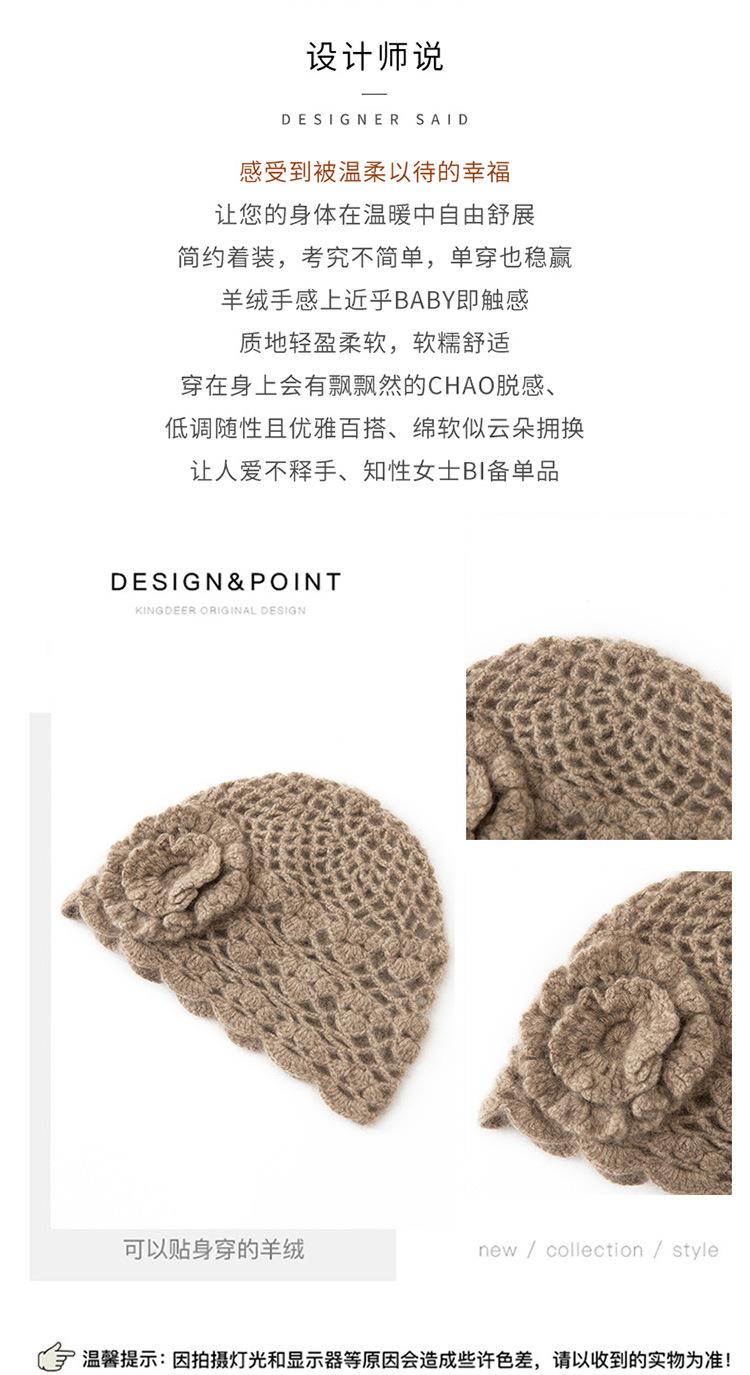 Gorro de punto de cachemira hecho a mano para otoño e invierno, estilo coreano, cálido, con protección para las orejas y puntera de lana.