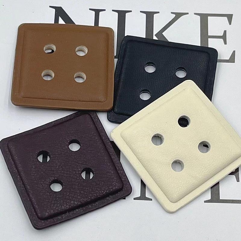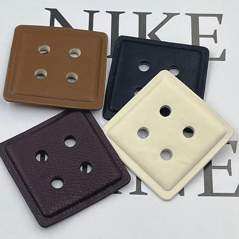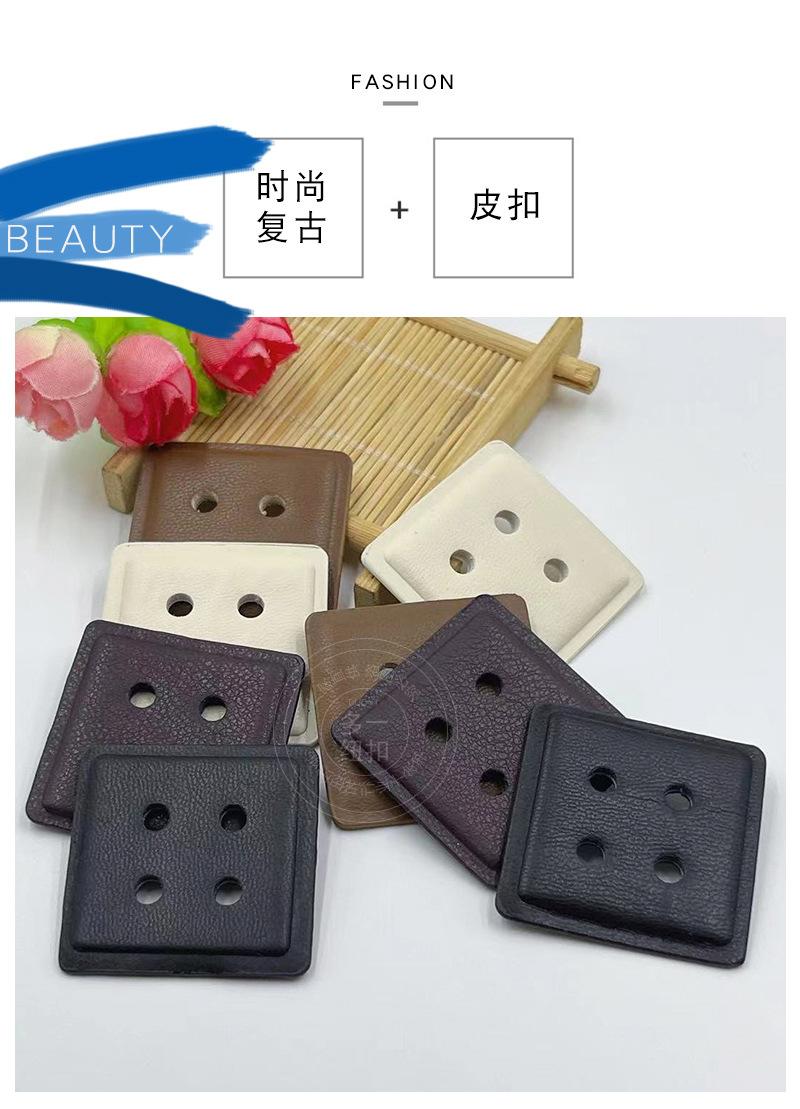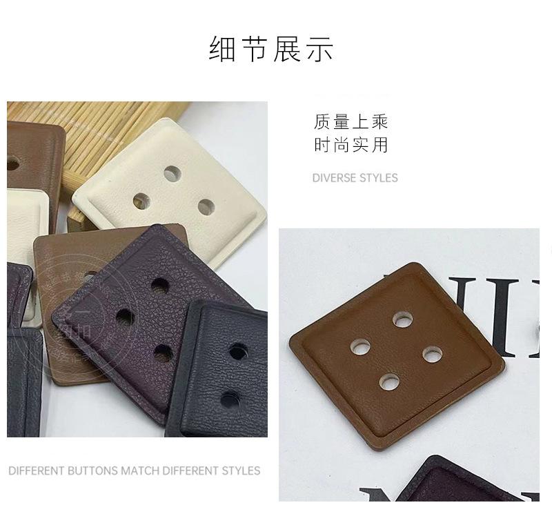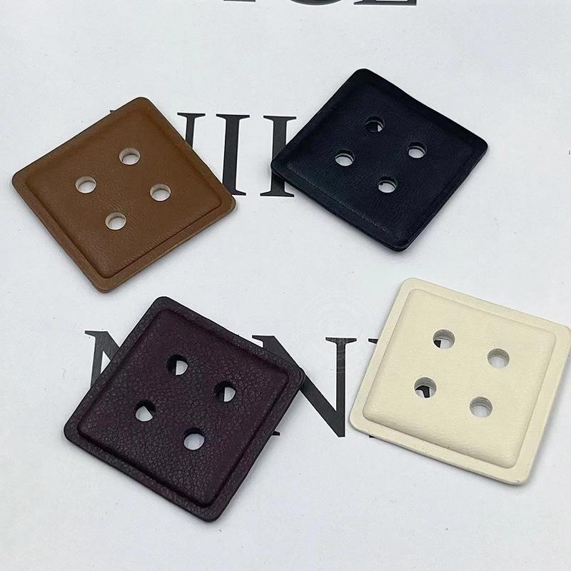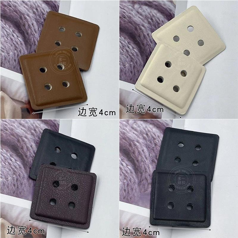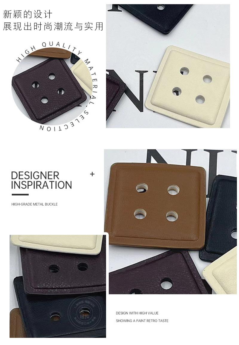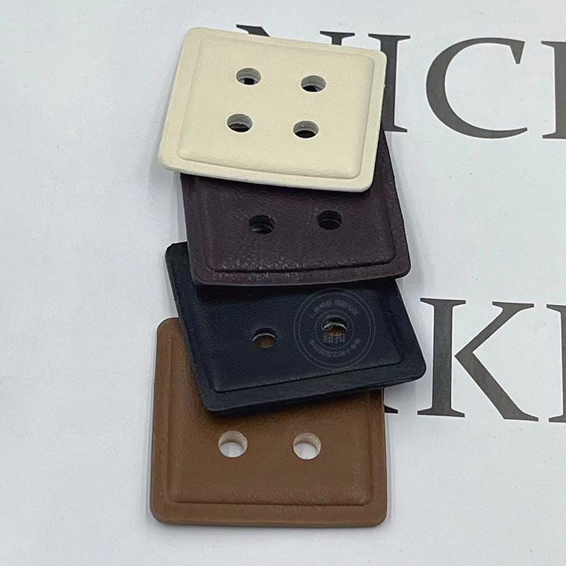 Nuevo abrigo vintage de cuero con cuatro ojales y botones cuadrados, suéter, gabardina, chaqueta de plumas y hebilla decorativa cosida a mano.