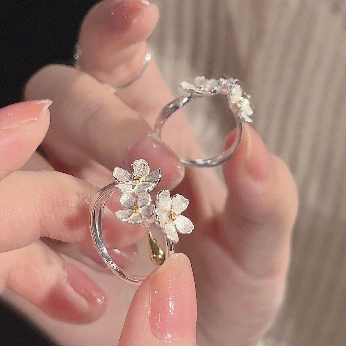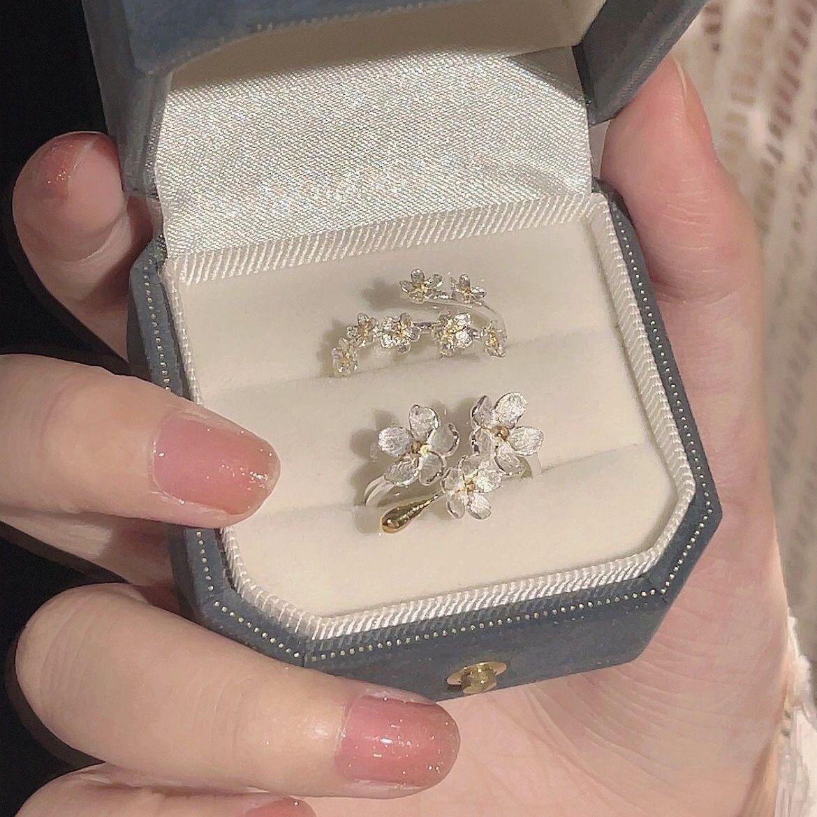 Anillo abierto de flor Iris diseño de nicho retro francés de alta gama temperamento de lujo ligero anillo ajustable para mujer