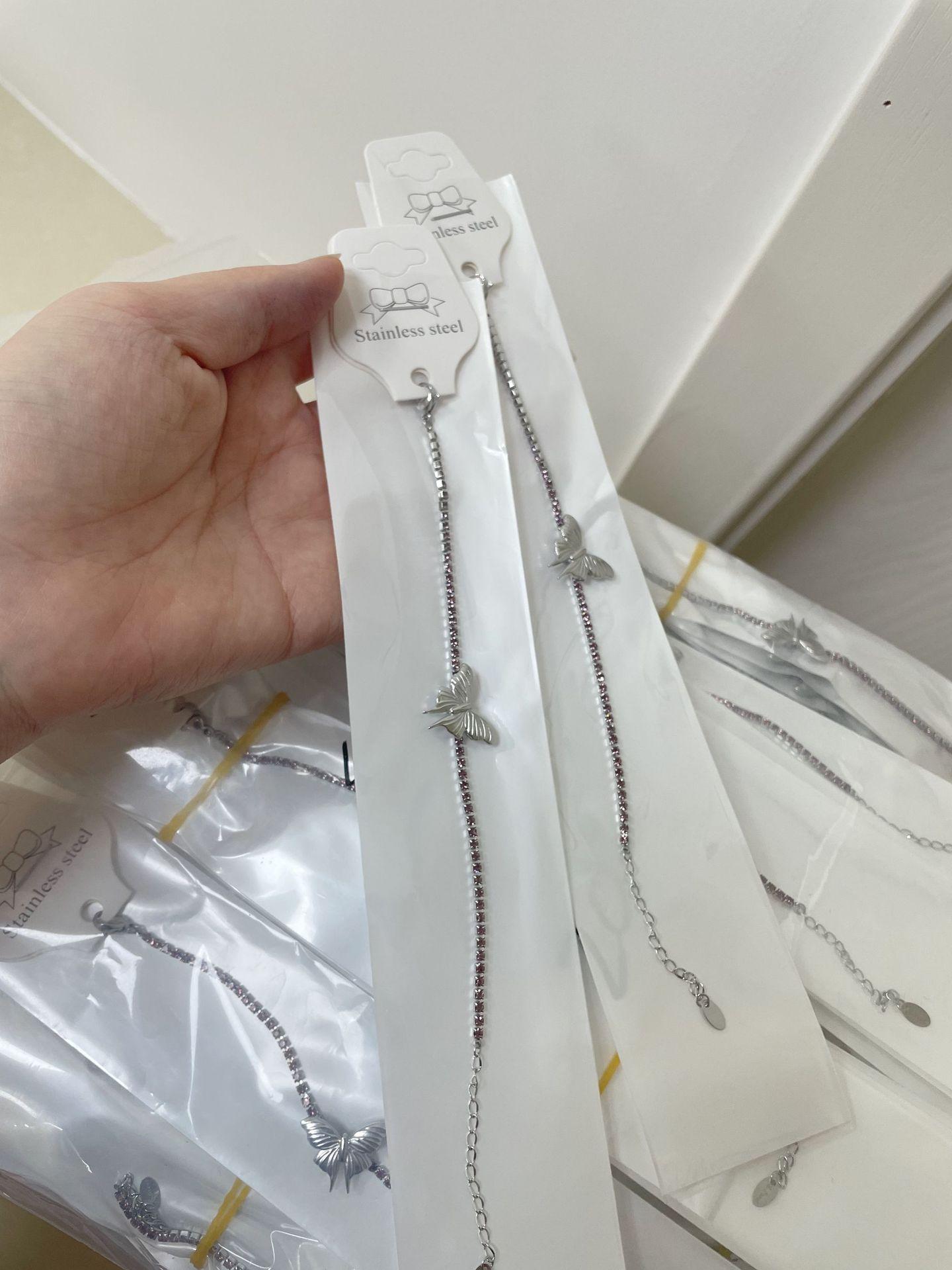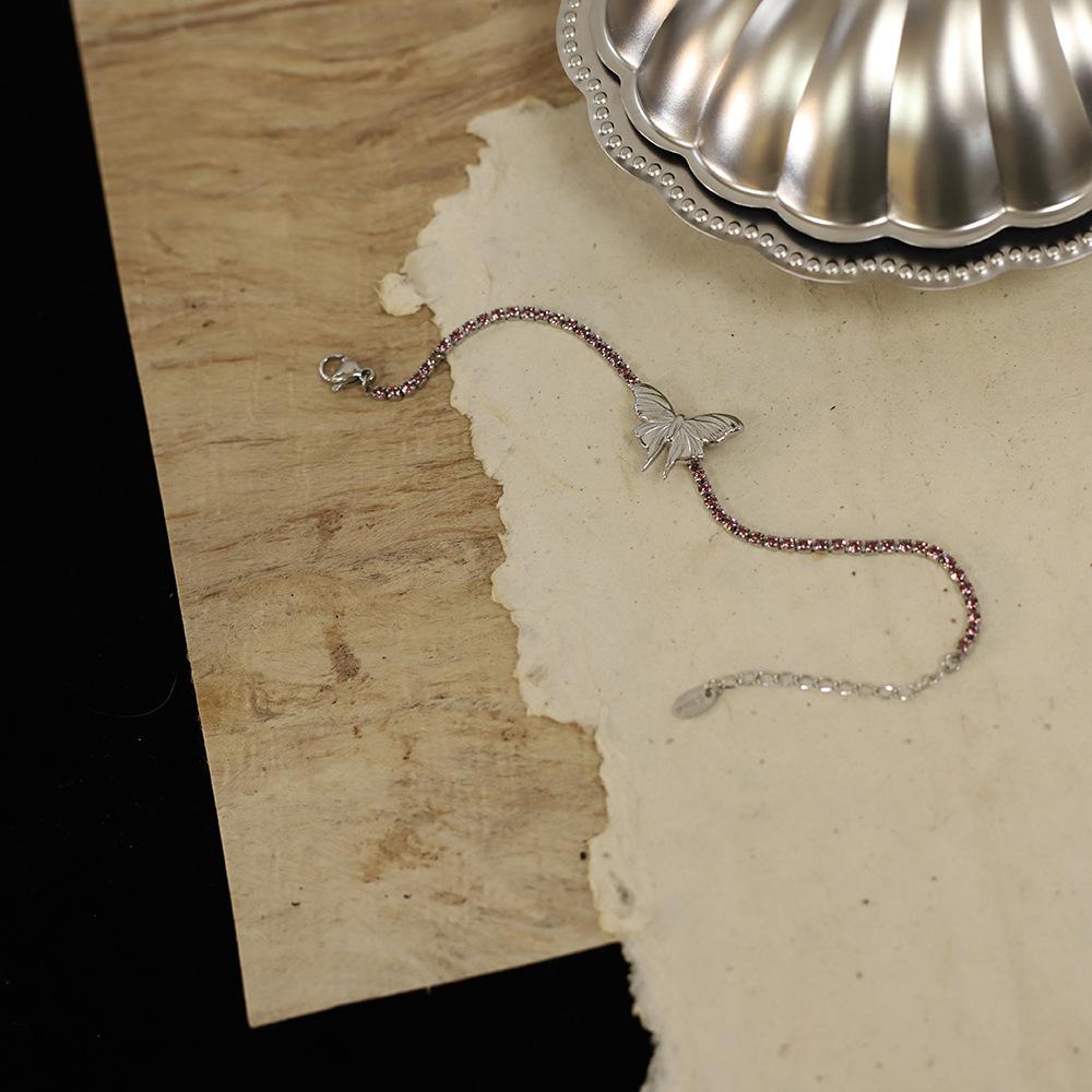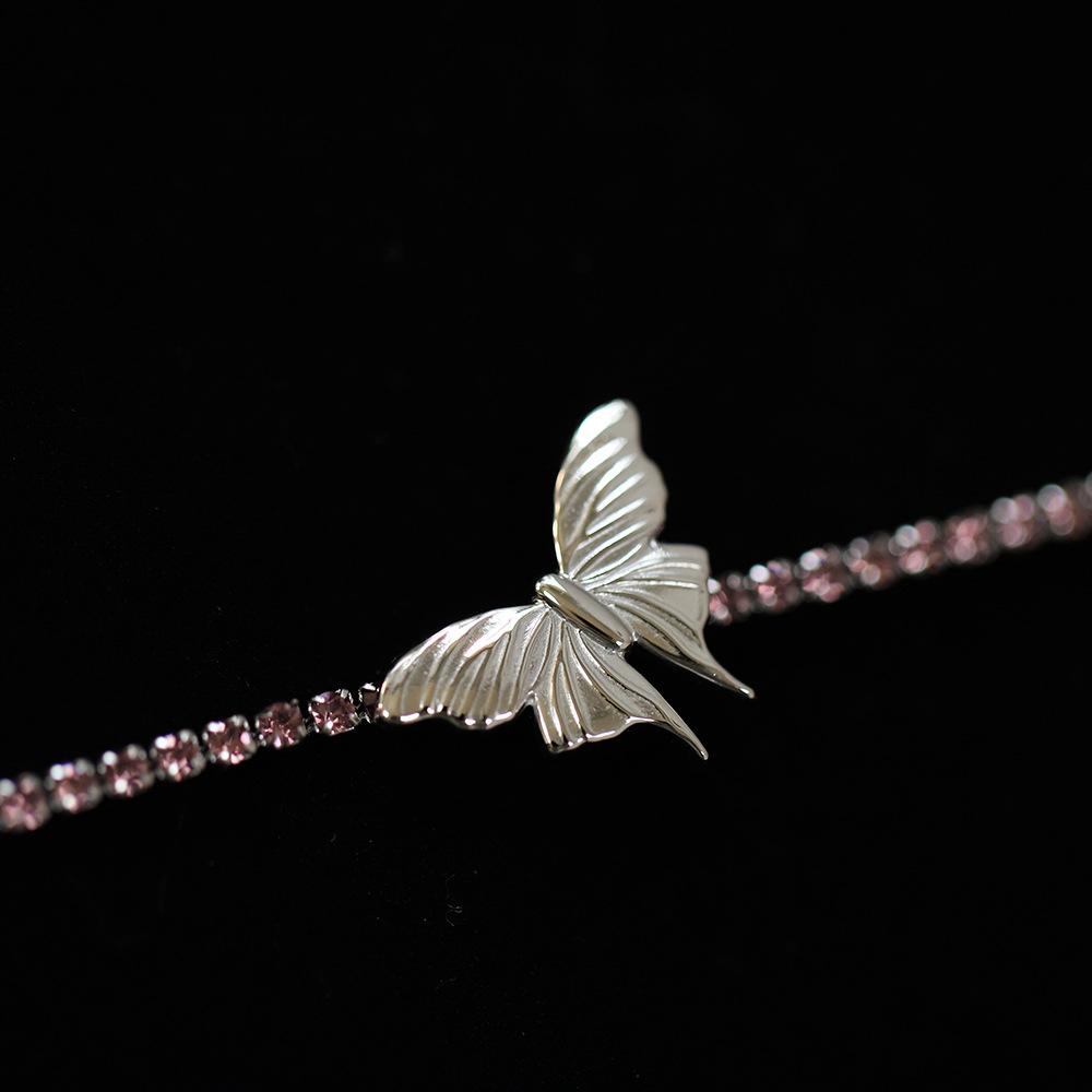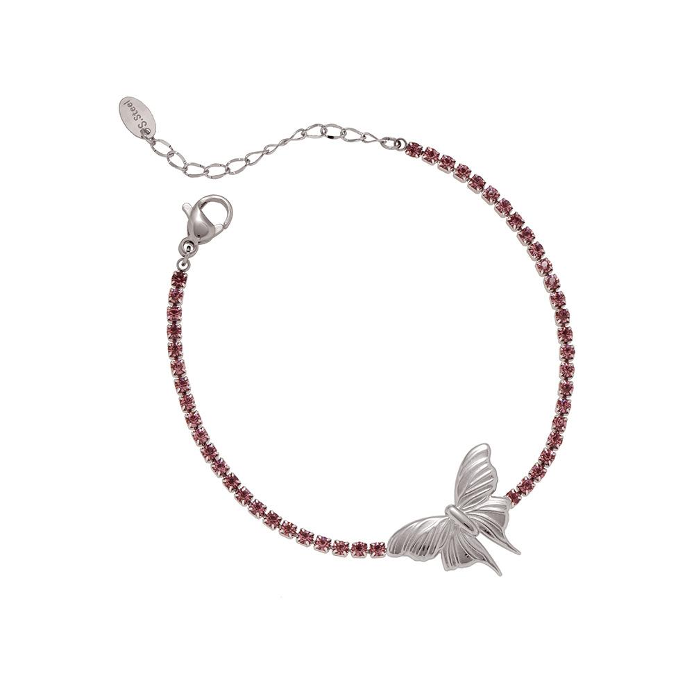 Mariposa tamaño 20X14.4mm, cadena de diamantes 2mm, incrustada con pedrería rosa y morada