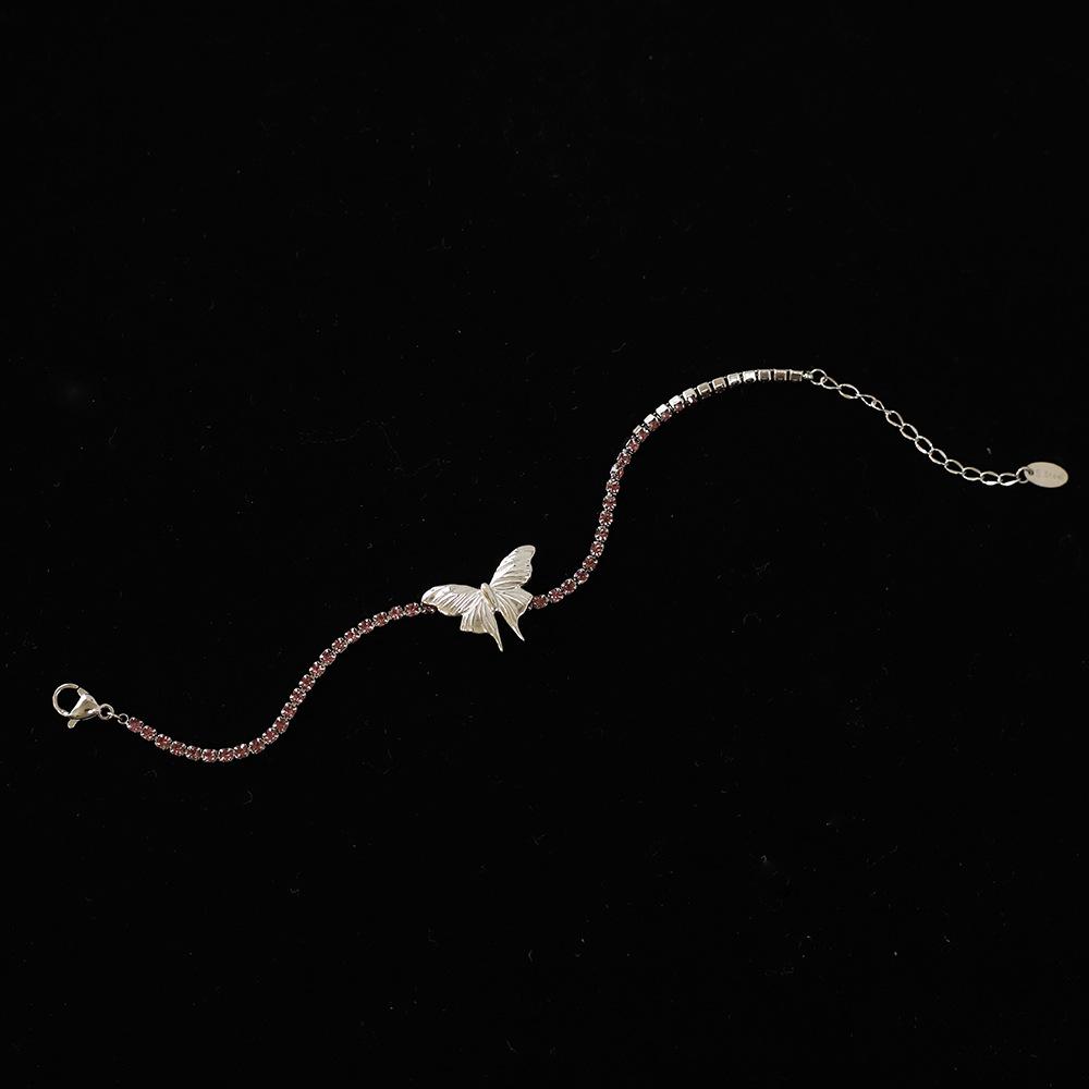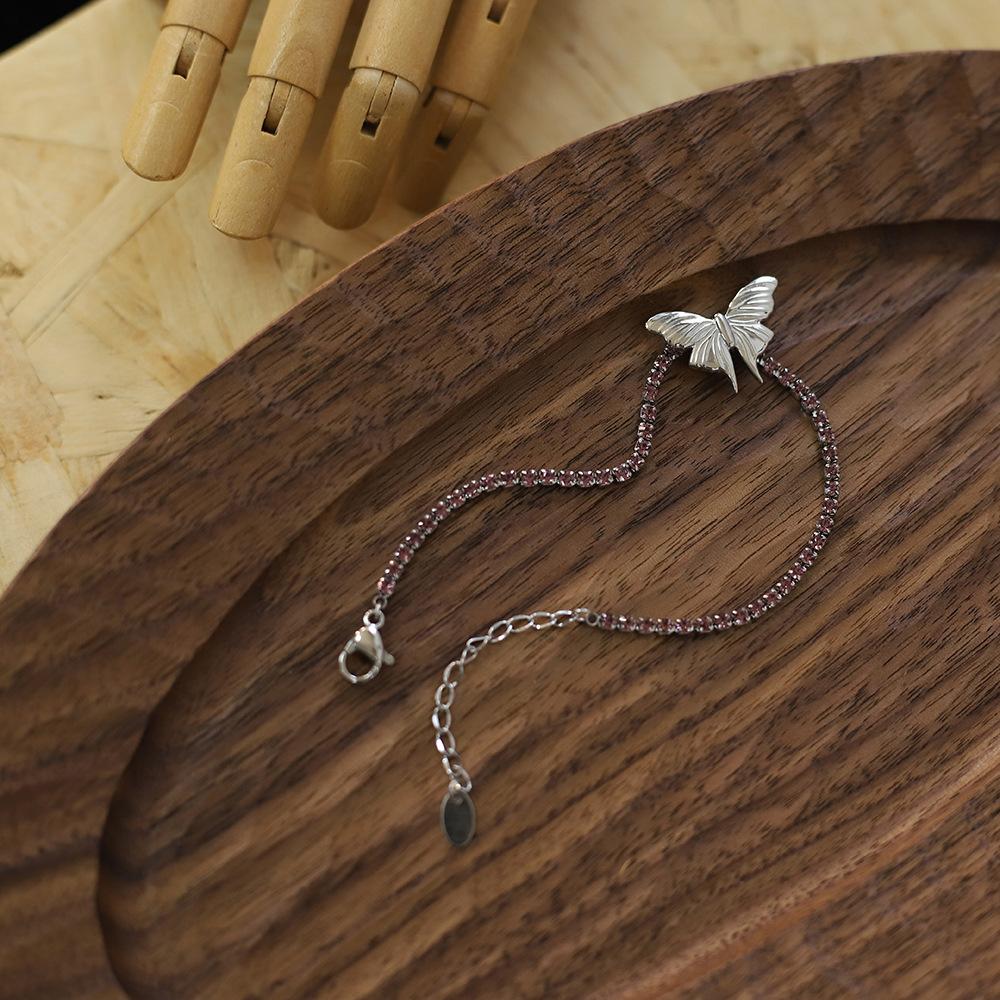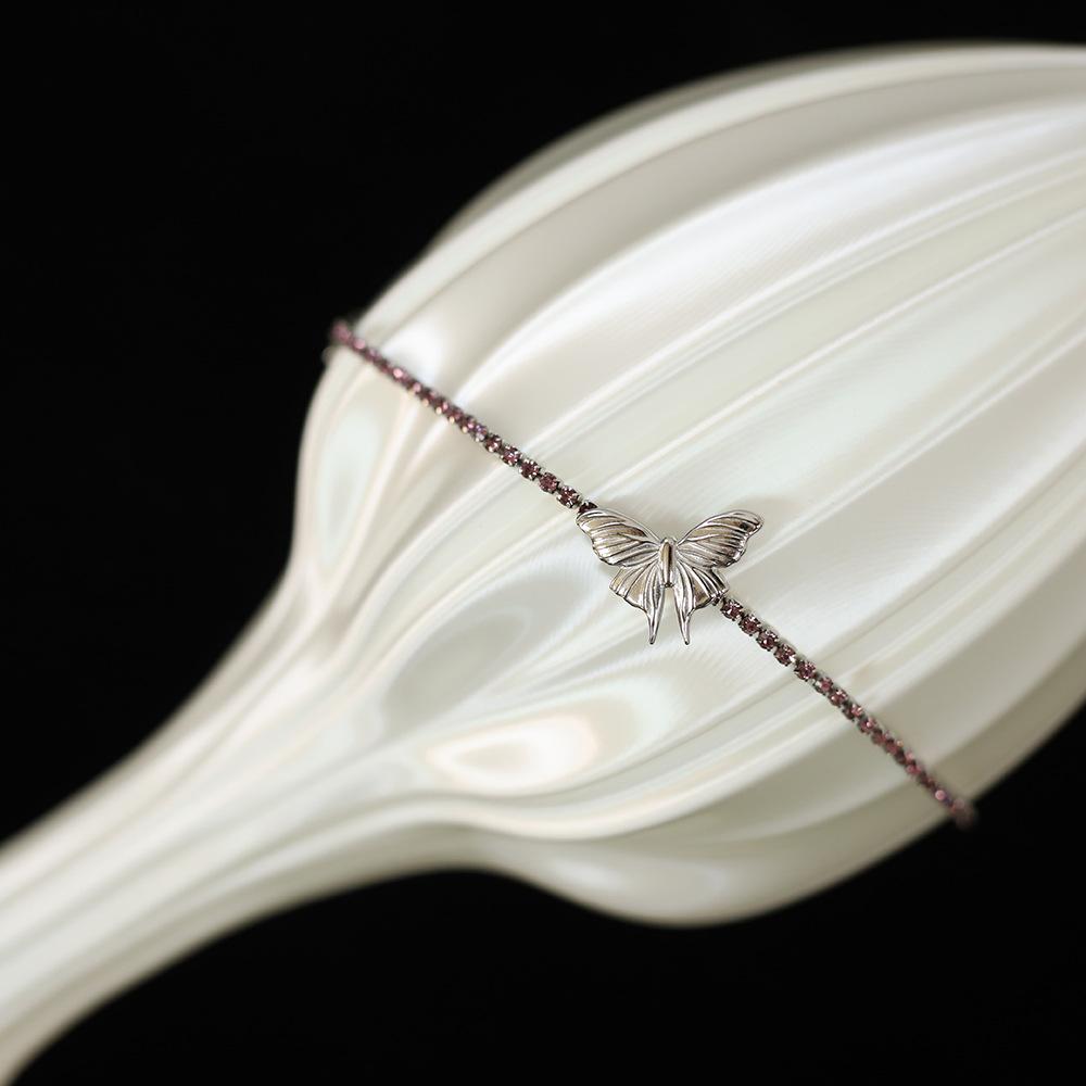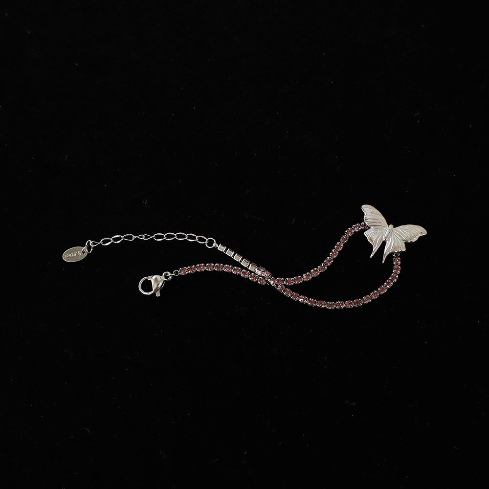 Mariposa tamaño 20X14.4mm, cadena de diamantes 2mm, incrustada con pedrería rosa y morada