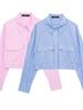Camisa de manga larga con solapa y rayas cortas informales para mujer, estilo callejero transfronterizo europeo y americano, primavera de 2024